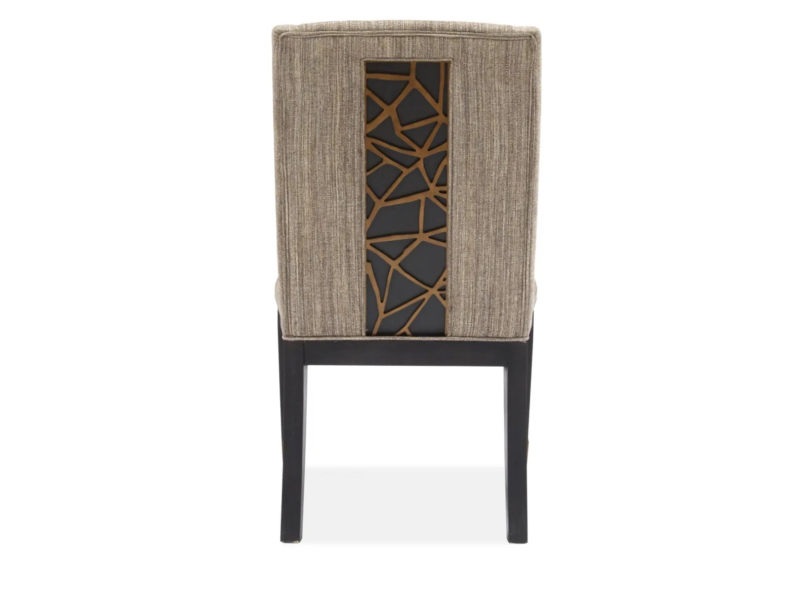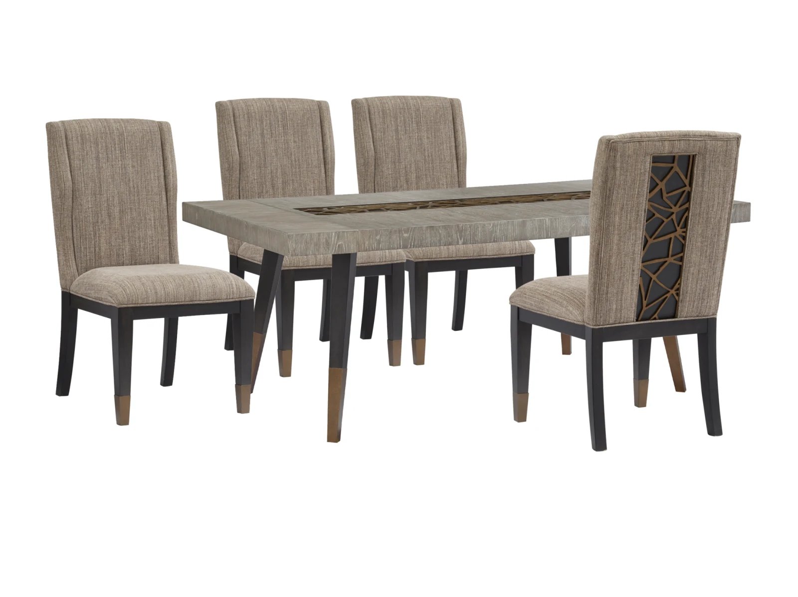 Distinctive in every way, the Ryland dining collection offers a refreshing take on dining in style. Its unique character combines a stunning mix of materials, including wood, metal and glass. It features a Nocturn Black and Coventry Grey finish that highlights its strong contemporary profiles and is accented with both clear glass and black glass. A signature fractal pattern design element highlights select pieces and gives a distinctively modern edge to the group while metal ferrules in Aged Brass add a finishing touch to the legs. With exceptional beauty and comfort, Ryland is perfectly suited to take a dining room from unremarkable to truly remarkable.