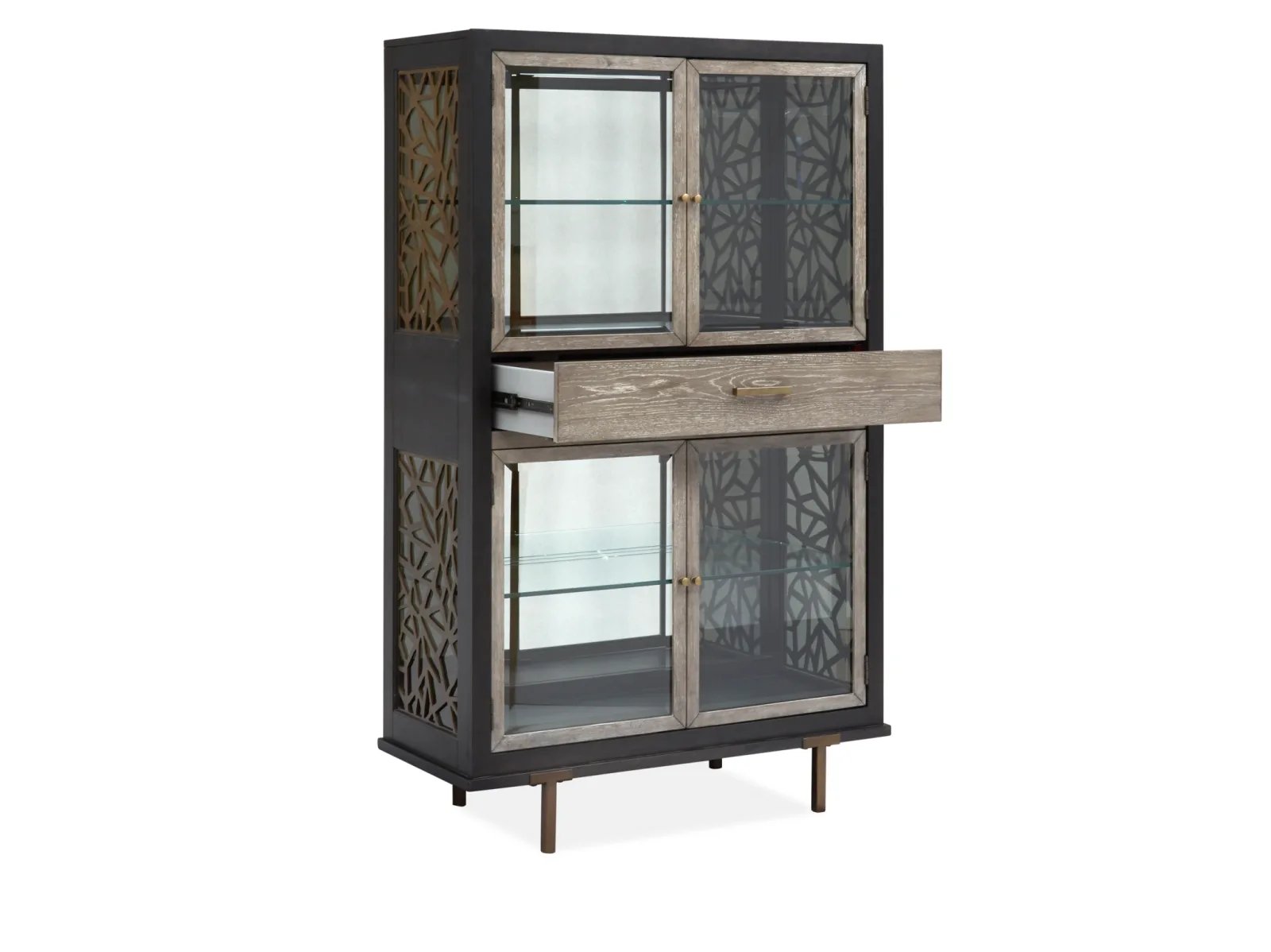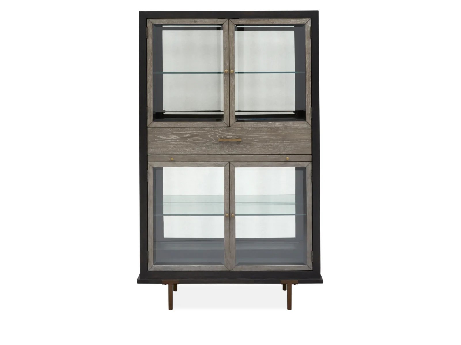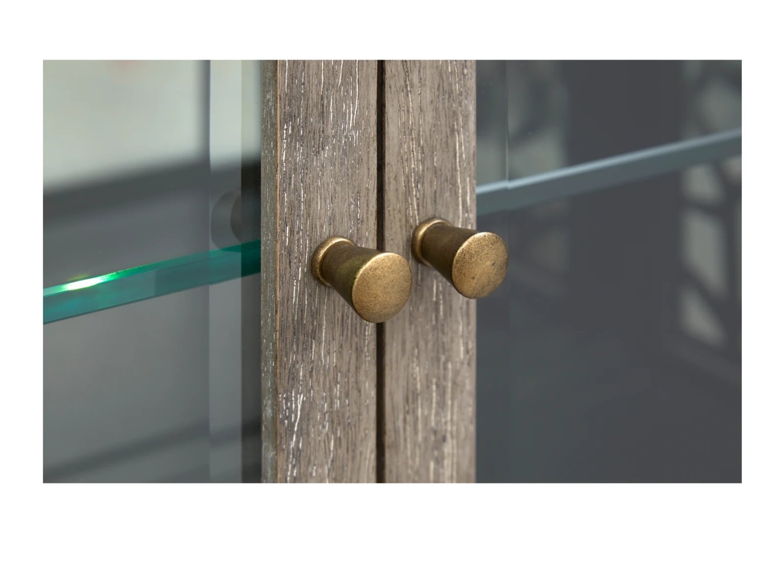 - 1 fixed glass shelf w/plate grooves behind each top & bottom door
