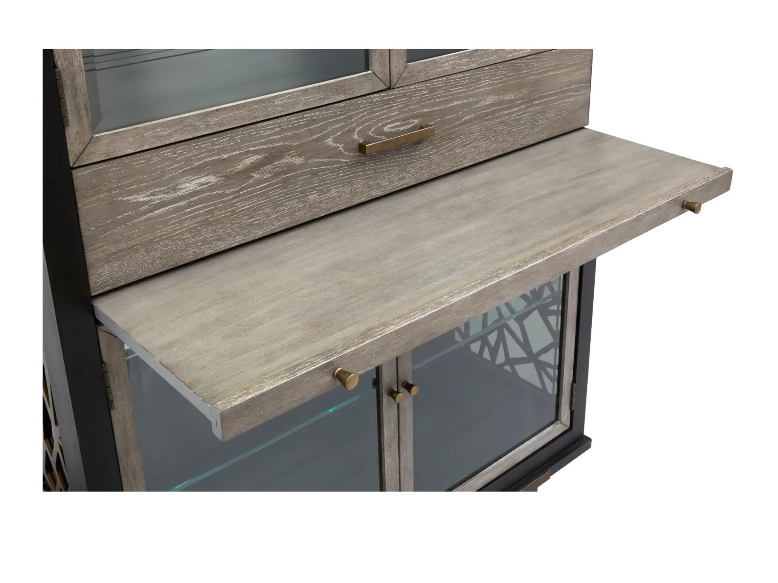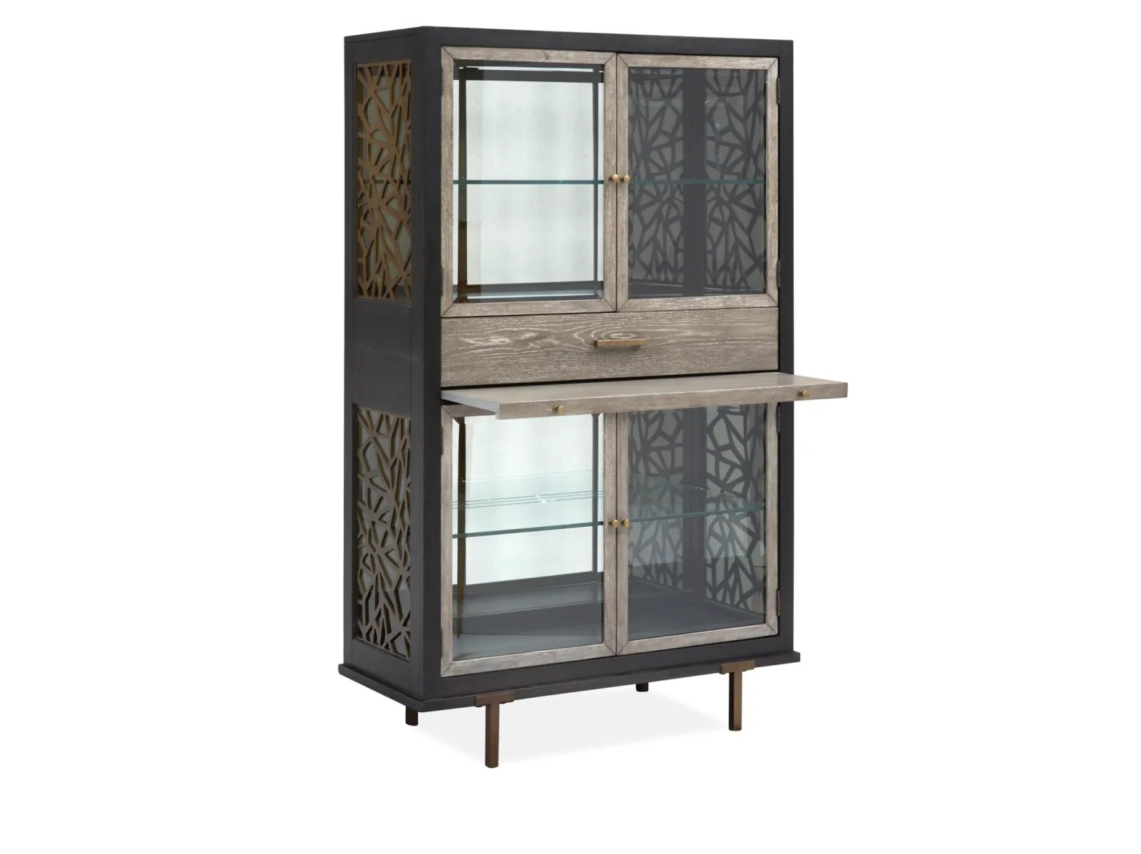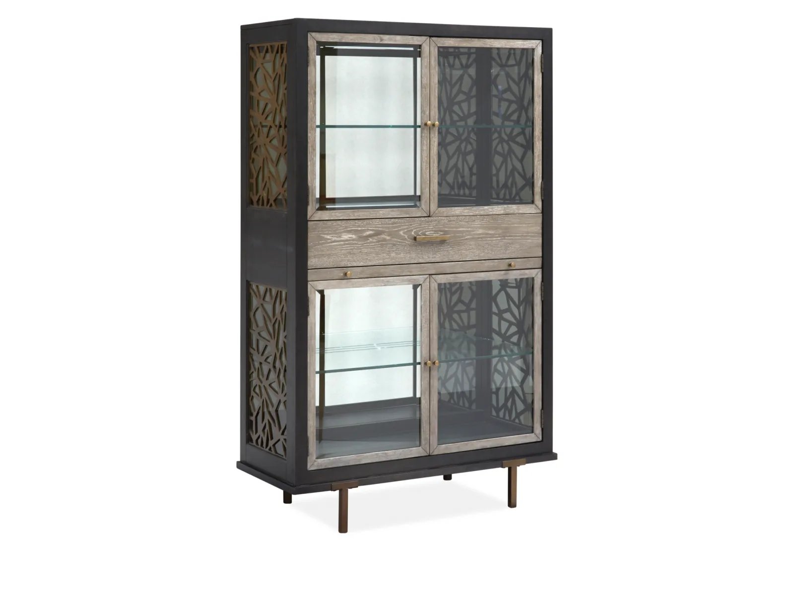- 1 fixed glass shelf w/plate grooves behind each top & bottom door