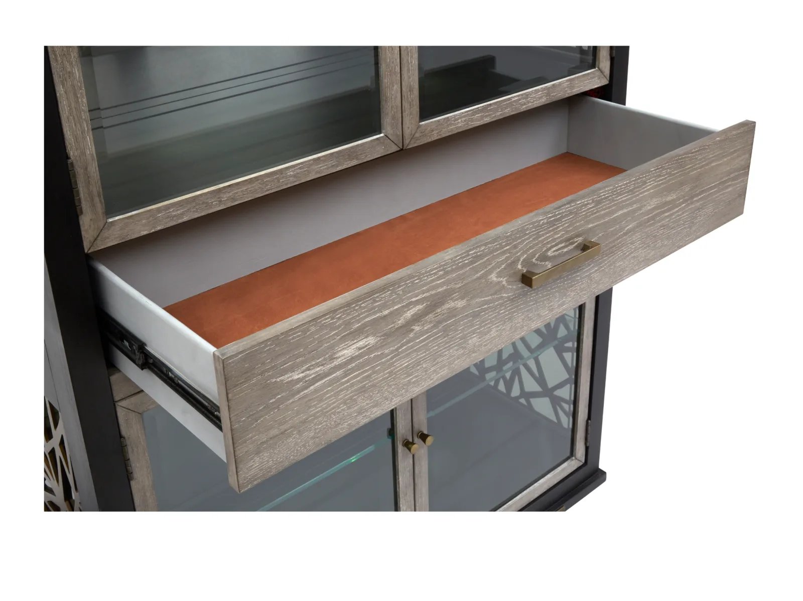 - 1 felt lined middle drawer, 1 hidden pull out wood shelf underneath the drawer