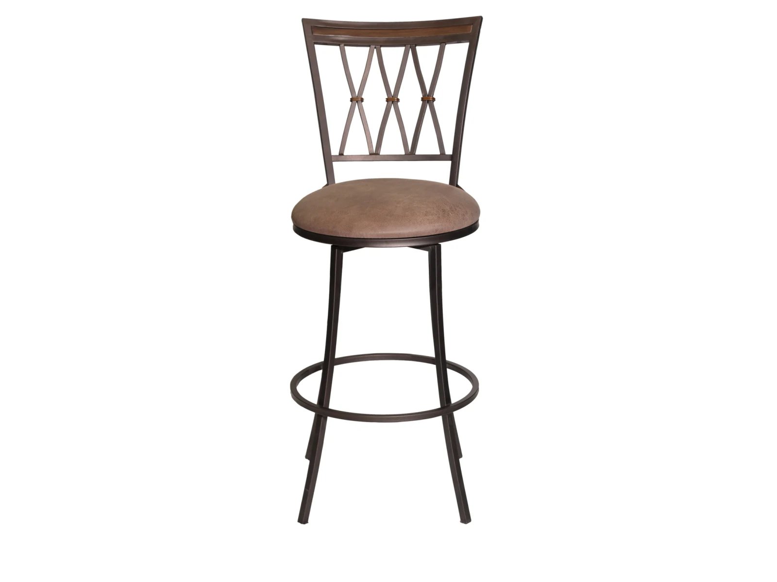 Comfort, style and durability in a Commercial Grade strength Bar Stool, Sedona adds some mixed media style to any counter area. A lustrous brown cherry finish pairs with powder-coated metal finish and brass accents for a sturdy complement to any kitchen. The dark camel leatherette seat is a full 360 degree swivel for maximum comfort. This 30″ seat high chair works with any 42″ counter including Bar counters.