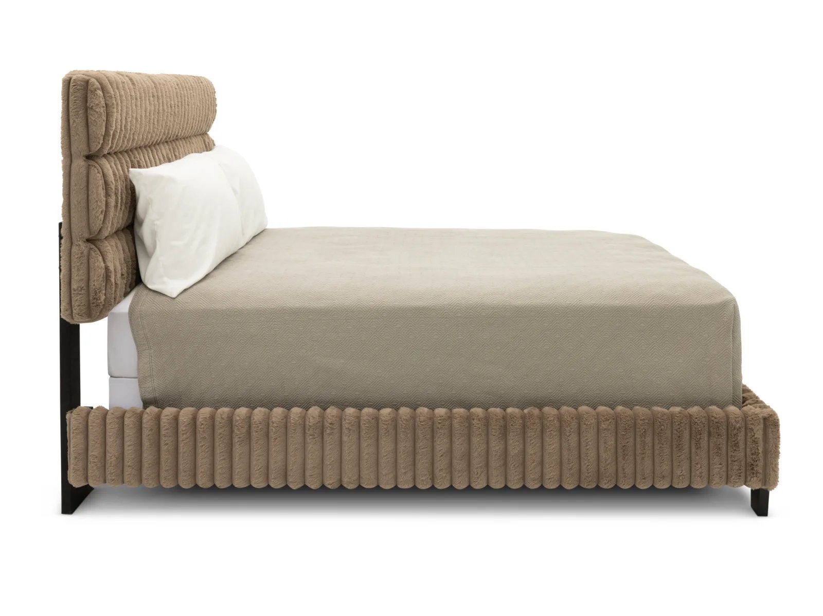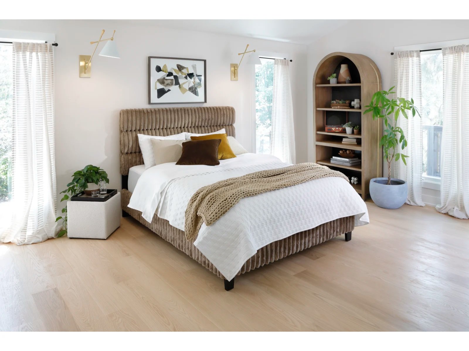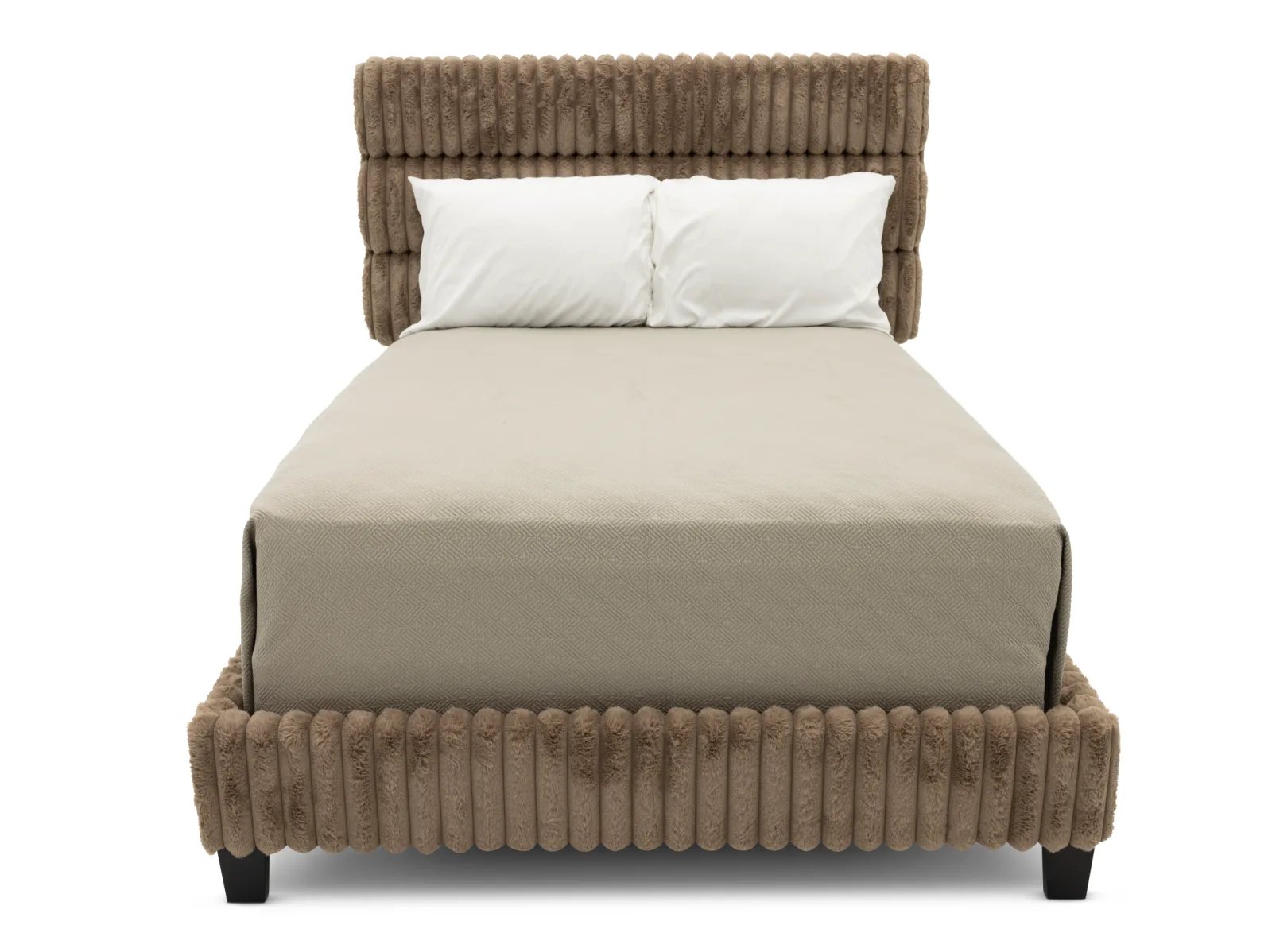& Free ShippingBring a luxurious touch to your bedroom with the Santa Barbara Upholstered Bed. The plush, fabric-padded frame and headboard design offers exceptional comfort and style, making it an inviting centerpiece for any modern space. Wrapped in a latte-colored upholstery, this bed features bold channeling on both the headboard and frame for a sleek, contemporary look. Indulge in effortless coziness from every angle with the Santa Barbara Upholstered Bed.