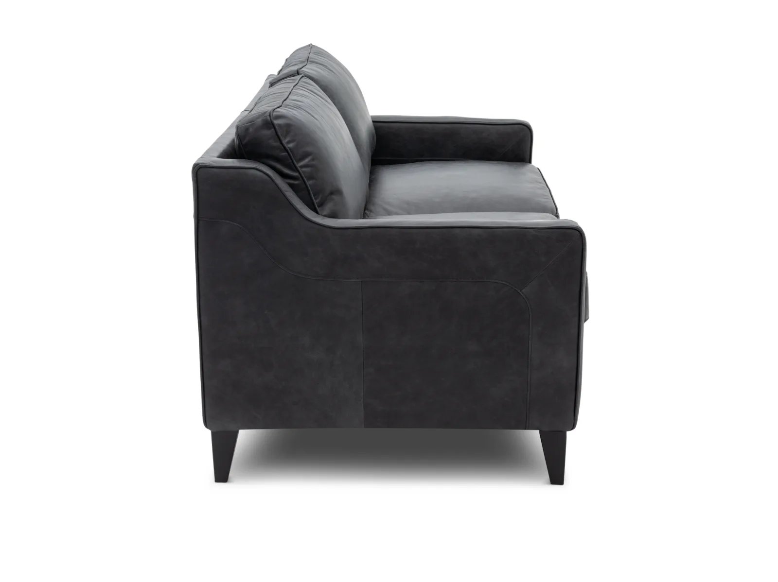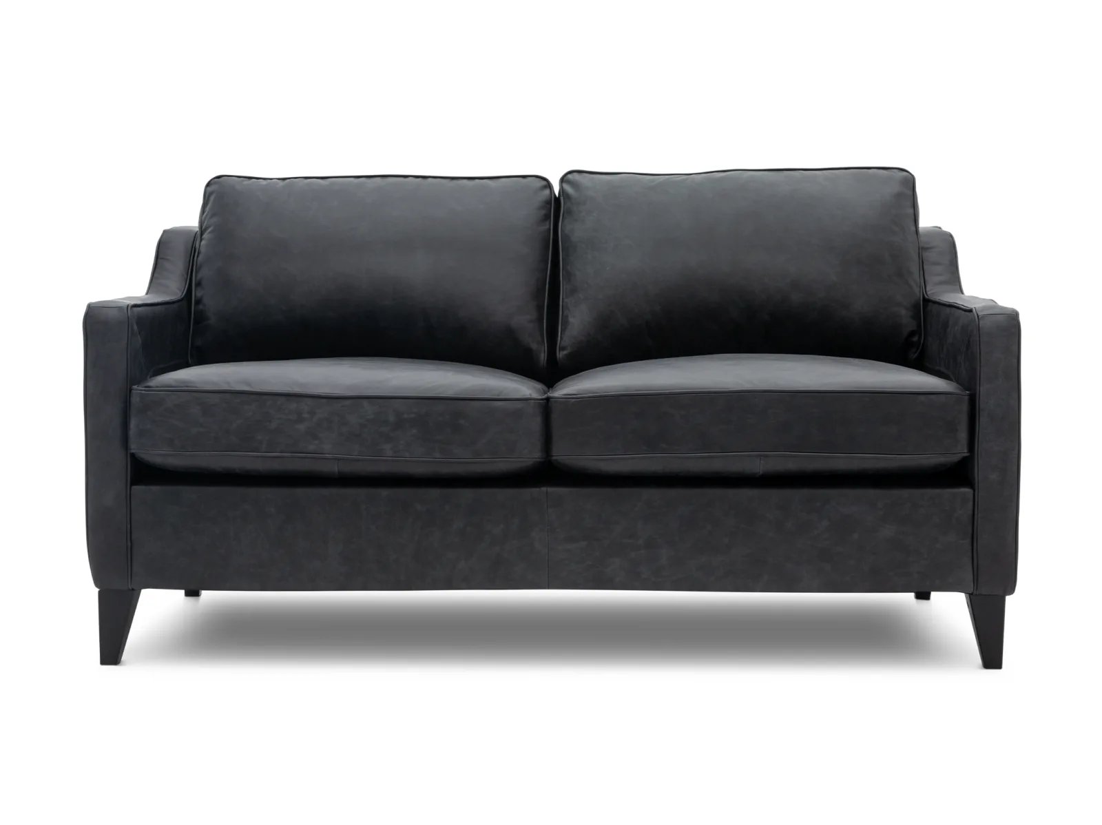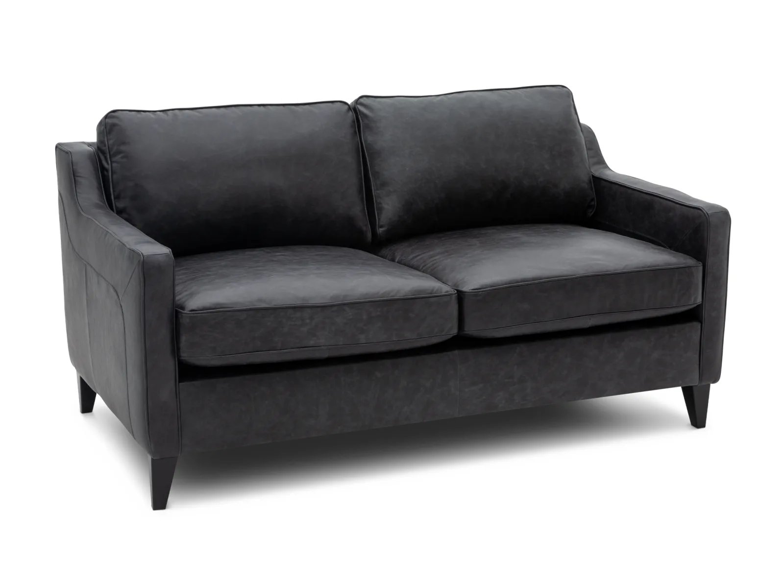 & Free ShippingIndulge with the ultimate in contemporary comfort and style with the Sawyer Leather Loveseat. Crafted with a solid wood frame, this loveseat ensures years of durability and stability, and its oversized seating area provides ample space for you and yours to snuggle up and relax. The Sawyer’s angled track arms add plenty of contemporary intrigue to the design, while its tapered wooden feet are lightly flared to instill a touch of mid-century-inspired style. To complete the design, the Sawyer is upholstered in beautiful black Italian leather with statement stitching along its sides and back.