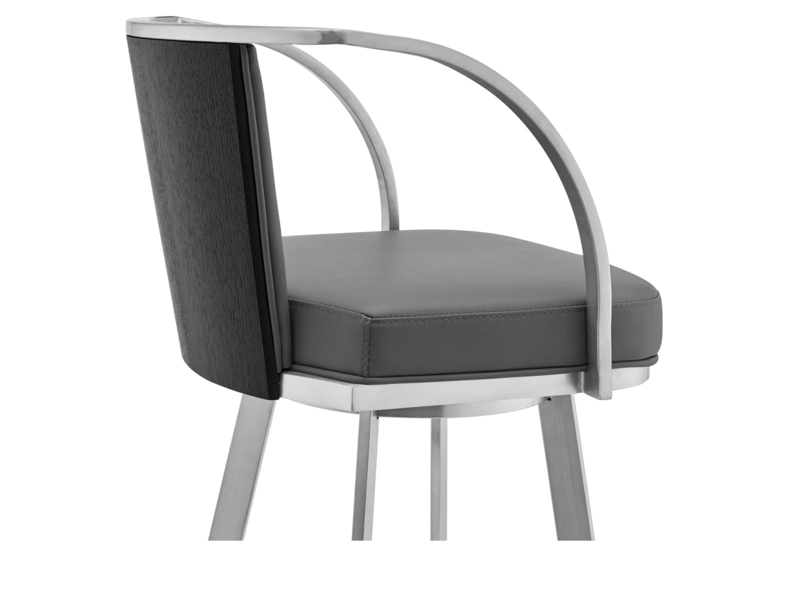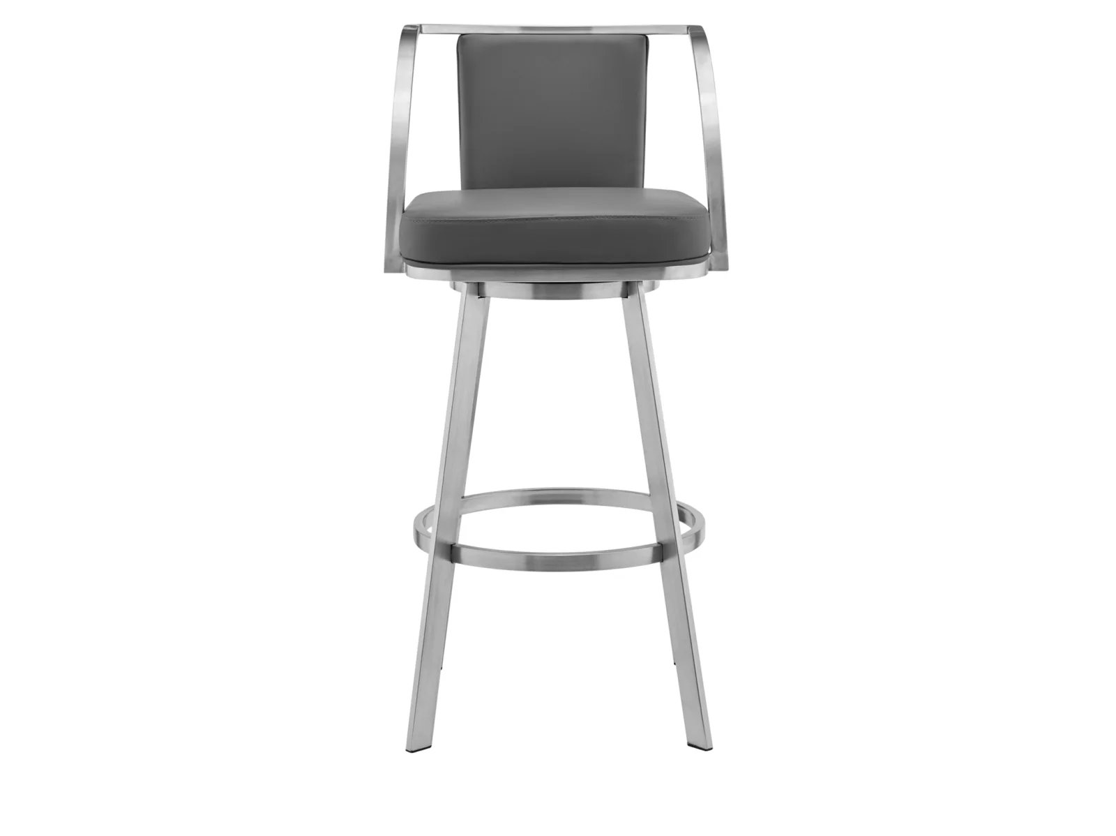 & Free ShippingLook no further than the Scion Swivel Bar Stool for Armen Living for your modern and contemporary stool needs! This innovative metal stool features sleek faux leather upholstery and strong metal accents. The plush and thick foam-padded cushion will allow you and your guests to relax in comfort for extended periods of time without issue. The Scion was crafted with high-quality steel, able to withstand everyday wear and tear, giving you years of enjoyment. This versatile stool can easily blend into any modern kitchen or contemporary household. This stool comes in a gray faux leather with a brushed stainless-steel frame. Available in 30″ bar height only.