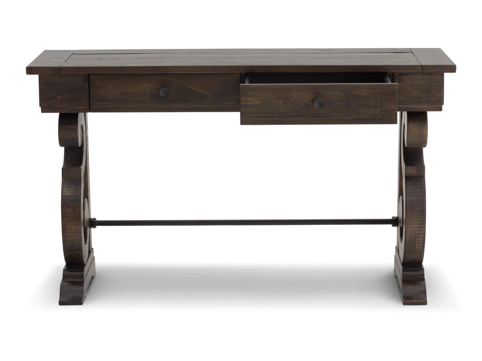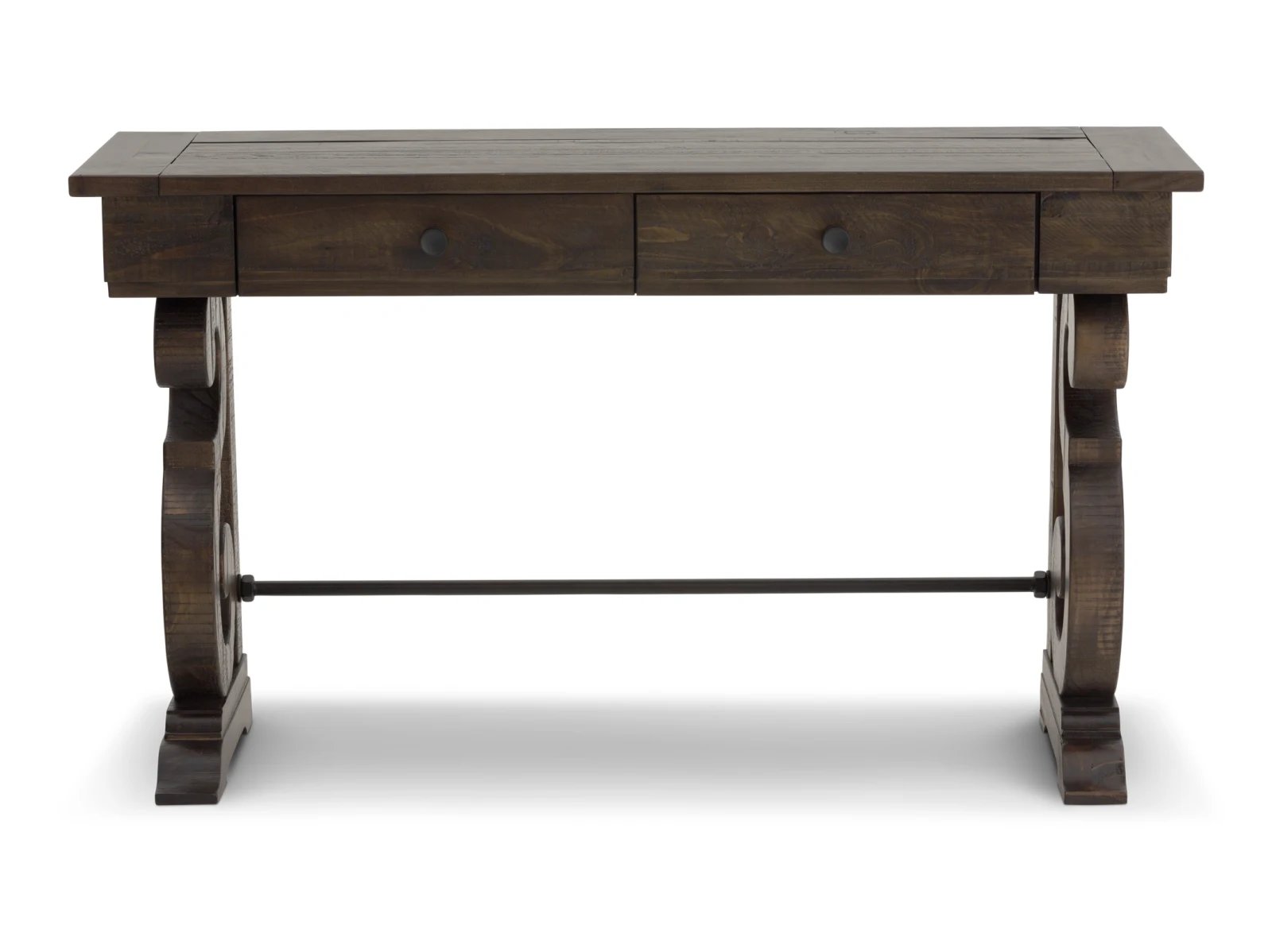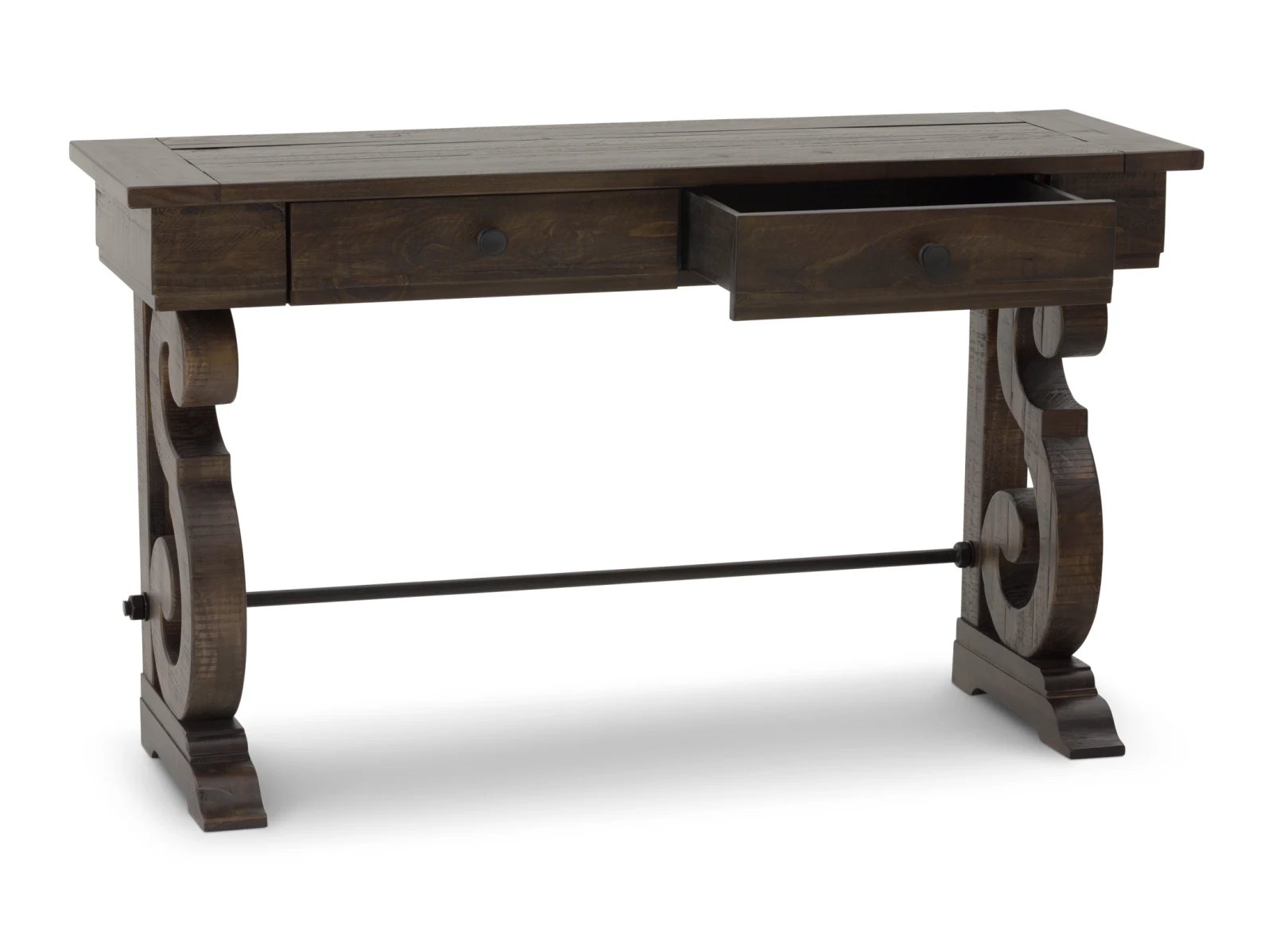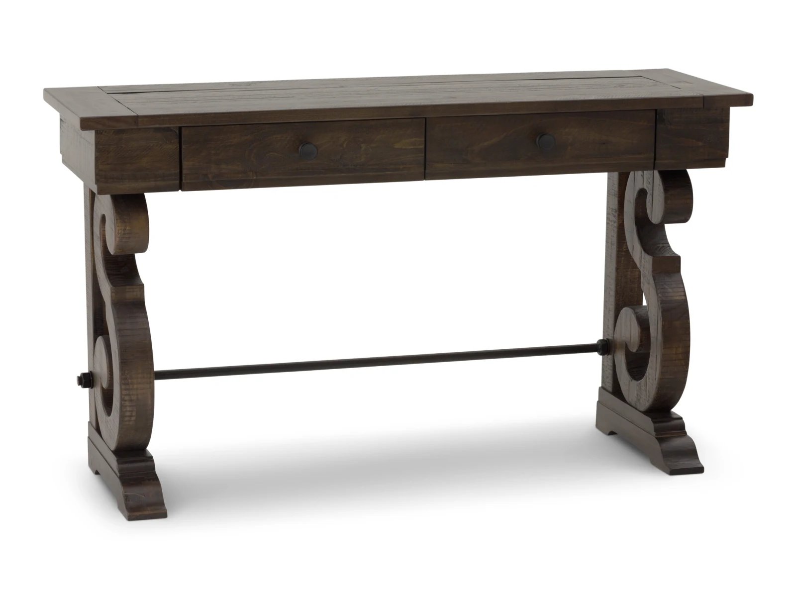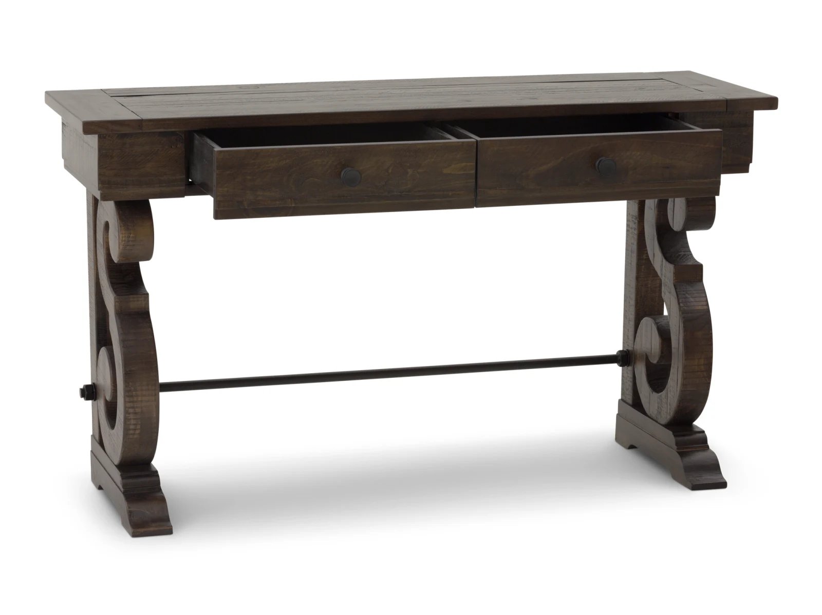 & Free ShippingBring the homespun charm of rustic country style to your home with the Sedona Sofa Table. Beautifully constructed of weathered pine solids and veneers and antique brass drawer pulls with brushed pewter overlay, this gorgeous table features drawers and an exquisite scrolled double pedestal base. The Sedona is ready to wear elegantly over time. You will love this beautiful piece in your home for years to come.