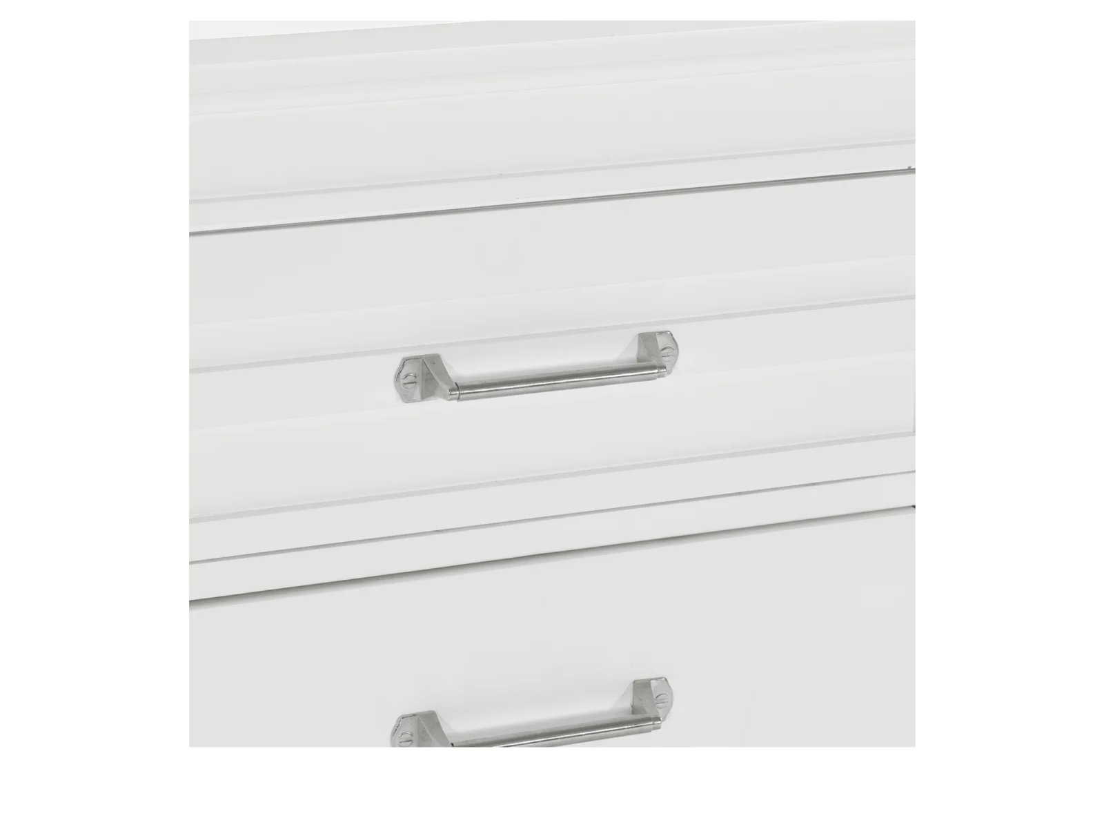 & Free ShippingThe transitional styling of the Seldovia Collection serves as the perfect complement to the rustic aesthetic that inspired the design. The okume veneer is enhanced by the white finish that covers the collection. Fixed handle pull hardware fronts the drawers while horizontal accent at the top of the headboard and the top drawers of each case piece lends visual contrast.