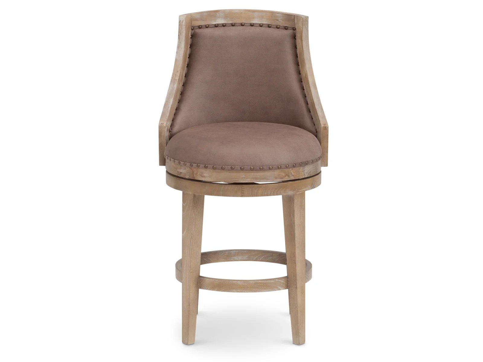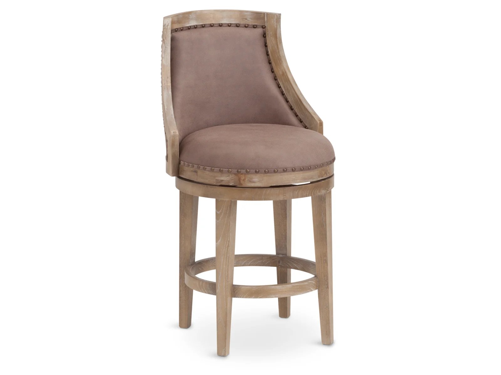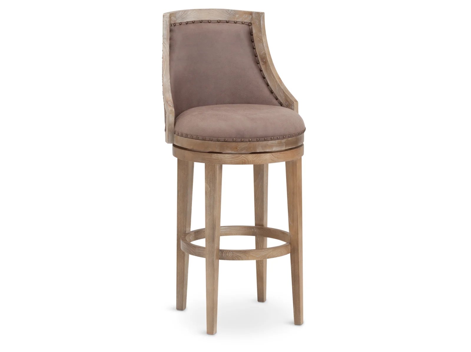Rustic woodsy turns chic with the Sequoia Bar Stool! If you’re looking for something a little natural that still turns heads, look no further. With Chinese oak legs and a poplar top in a driftwood finish, you will love the organic feel of the Sequoia. Spin around with the 360-degree swivel feature for easy movement as you sit at the table or counter. A soft taupe colored upholstered back with chic nailhead trim and a contemporary shape elegantly complements the distressed, washed wood, making the Sequoia the treasure you can’t find anywhere else. Take home this breathtaking beauty today! This stylish seat is available in 24″ and 30″ heights.