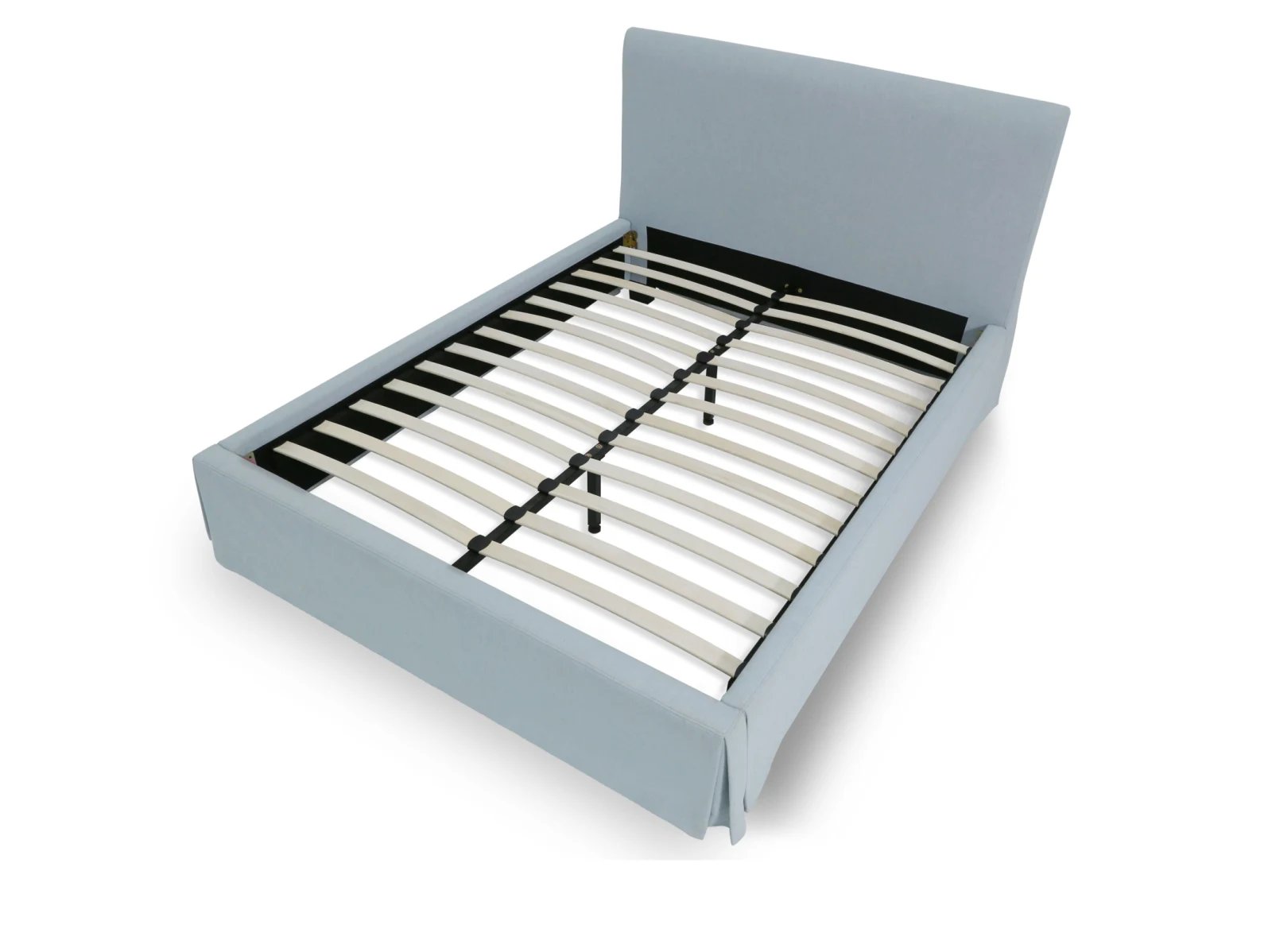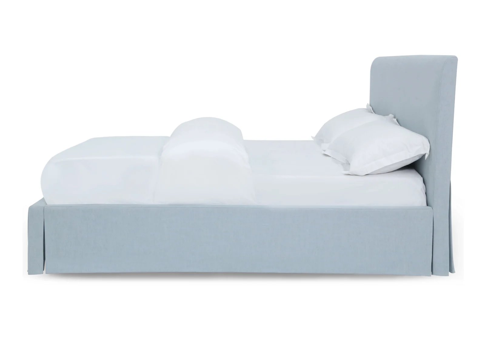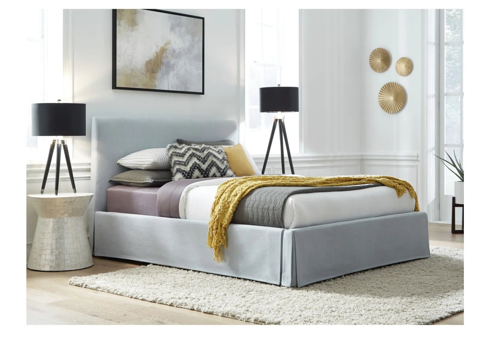 & Free ShippingDesigned with clean lines in an array of colors, our Shelburne upholstered bed collection brings relaxed luxury to your bedroom. Made with solid wood framing, layered foam and soft linen-blend fabric, this group creates a no-maintenance slipcover look with skirted bases and inverted corner pleats.