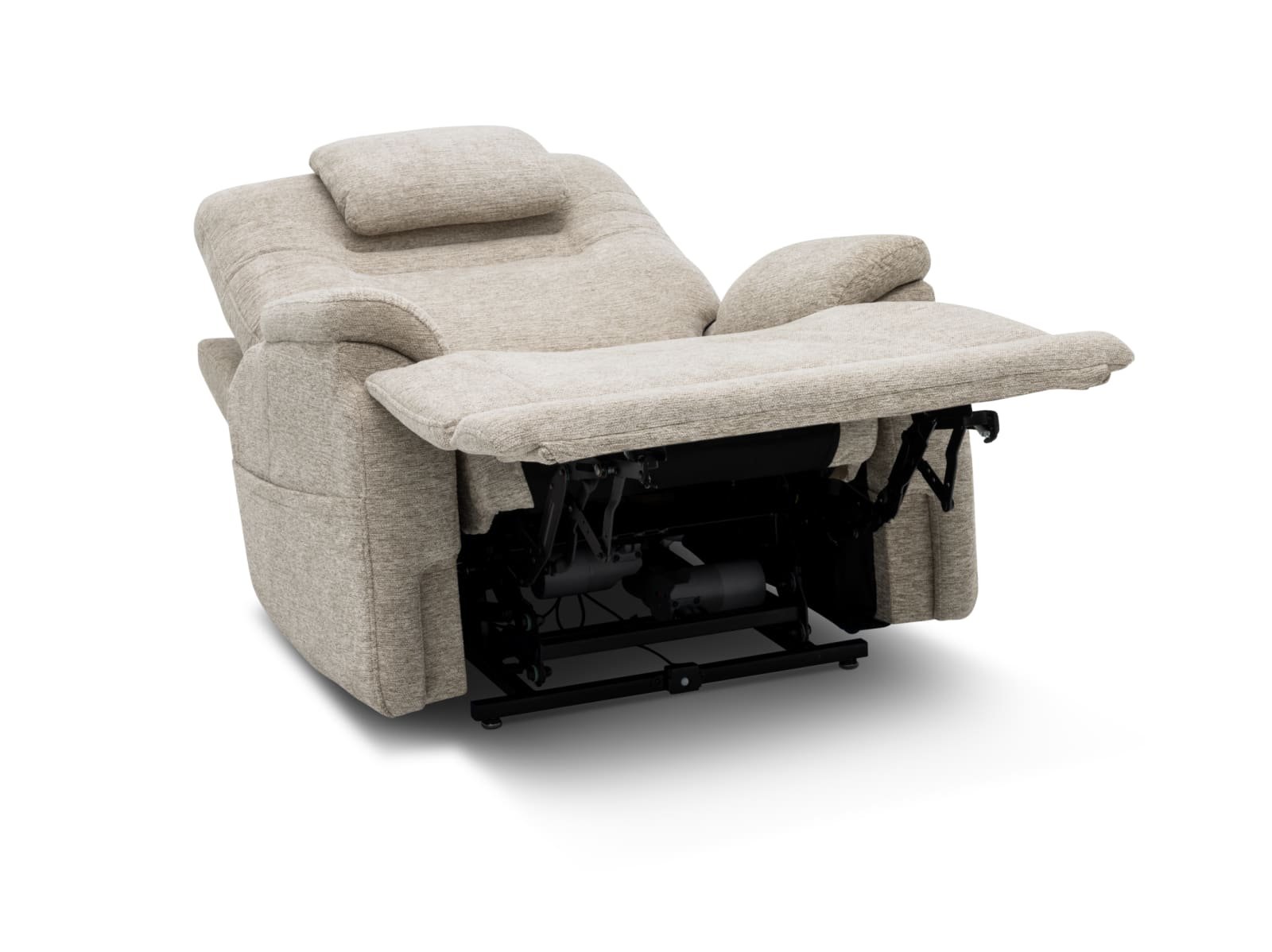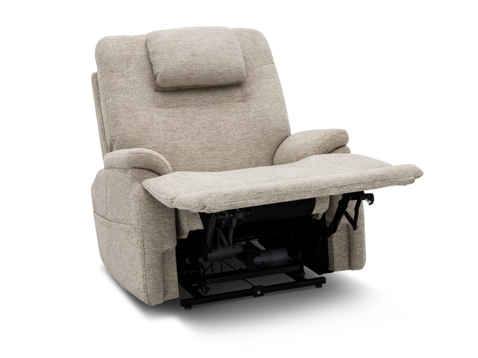 Dreaming of a sophisticated power recliner that can also double as an ultra-comfy bed? Well, your dreams have been answered with the new Slumber Power Lift Recliner, the one of three new “Zecliners” from Furniture Row! Built on a sturdy DualFlex Blue Steel Spring base, this refined power recliner offers triple power features so you can adjust the footrest, headrest and lumbar support to your exact needs. The Slumber’s seat offers plush, high-density foam cushioning with zoned areas of memory foam for indulgent comfort, and it’s upholstered with a stain-resistant fabric upholstery complete with a removable Technogel head pillow. If that wasn’t enough, the Slumber also boasts Zero Gravity reclining capabilities for weightless relaxation, it offers power lift functionality to assist with standing, and it’s outfitted with internal heat and massage settings for truly unparalleled comfort. Indulge in the Slumber Power Lift Recliner today.