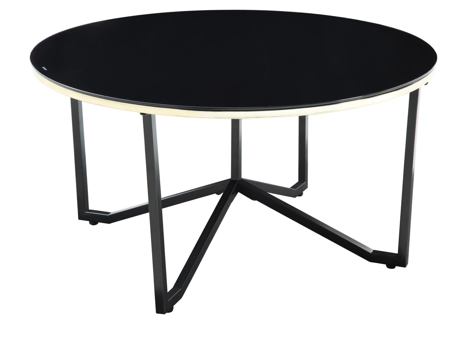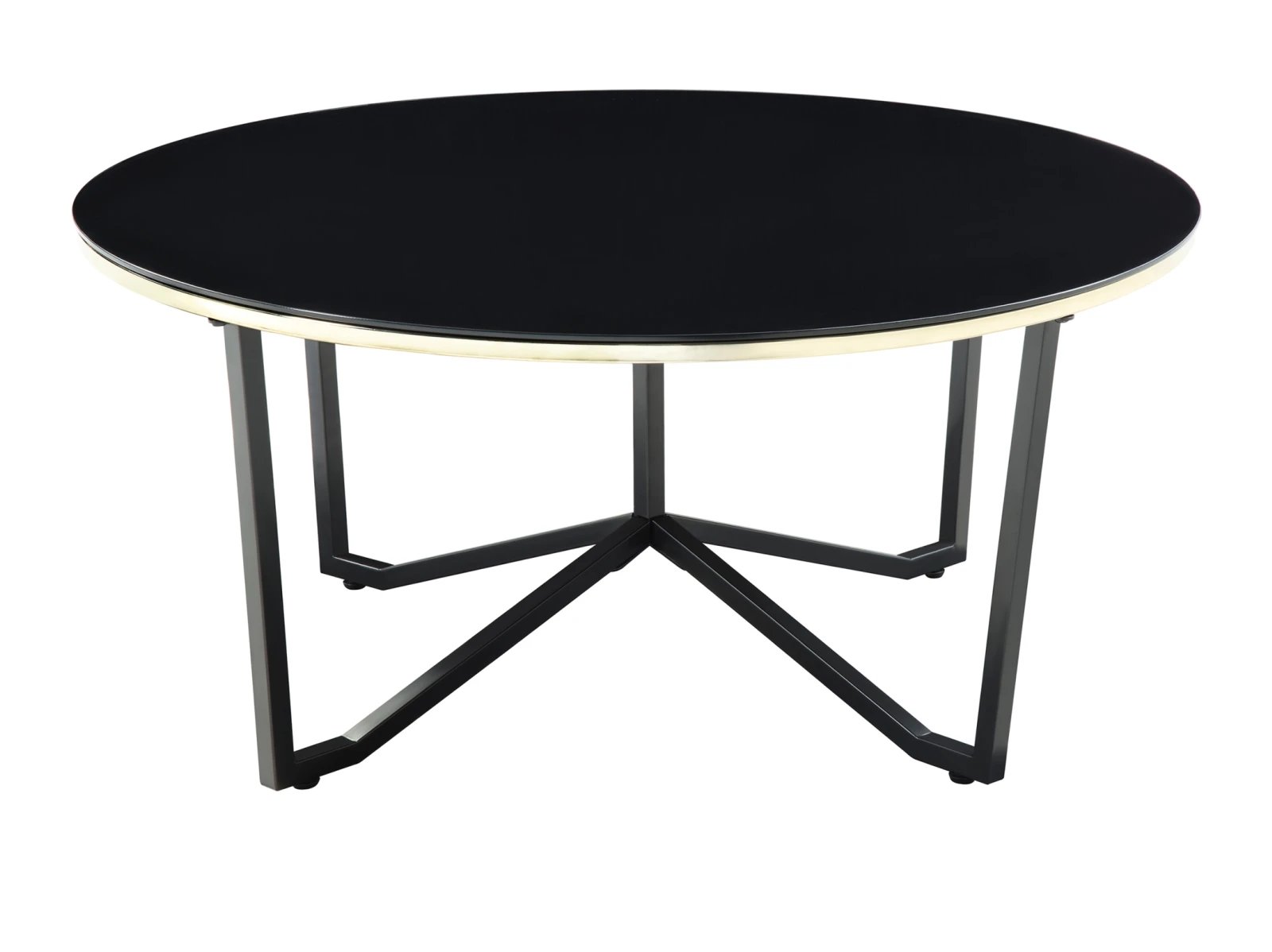 & Free ShippingUpgrade your living room with the Solitude 3 Pc. Coffee Table Set, which includes a central cocktail table flanked by two matching end tables. Each features a round black tempered glass top framed by gold-hued metal banding, supported by slender metal legs that lend an airy, modern feel. The balanced proportions deliver generous tabletop space for décor or daily essentials. This cohesive trio combines timeless silhouettes with contemporary finishes for flexible styling in any lounge area.