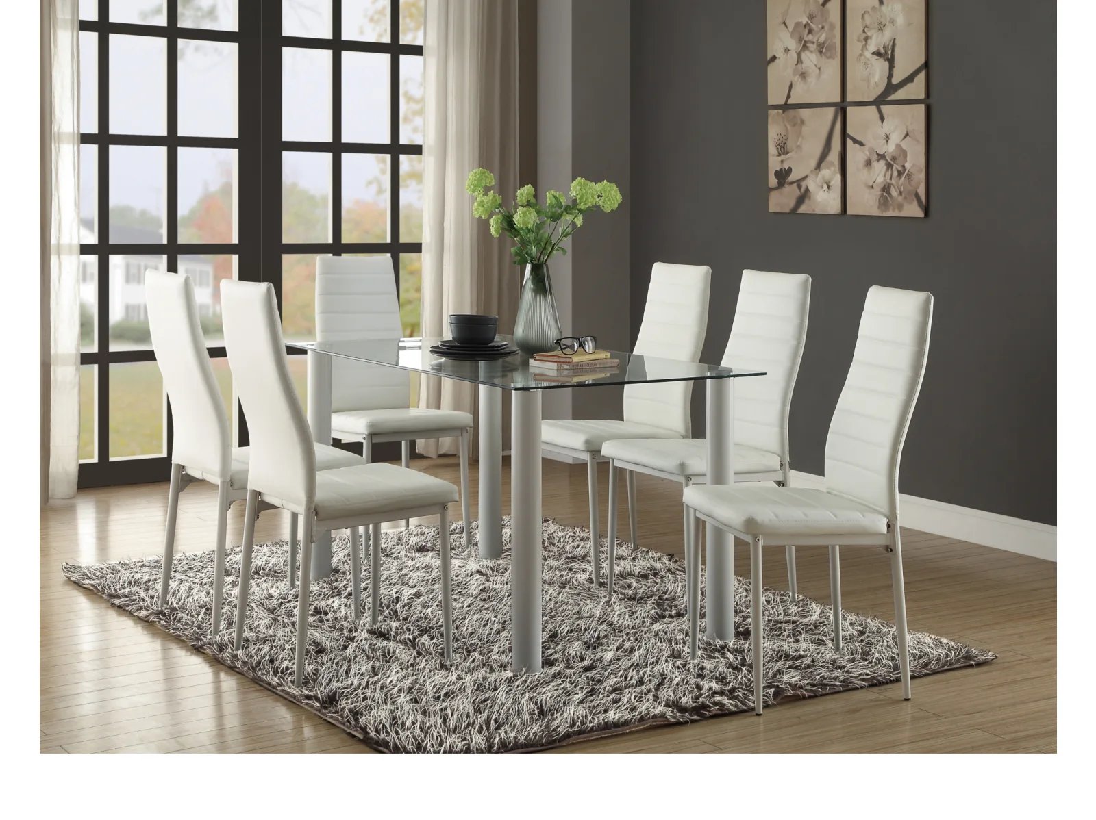 Ultra modern styling is exemplified with the design of the Sona Collection. This contemporary table features white metal legs with a white glass top for the perfect fit in your casual dining space.