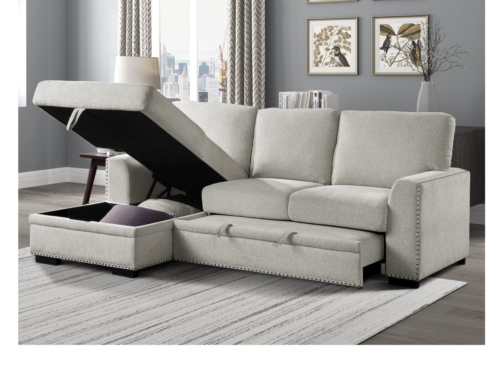 & Free ShippingA perfect addition to your casual living room, the Spivey Collection's functionality goes beyond that of a traditional sofa. Covered in chenille, the modern profile of this seating group is defined by its loose back cushions and track-style arms. Conveniently stored beneath the sofa is a pull-out trundle that rises to create a bed while the top of the attached chaise opens to reveal under-seat storage. The chaise and paired two-seater can be configured as right or left side placement based on the needs of your space.