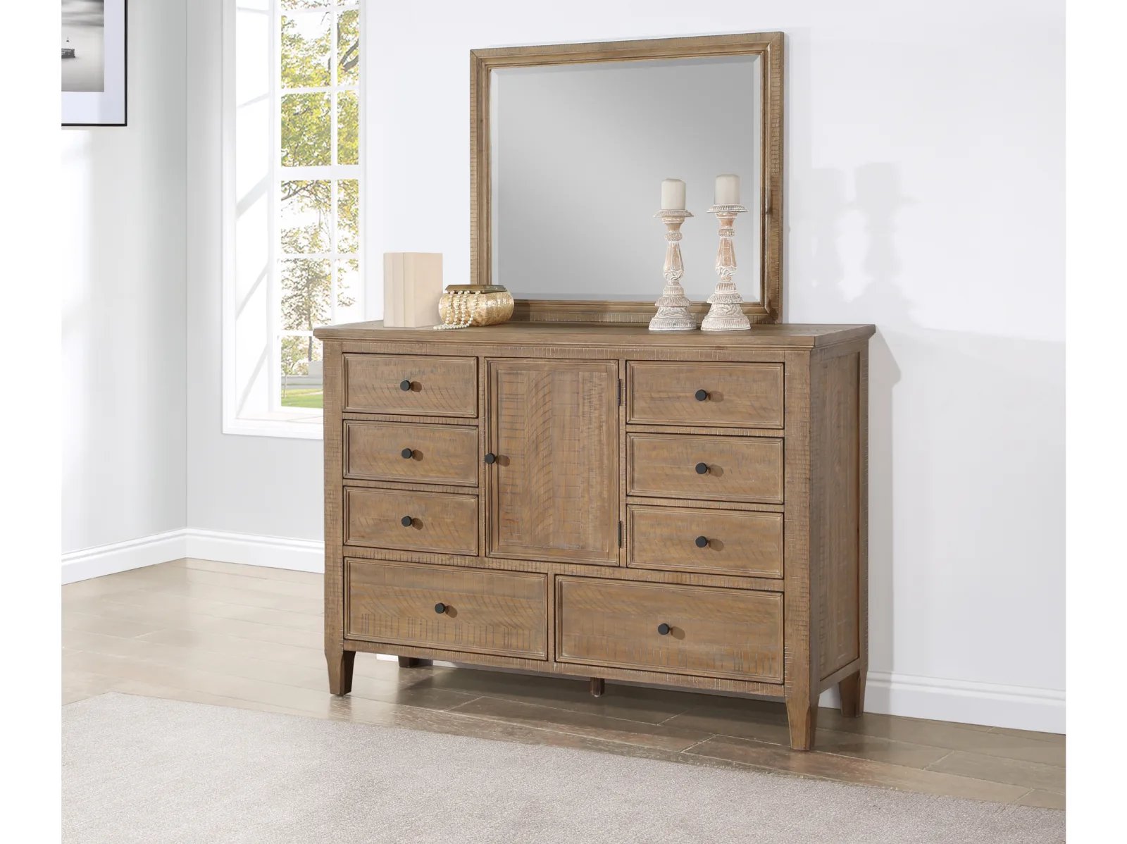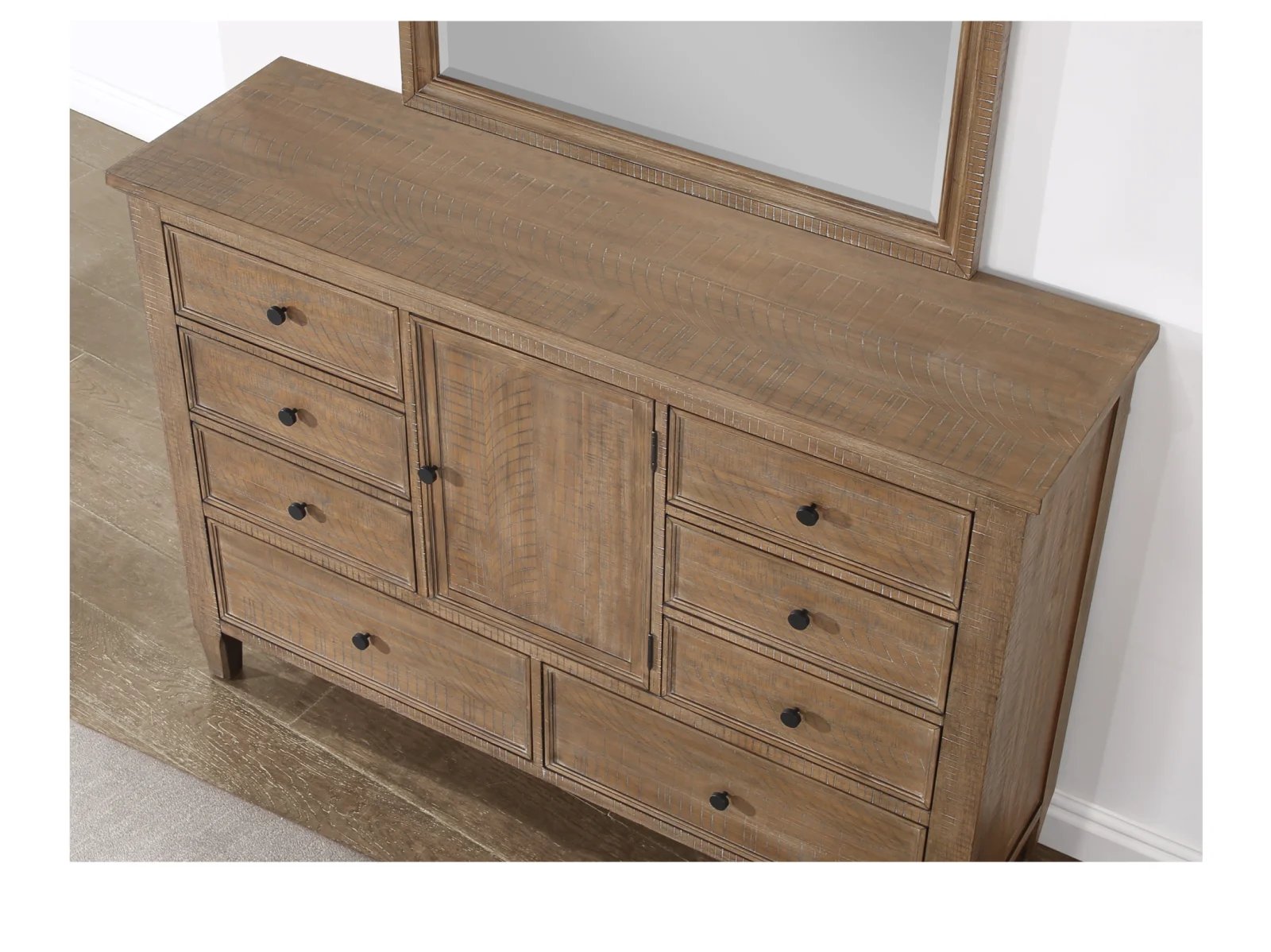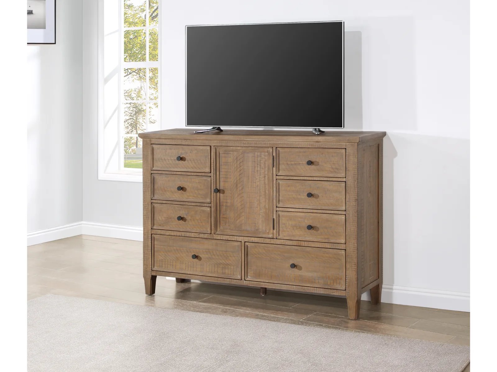 Transform your bedroom into a cozy and inviting space with the Spring Creek Dresser, a perfect blend of rustic sophistication and modern styling. Crafted from solid pine and Asian hardwood solids, this dresser features wood scoring and saw rasping to relax the appearance like a time-worn antique. With spacious drawers and a door, there’s plenty of storage for clothing and bulky items, and two felt-lined drawers ensure your delicates stay protected. The Spring Creek Dresser is the perfect addition to any bedroom that craves both character and functionality.