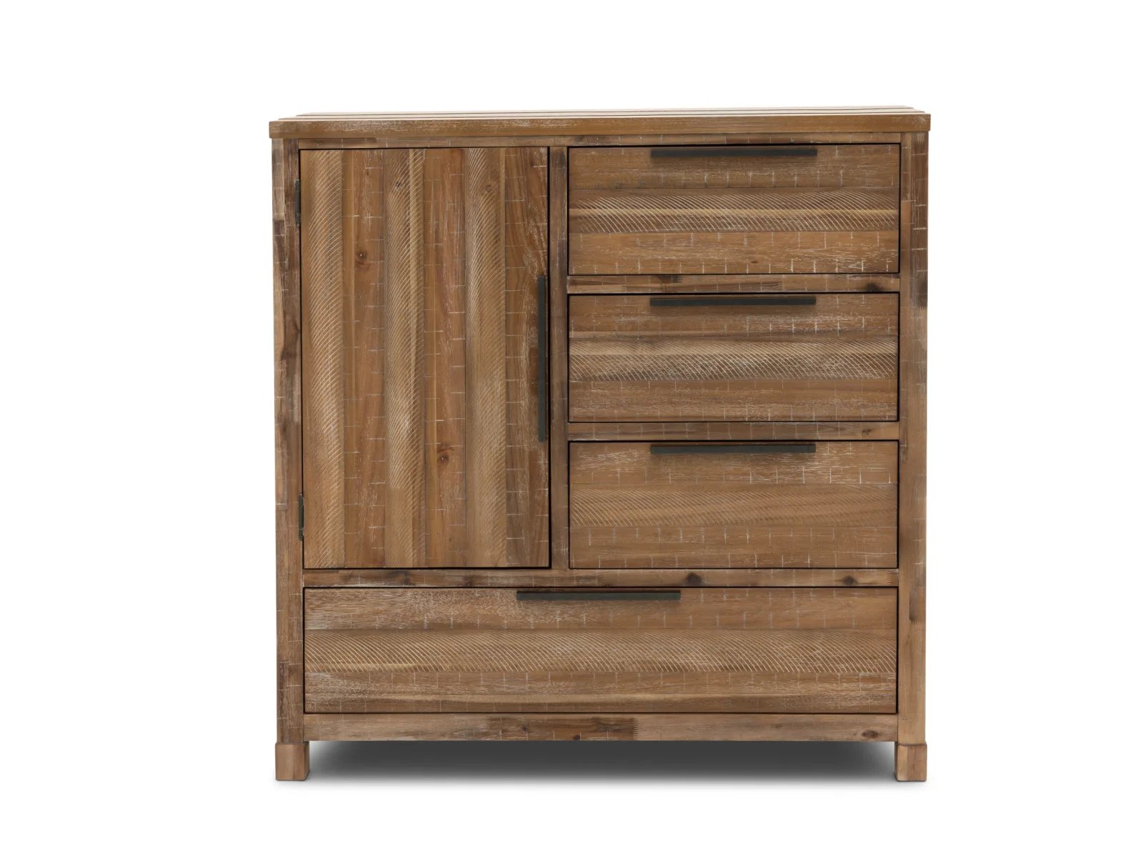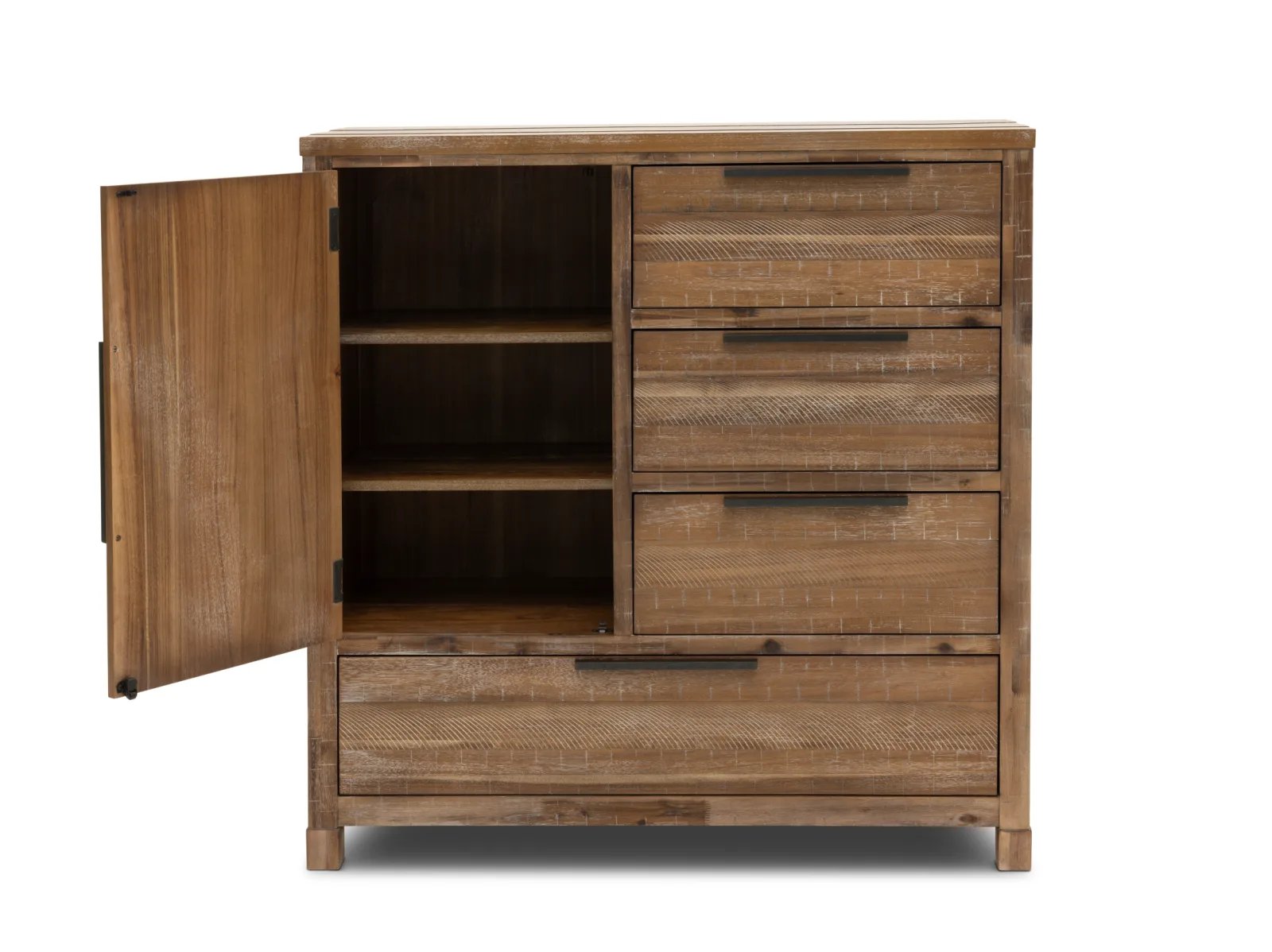 The St. Paul Door Chest delivers refined storage with an enduring twist of style and functionality. Its acacia wood construction and light oak finish create a relaxed, welcoming vibe that complements modern and rustic spaces alike. The St. Paul’s unique combination of drawers and a spacious cabinet offer flexible storage that’ll keep every valuable or delicate item safe. Organize clothing, linens, or accessories with ease in the beautifully crafted St. Paul Door Chest.