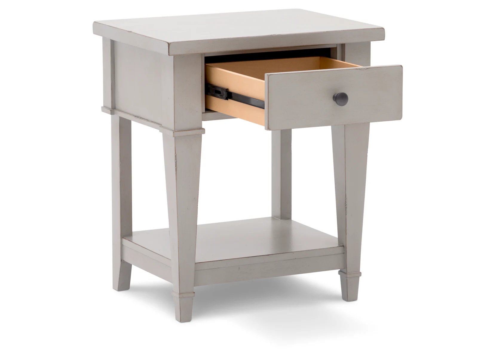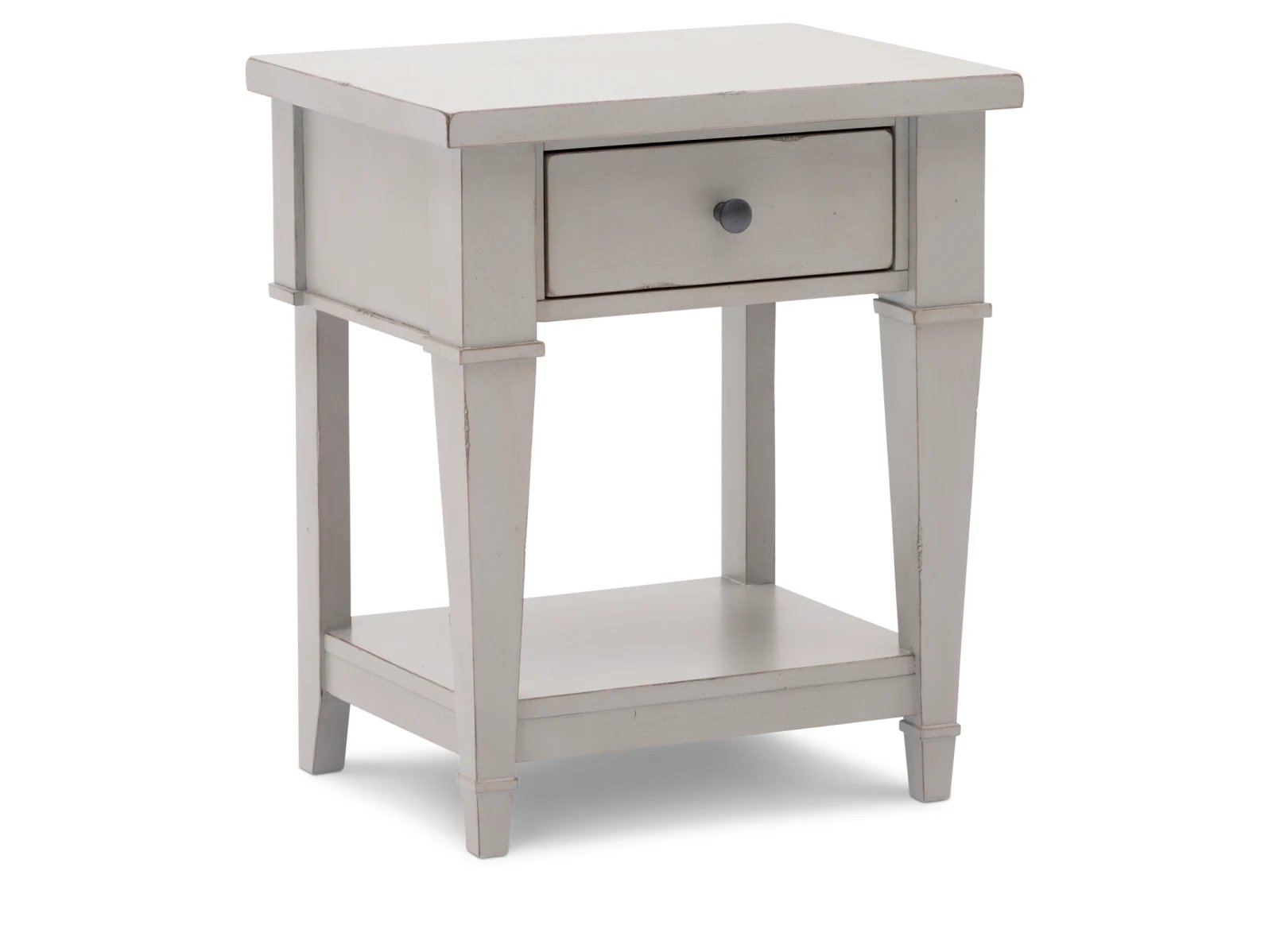 Your youth’s bedroom storage will be beautifully crafted of solid pine and other woods in a textured, antique paint finish with the Stoney Creek Nightstand. This furnishing’s style is reminiscent of a casual cottage lifestyle. Featuring a sanded, and tinted drawer with an antique black metal pull, the Stoney Creek offers transitional style and clean lines you will love. This nightstand will add fresh design to your child’s bedside. The Stoney Creek is available in a white or gray paint finish.
