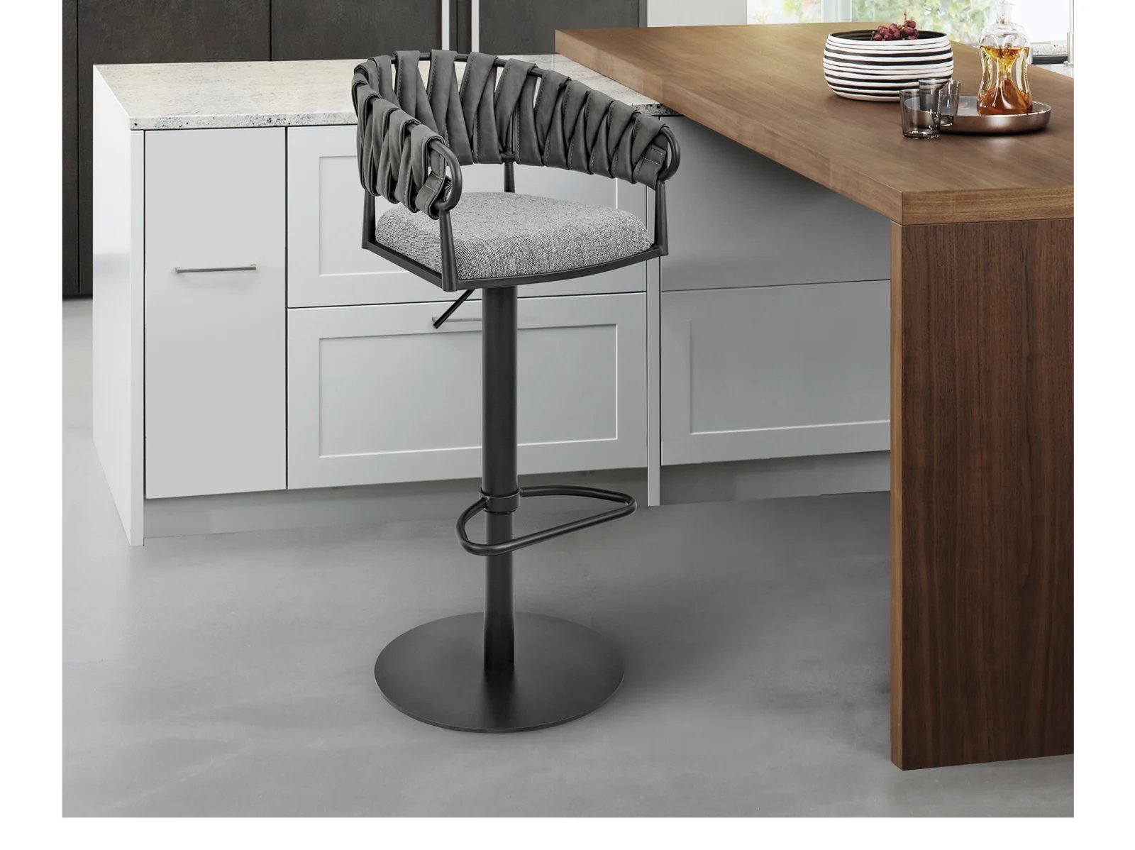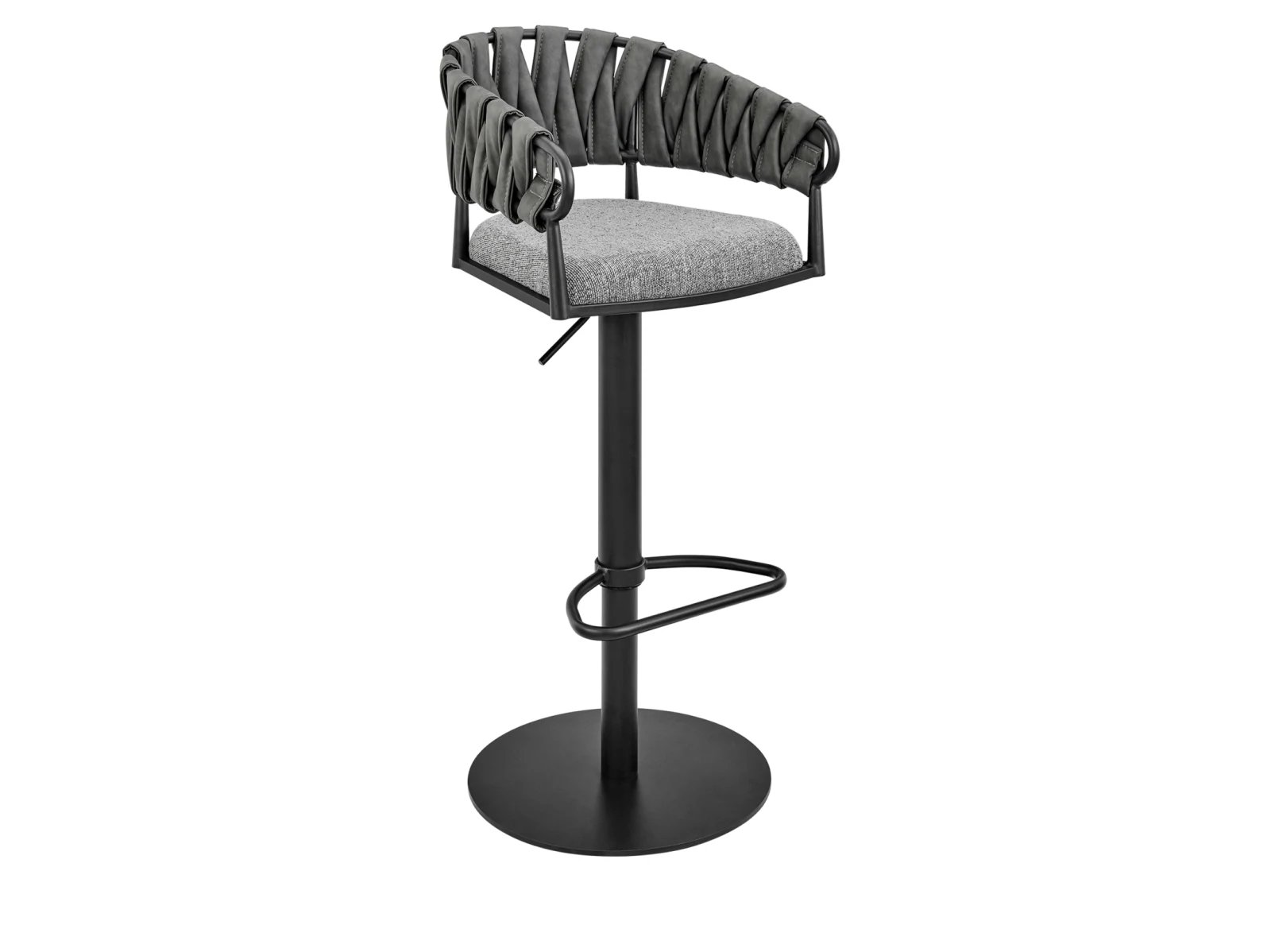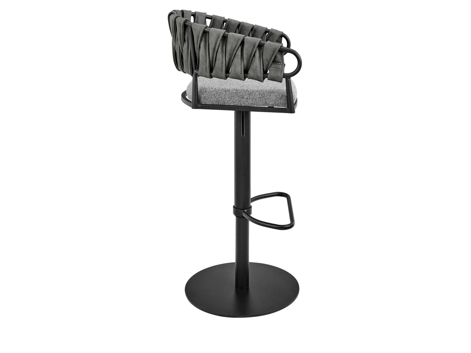& Free ShippingMake a chic style statement with the Stormberg adjustable counter and bar stool in grey fabric, faux leather, and black metal. Faux leather straps are artfully wrapped around its metallic frame. Faux leather does not crack easily and is stain resistant, does not fade easily and is also UV resistant. The wonderful full 360-degree swivel function allows for maximum mobility. The smooth glide swivel function allows you to change directions of the bar stools seat with ease, making this your new favorite seat in your home. The glamorous finish of faux leather is contrasted with grey textured fabric to bring a sophisticated mix of textures. Finished off with a sleek black metallic finish, our metal counter or bar stool amps up the drama and style quotient of your home. The adjustable seat height functionality allows you to use this stool at your kitchen island, home bar, or peninsula without having to worry about the surface height. Being incredibly versatile, our faux leather kitchen bar stool can easily adjust to double duty as a bar or counter stool.