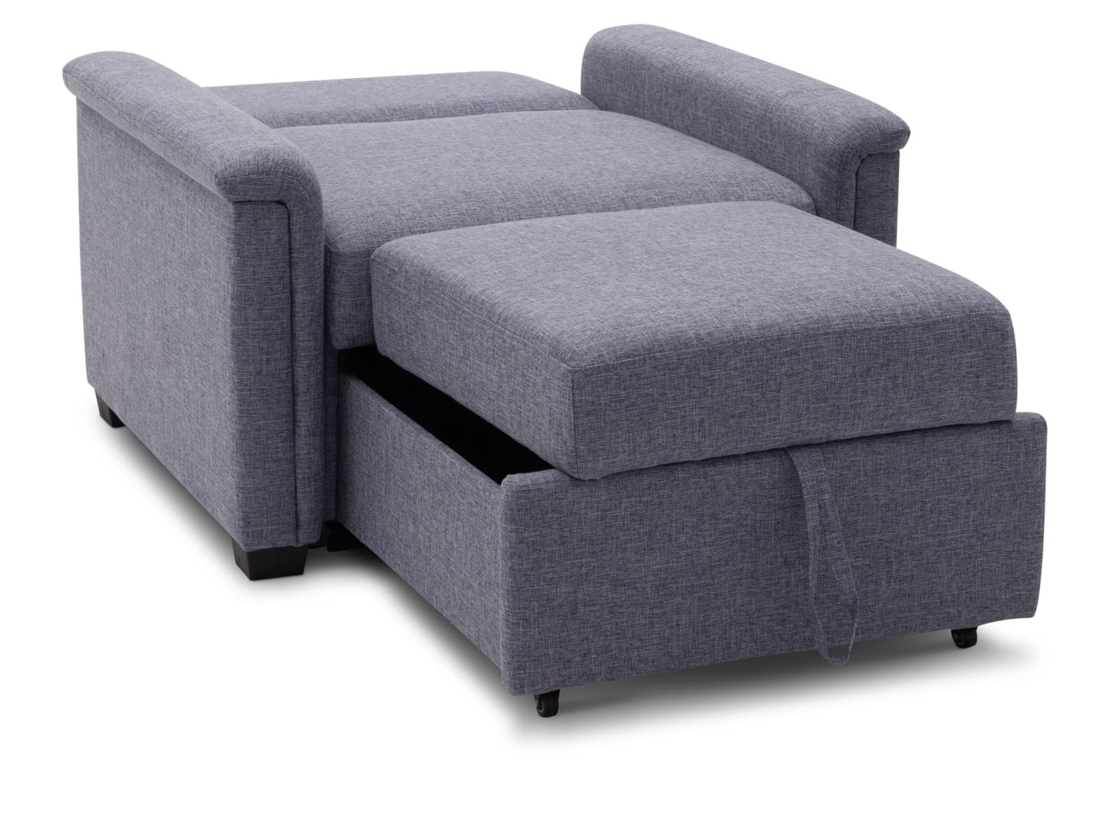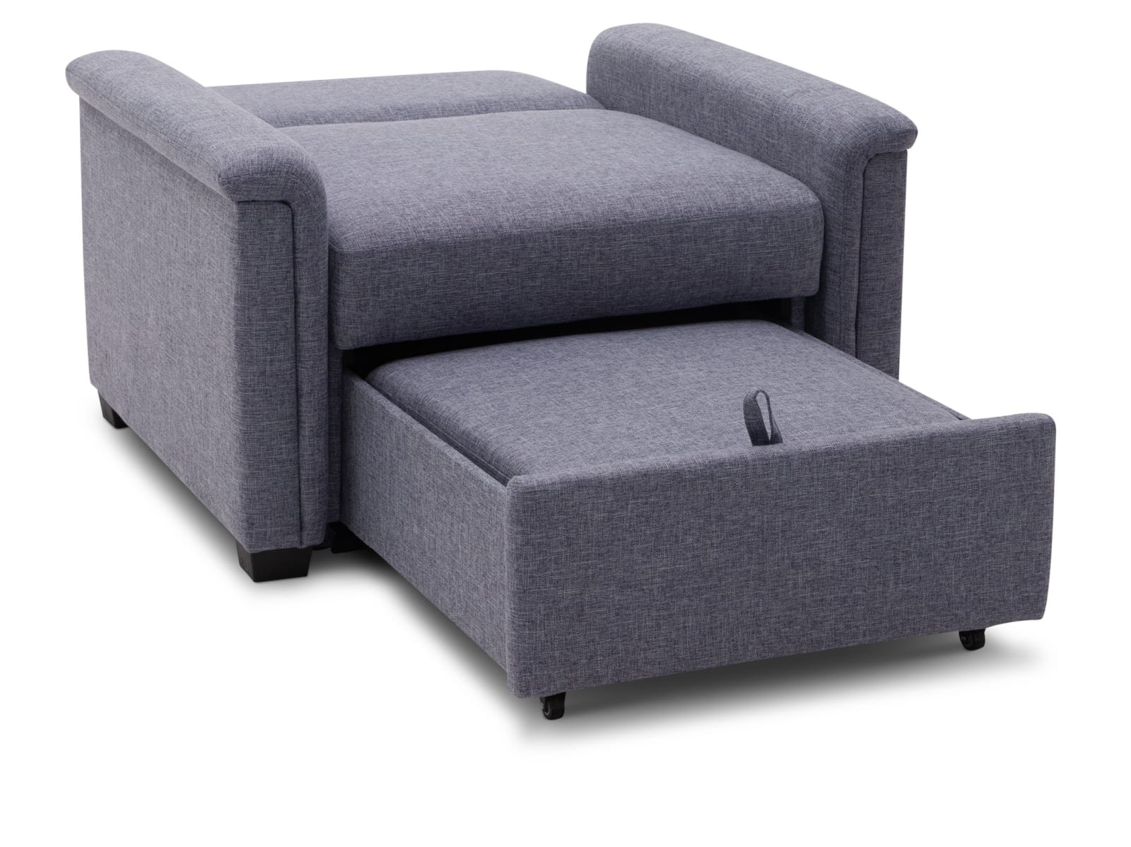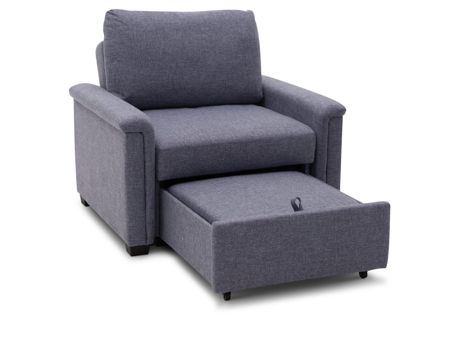The Studio Padded Arm Sleeper Chair delivers a premium sense of comfort along with a contemporary convertible frame. Offering a seat with an individually wrapped coil interior and a reversible back cushion, the Studio delivers long-lasting comfort which is enhanced by its crisp padded track arms. The Studio’s backrest features a ratchet mechanism with three reclining positions, and its base conceals a convenient pull-out ottoman which allows it to transform into a sleeper chair with ease. Finally, this versatile chair is upholstered in a soft performance fabric that’s available in three attractive colors: blue, grey, and taupe. The options are practically endless with the Studio Padded Arm Chair.