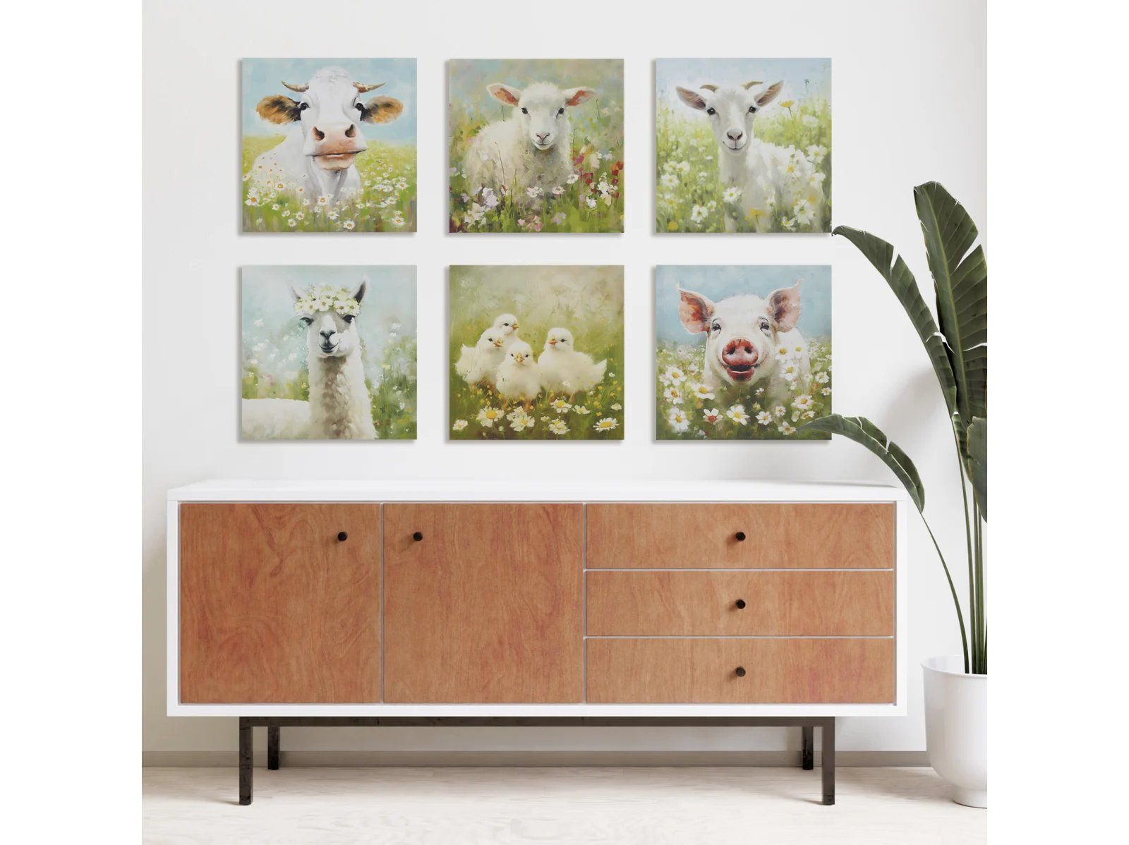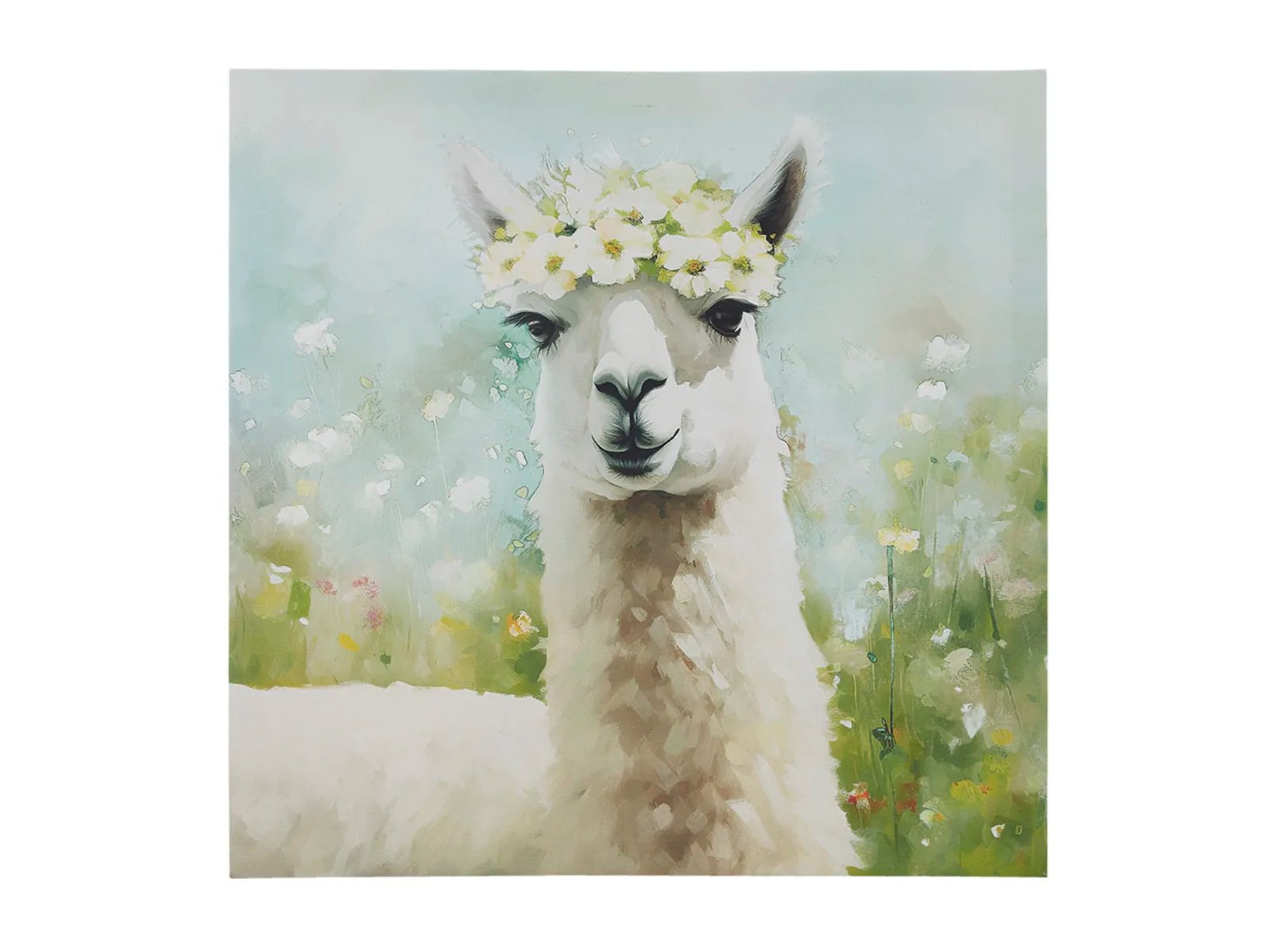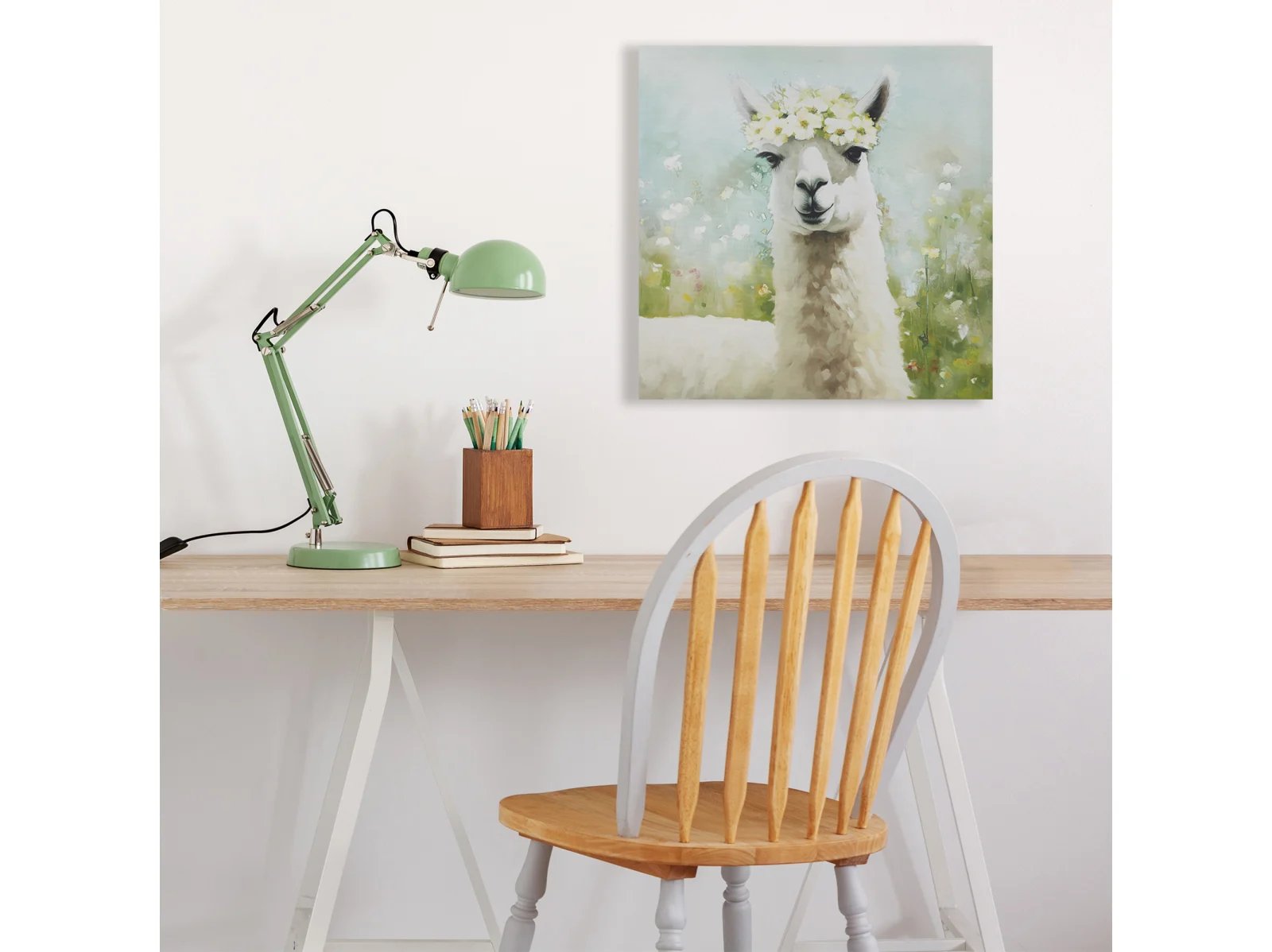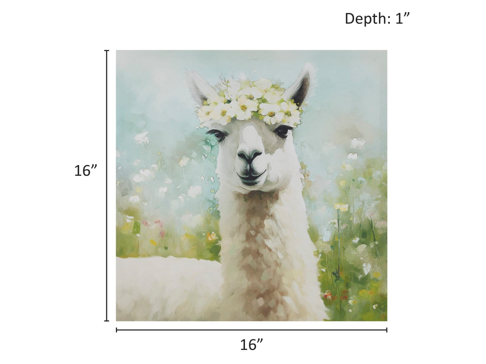 Brighten your walls with the cheerful Sunshine Animals Llama Canvas Wall Art! This vibrant 16″ x 16″ canvas features a delightful llama frolicking in flower fields, adorned with a colorful floral headdress. Add a touch of joy to any space with this ready-to-hang piece, created by the talented artist Tessa Kane. Don’t forget to collect the other Sunshine Animal canvases to create a vibrant gallery wall in your living room or dining room!