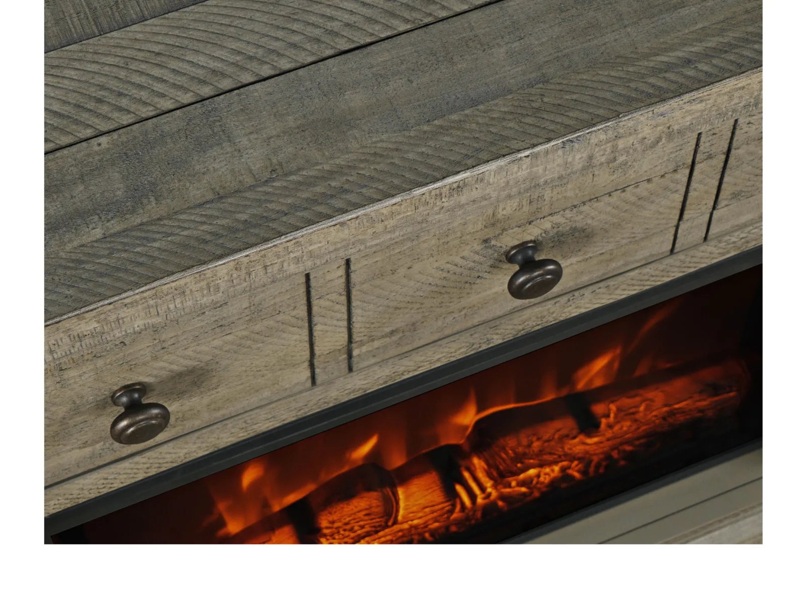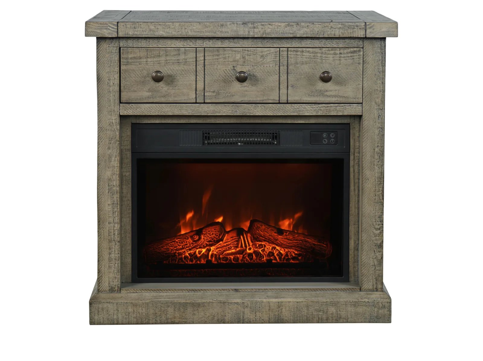 & Free ShippingThe Tafton Rustic Farmhouse Solid Wood 32″ Electric Fireplace TV Stand Console brings a warm, rustic charm to your home. Made from solid distressed Pine, it features a beautiful driftwood grey finish that complements its farmhouse aesthetic. The vintage metal knob hardware on the storage drawer provides a classic touch while offering convenient storage for media accessories or other items. At the heart of the console is a 1500W LED fireplace insert that delivers up to 5000 BTUs of heat, perfect for creating a cozy atmosphere in your living space. If you prefer, the fireplace can also be used without the heat, allowing for year-round ambiance. The console is thoughtfully designed with built-in cable management holes, ensuring that your cords stay organized and out of sight when using it as a TV stand or for other electronics. Blending rustic style with modern functionality, the Tafton Fireplace TV Stand is an excellent choice for adding both warmth and storage to any living room or entertainment area.