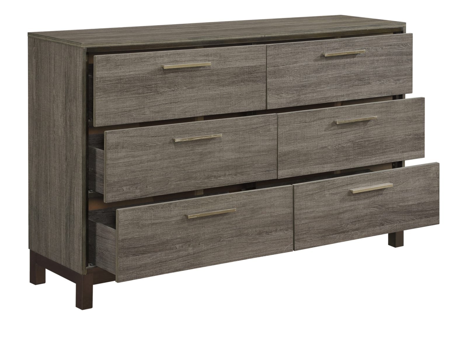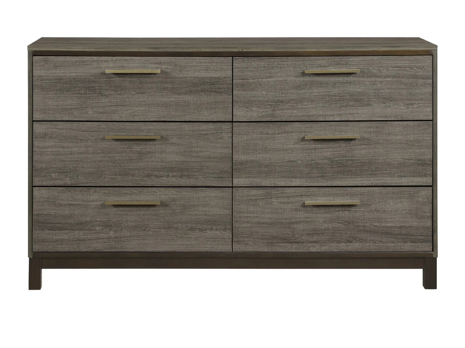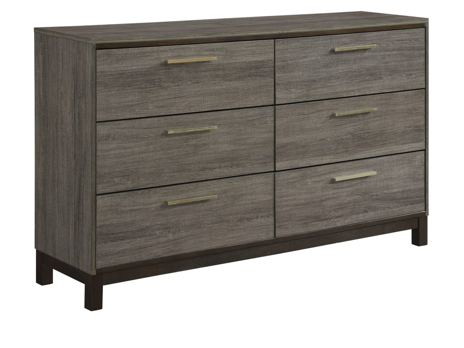 - engineered wood with faux wood veneers in a 2-tone antique gray and dark brown finish