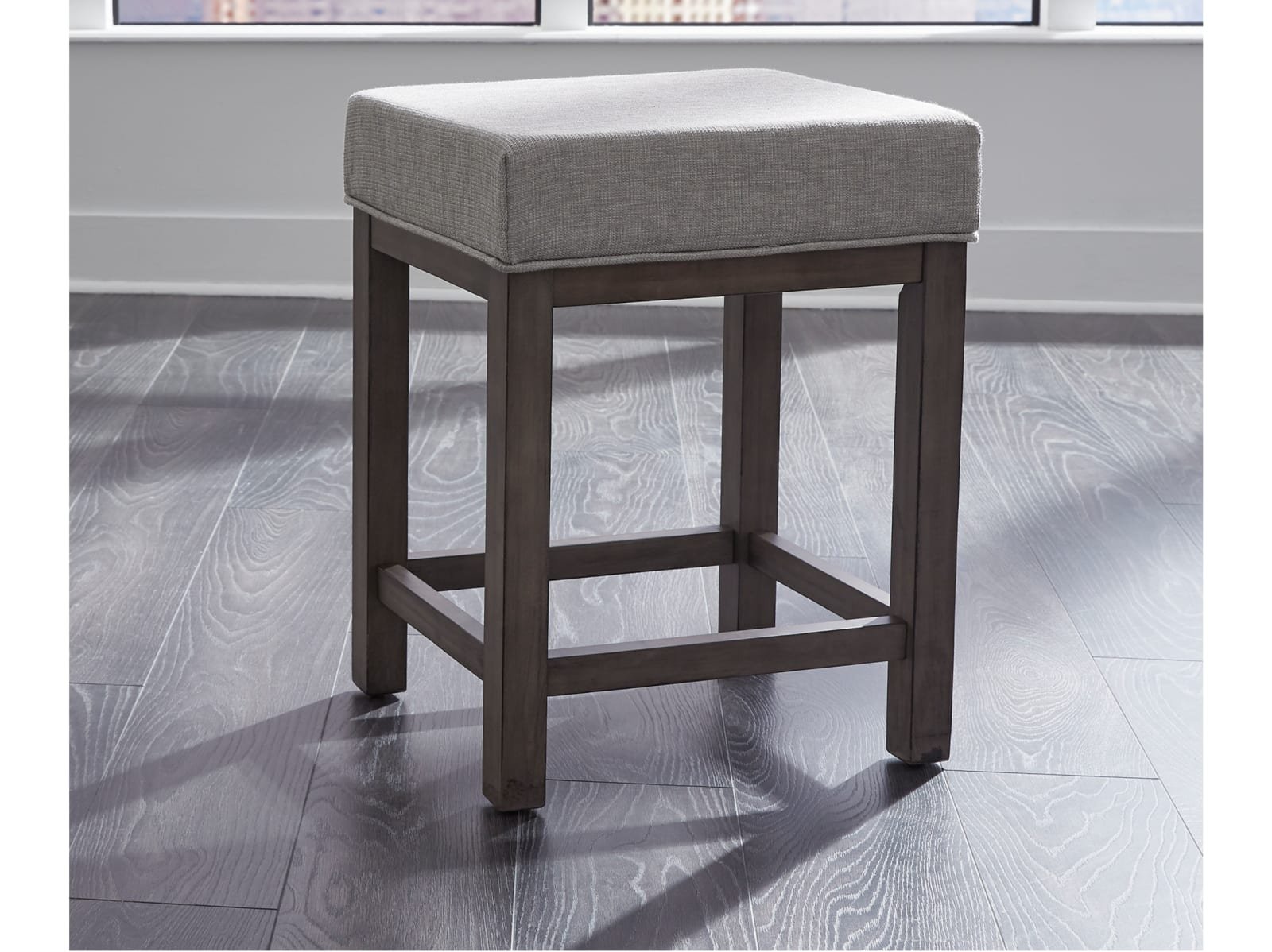 Simple and stylish, the Tarzana 3 pack stools are constructed of solid rubberwood block legs in a Greystone finish with a padded upholstered seat in a grey tweed fabric.