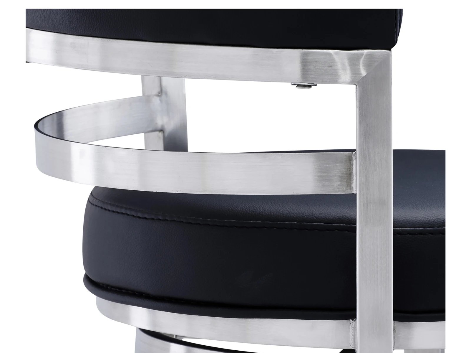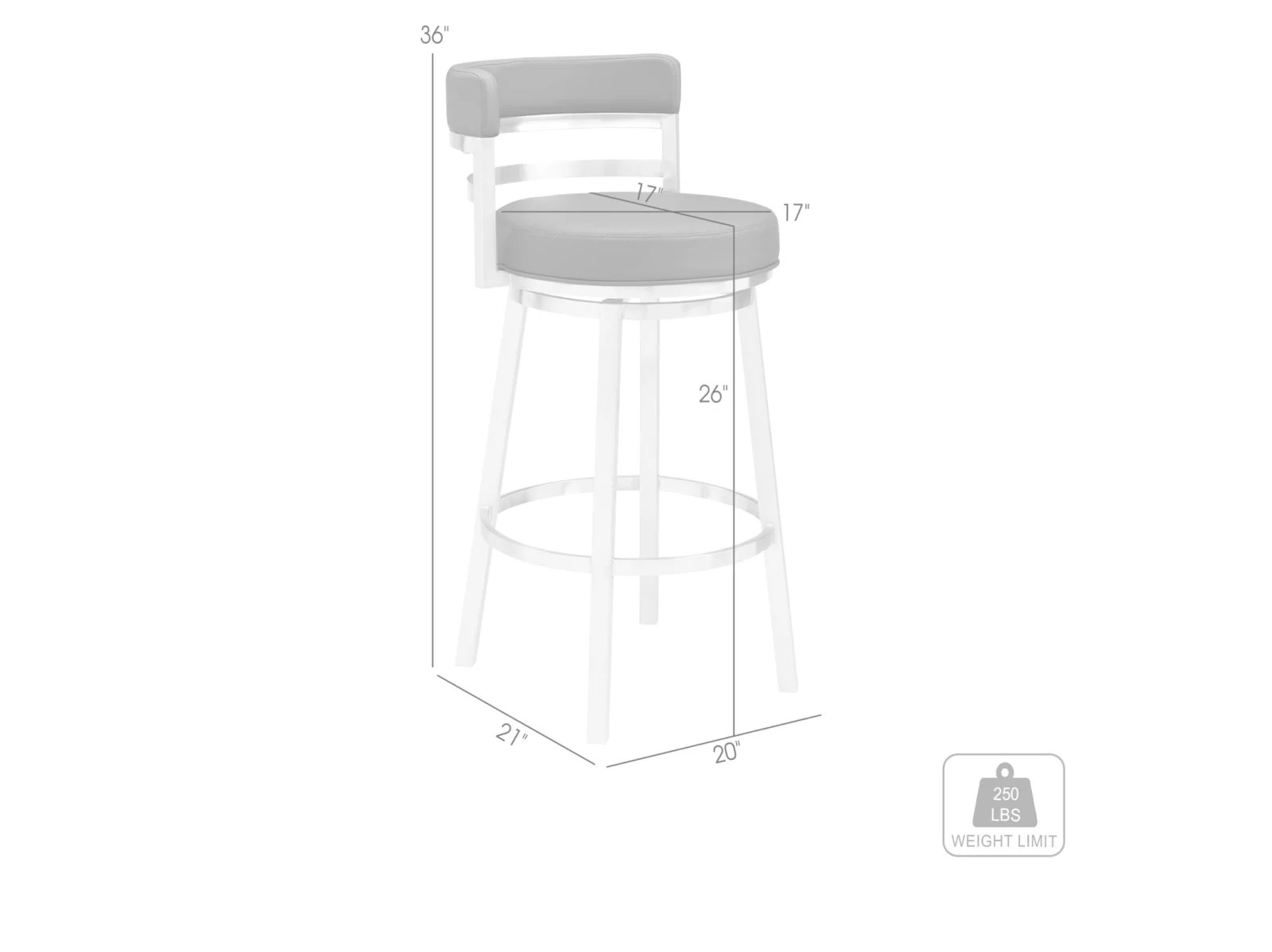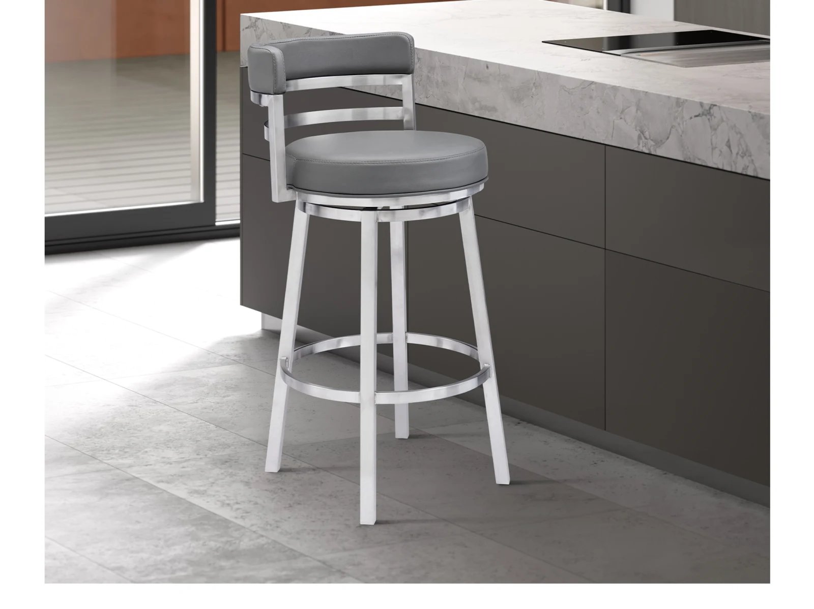 The Armen Living Taswell transitional bar stool is a standout piece sure to enhance the style of any contemporary household. The elegant style and versatility of this bar stool makes it a perfect fit for a variety of modern kitchen and bar designs. The Taswell sports a sturdy metal frame and plush upholstered seat and back. The added 360 degree swivel functionality makes the Taswell highly mobile.