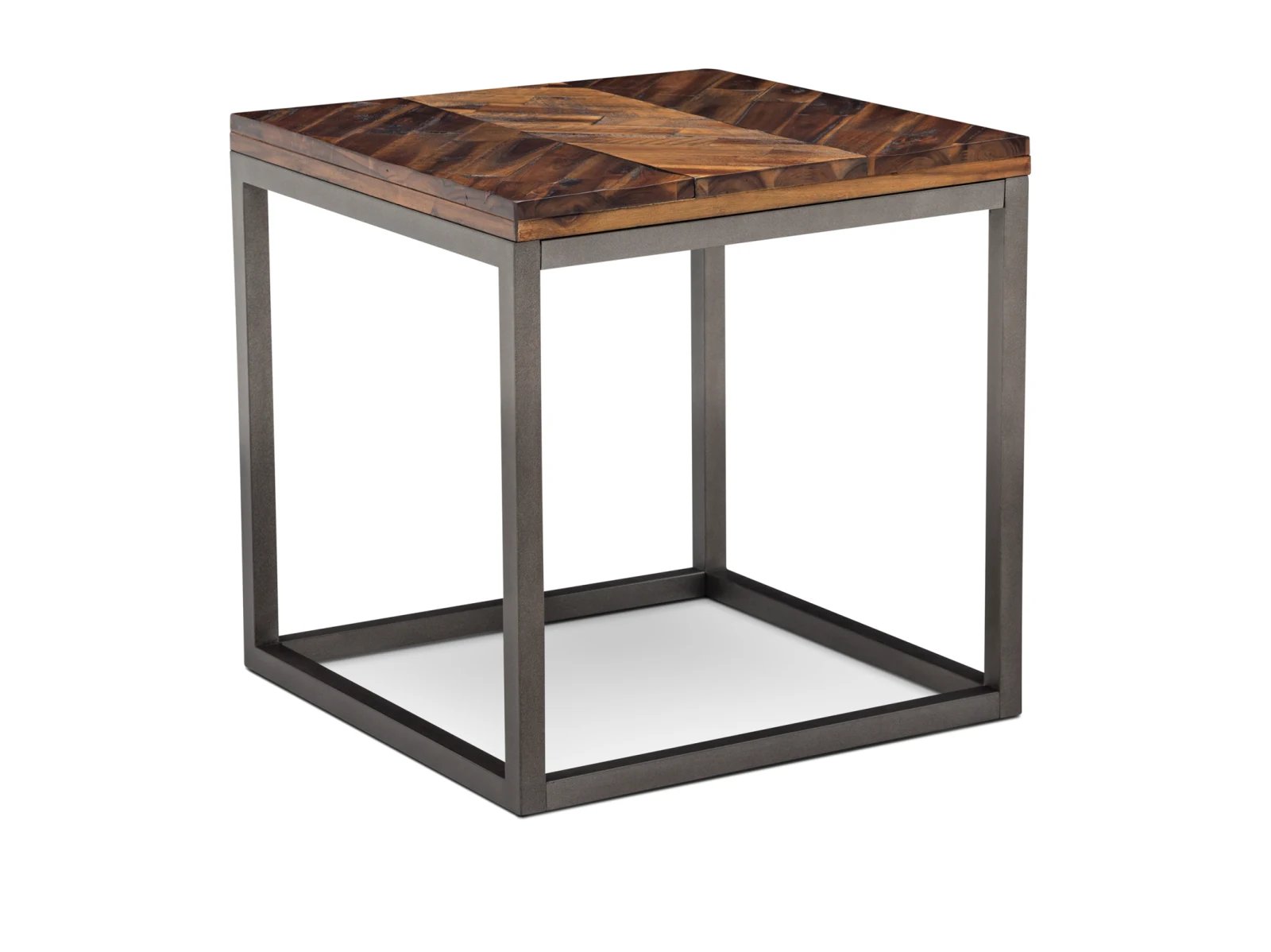 & Free ShippingGet an accent piece that bridges the gap between rustic and contemporary with the Taytum End Table. The Taytum’s gorgeous table top showcases distressed, Honey-colored acacia solids in a striking chevron pattern, and it rests atop a clean-lined base made from durable powder-coated metal. You’re going to love adding a touch of distinction to your home with the Taytum End Table.