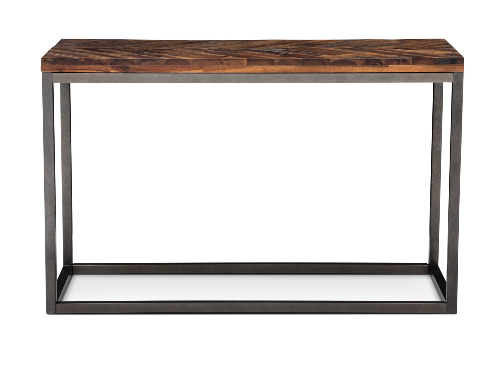 & Free ShippingWith clean-lined contemporary appeal and gorgeous rustic tones, the Taytum Sofa Table is sure to elevate the look of your home. The top of this stylish sofa table showcases a striking chevron pattern made from distressed acacia solids in a natural Honey finish, and its pewter-colored metal base offers an elegant sled-style design that’s perfect for today’s interiors.