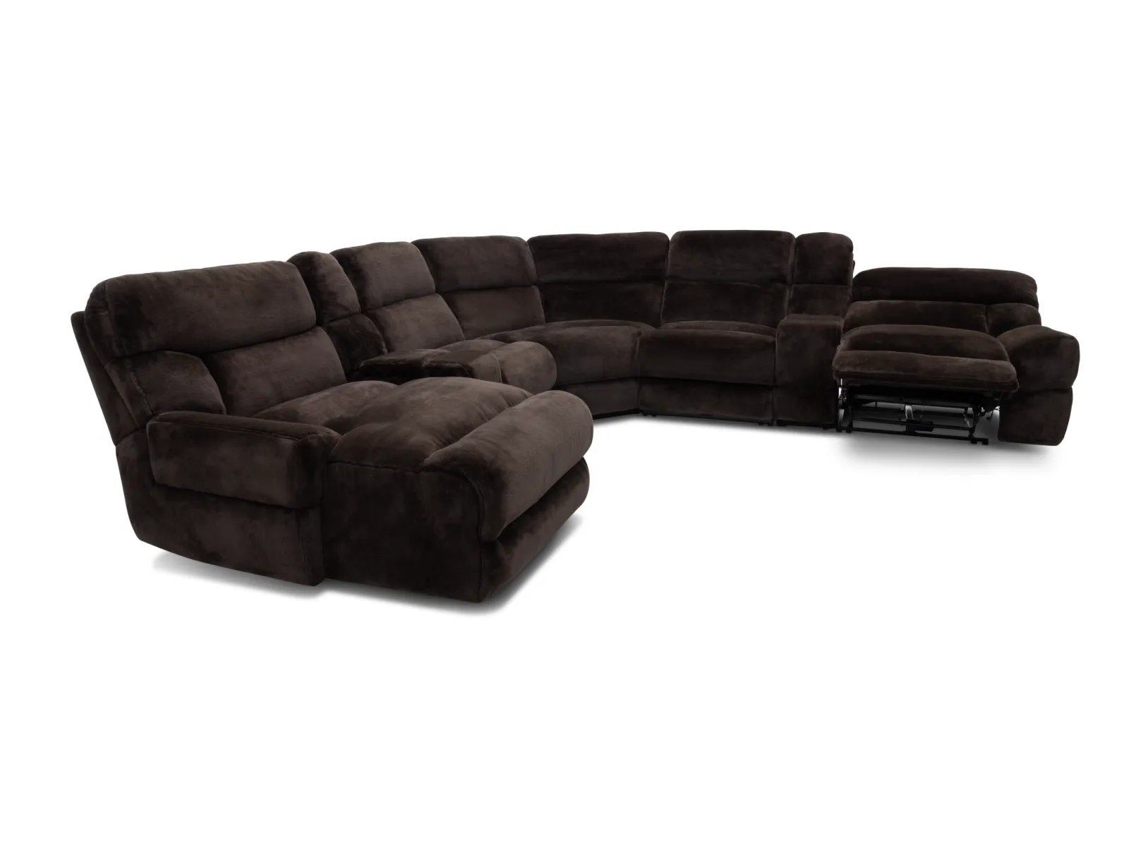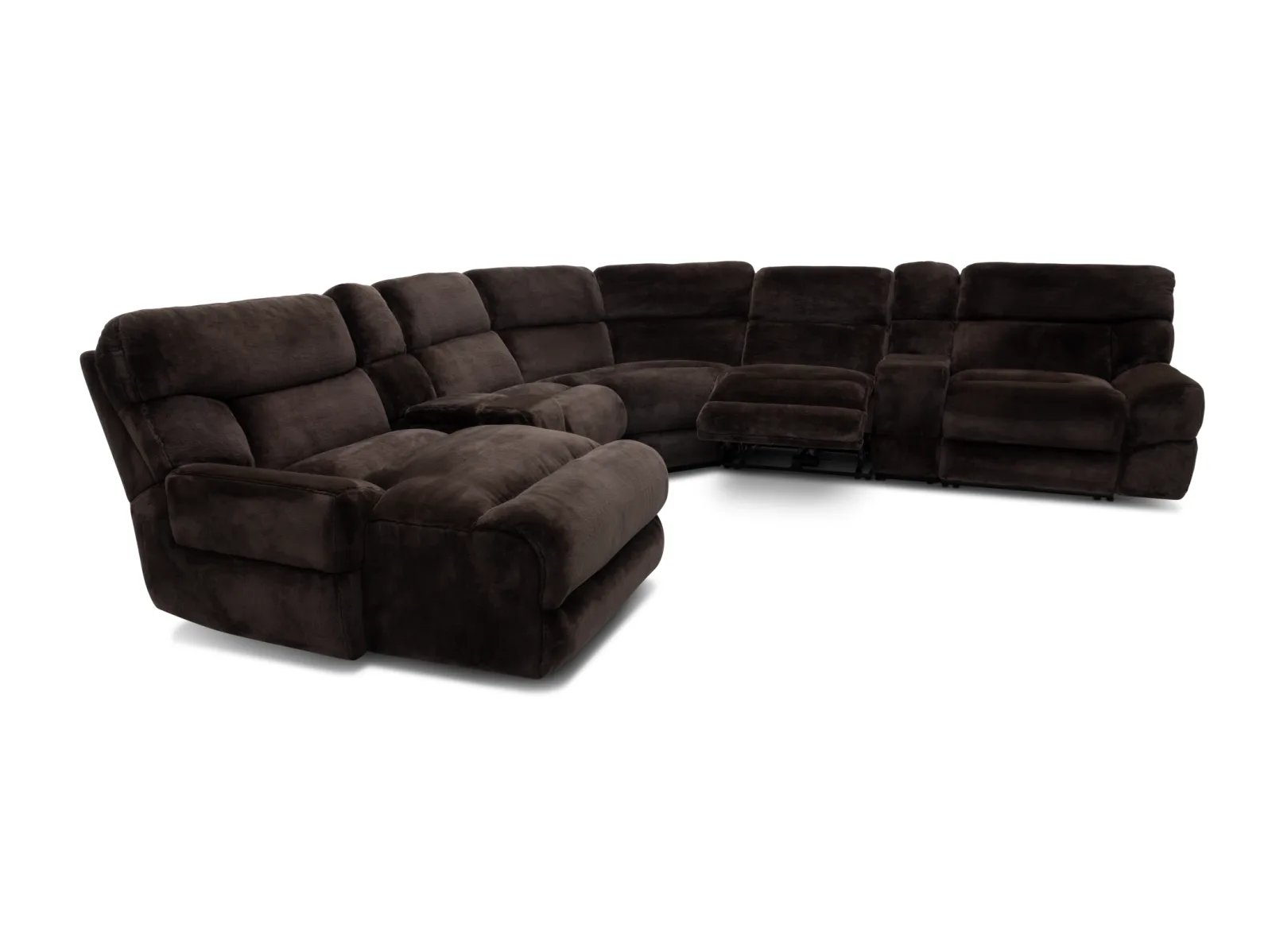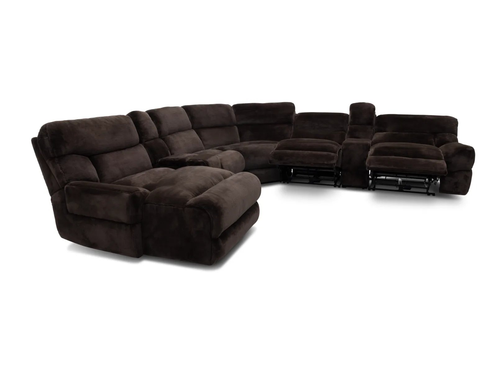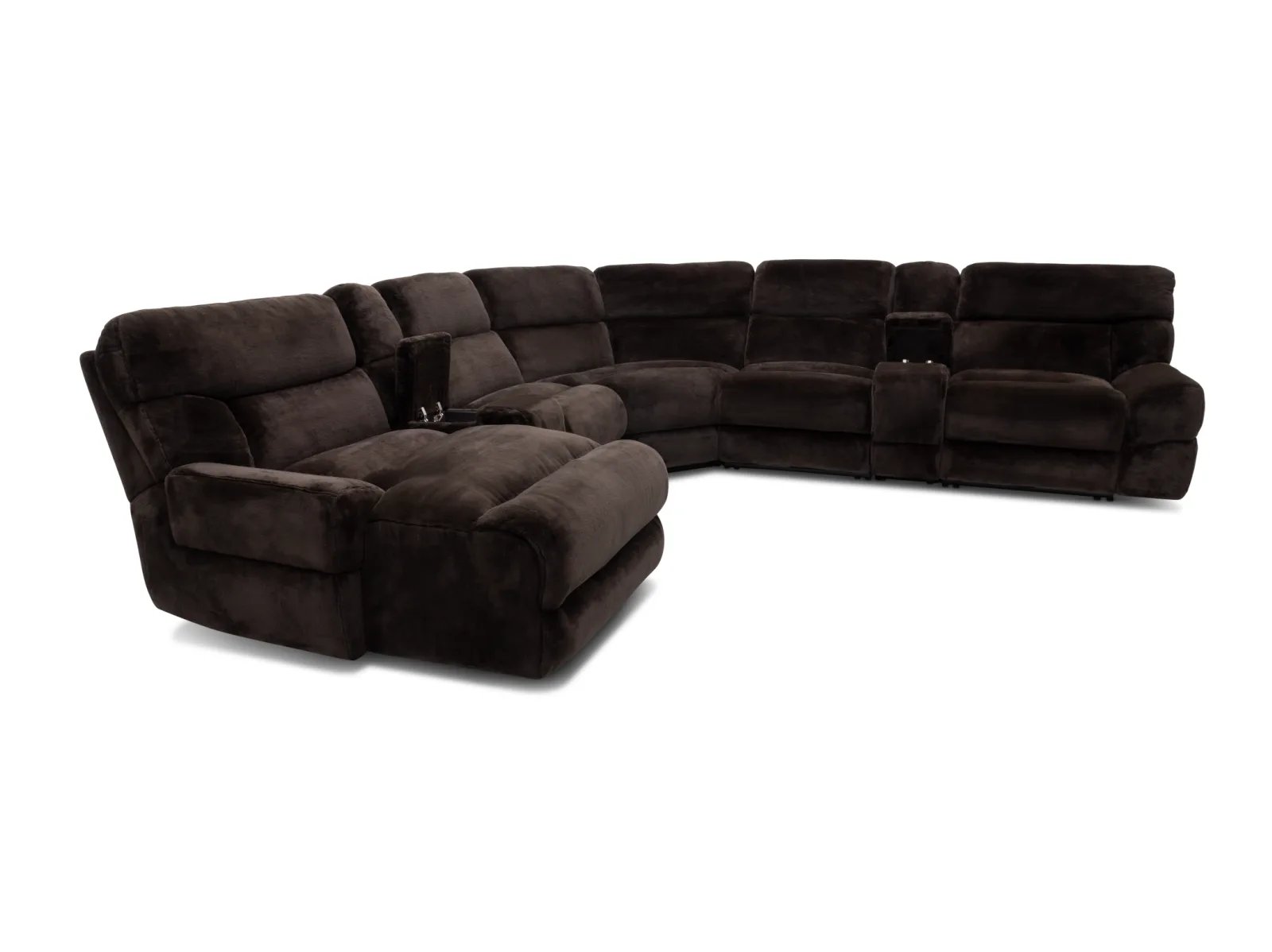 & Free ShippingCreate the ultimate entertainment space with the Tedi 7 Pc. Power Reclining Sectional. This expansive living room sectional offers ample seating with high-density foam seating plus Dacron-blown backs and arms for supreme comfort. A seven-ply hardwood and plywood frame construction ensures years of loving use, and also features power motion abilities and adjustable headrests for each seat. Upholstered in sumptuous, neutral polyester fabric and accented with cushy track arms, the Tedi will transform you everyday living and entertaining. Experience maximum relaxation with the 7 Pc. Power Reclining Sectional.