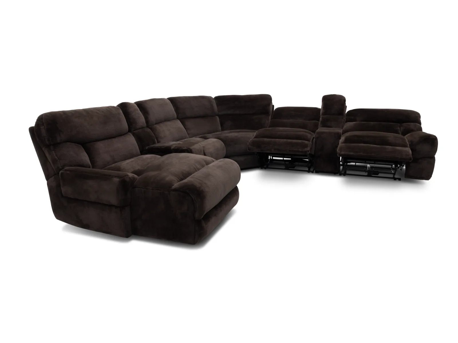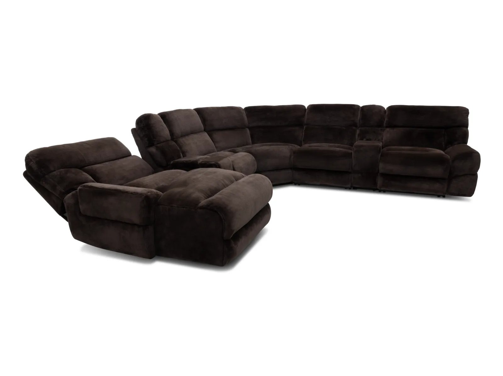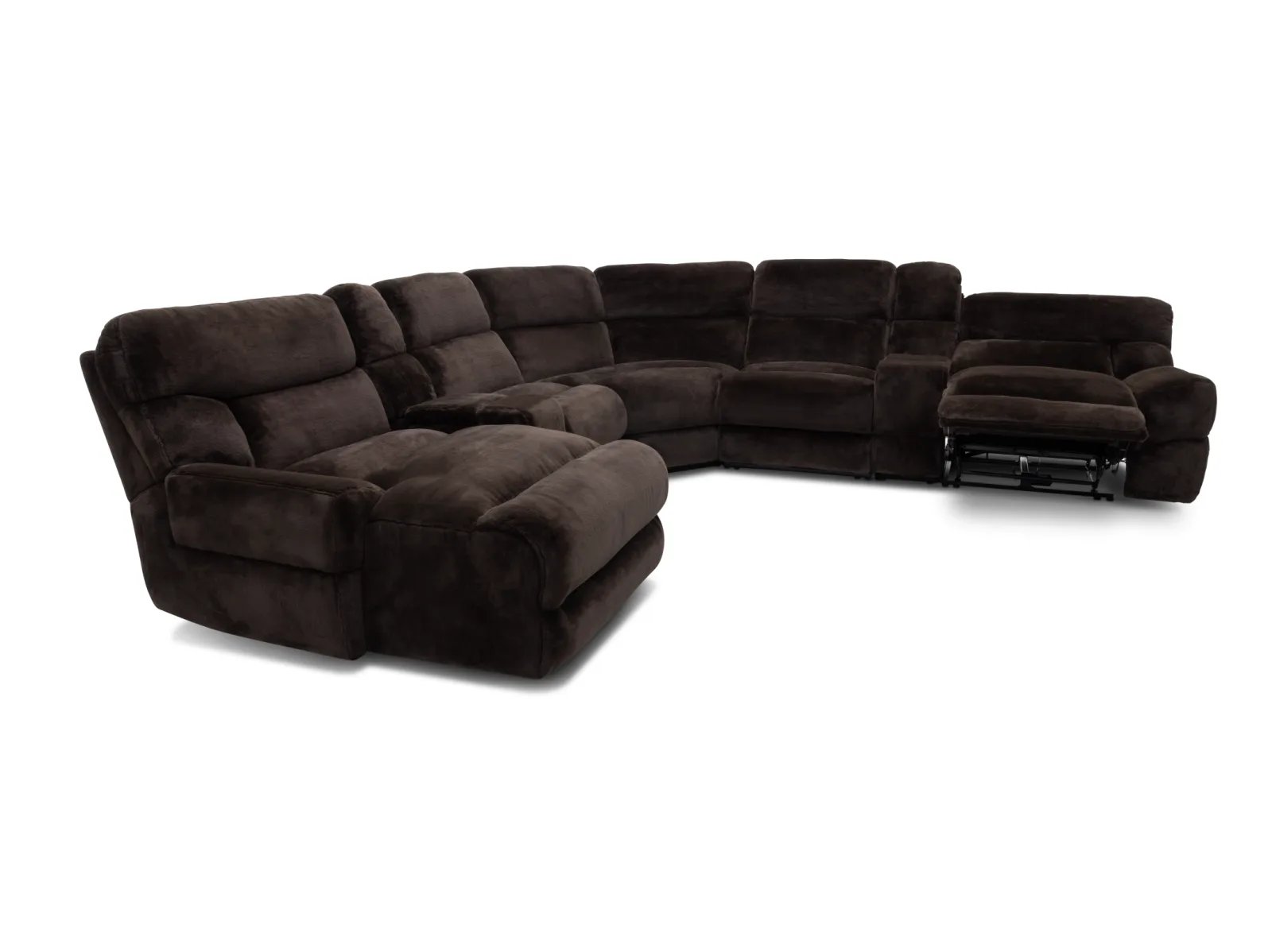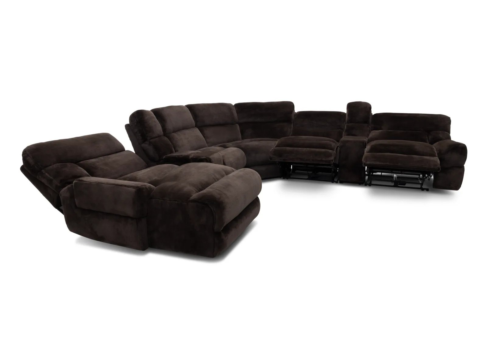& Free ShippingCreate the ultimate entertainment space with the Tedi 7 Pc. Power Reclining Sectional. This expansive living room sectional offers ample seating with high-density foam seating plus Dacron-blown backs and arms for supreme comfort. A seven-ply hardwood and plywood frame construction ensures years of loving use, and also features power motion abilities and adjustable headrests for each seat. Upholstered in sumptuous, neutral polyester fabric and accented with cushy track arms, the Tedi will transform you everyday living and entertaining. Experience maximum relaxation with the 7 Pc. Power Reclining Sectional.