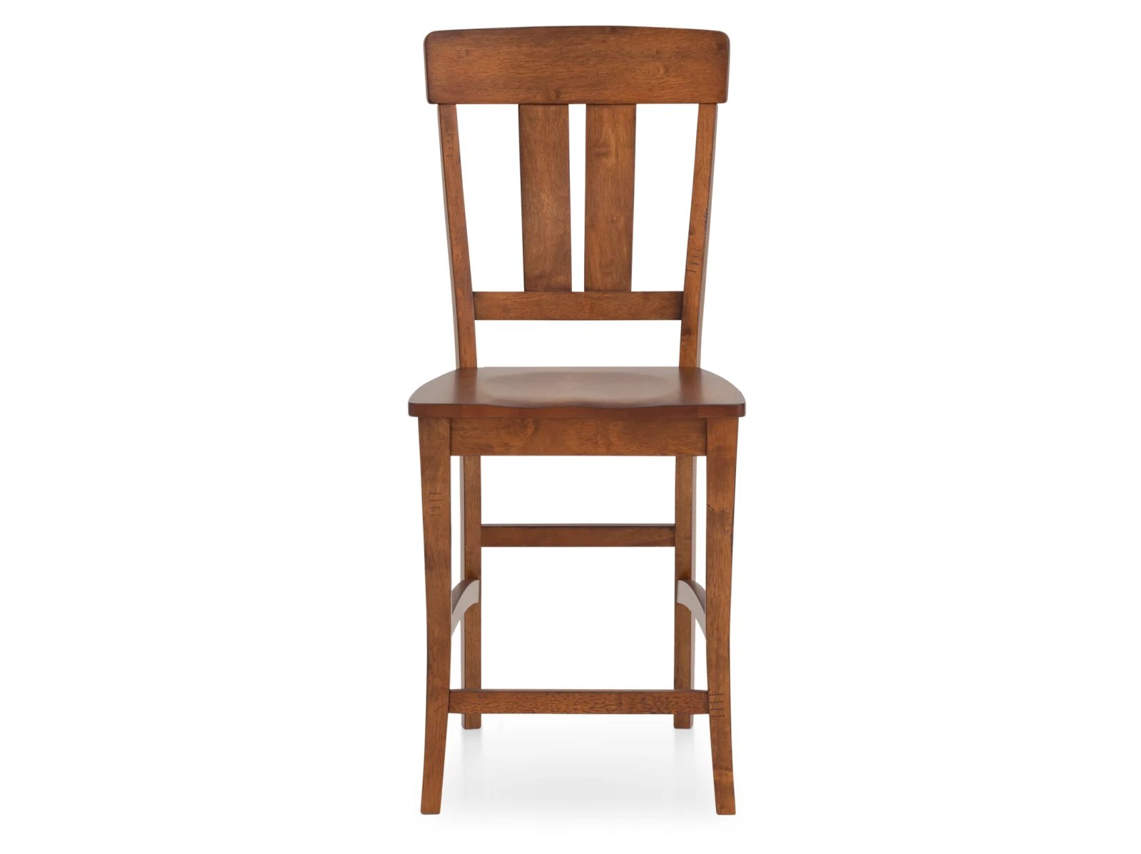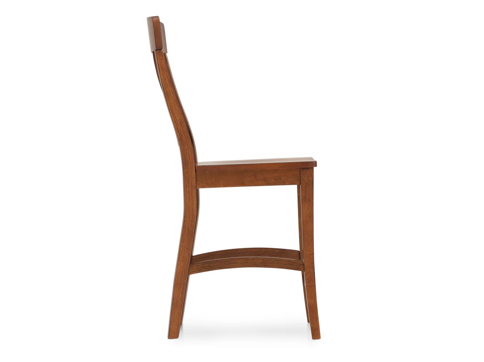 The District Bar Stool is beautifully handcrafted from solid birch finished in a rich copper NC lacquer. With a splat back, gently tapered legs, and H-stretchers for durability, this dining chair has traditional appeal. Bring home The District today, and start making memories with your friends and family.