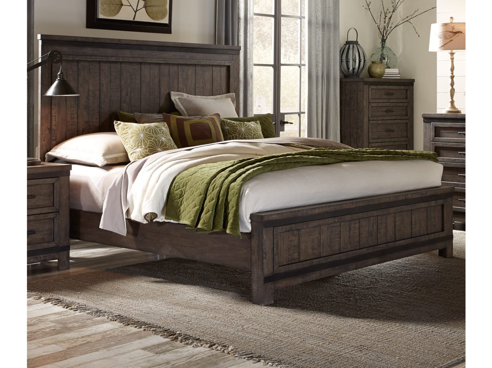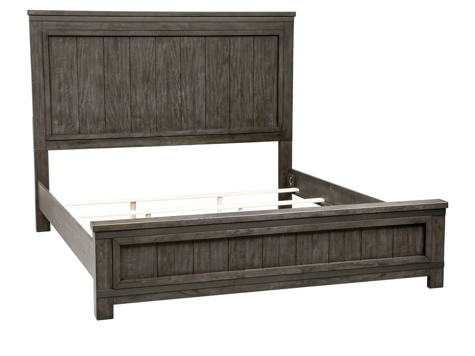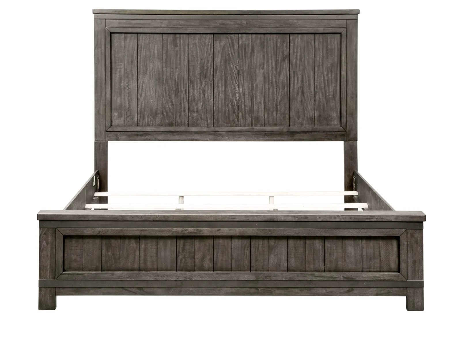 & Free ShippingAdd a natural feeling to your living space using the Thurman panel bed. Crafted with rubberwood solids and mango veneers, the rock beaten gray finish is highlighted by saw cuts and hammered metal strip accents across the planked headboard and footboard. Never question the reliability of the bed due to the bolt-on rails and center supported slat system.