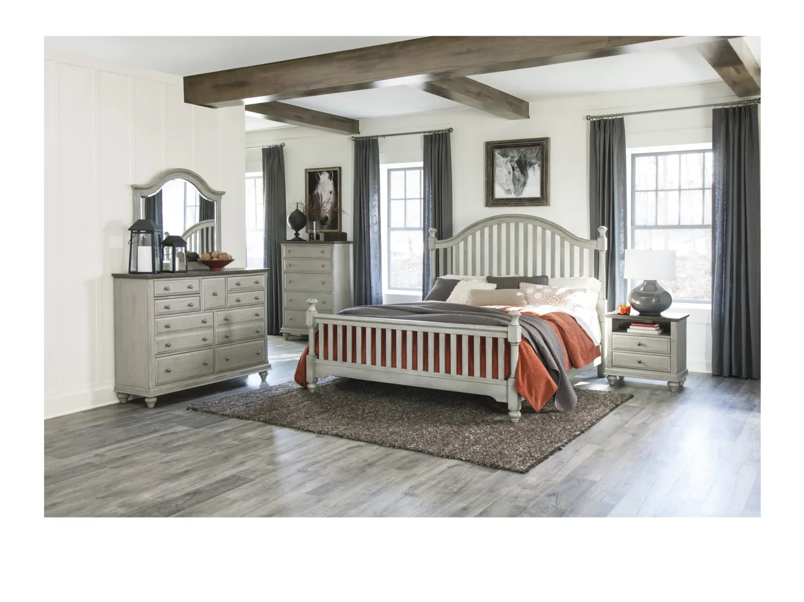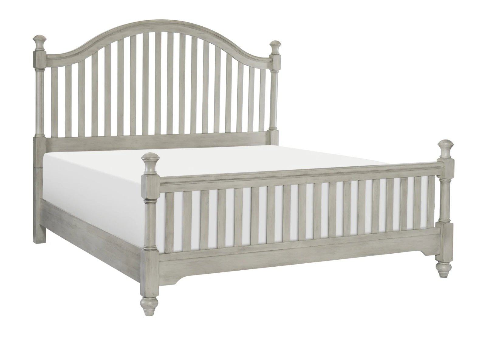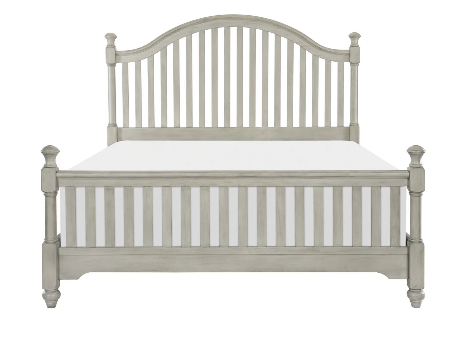 & Free ShippingIn nod to modern farmhouse design, the Toddrick Collection features a classic profile that will be a perfect addition to your home’s décor. The pine solids and oak veneer of the collection feature a light gray finish, subtly highlighting the wood’s grain. The vertical slats of the low-post queen bed lend classic styling to the collection, their heights following the curved profile of the headboard and footboard, each corner topped with a turned finial.
