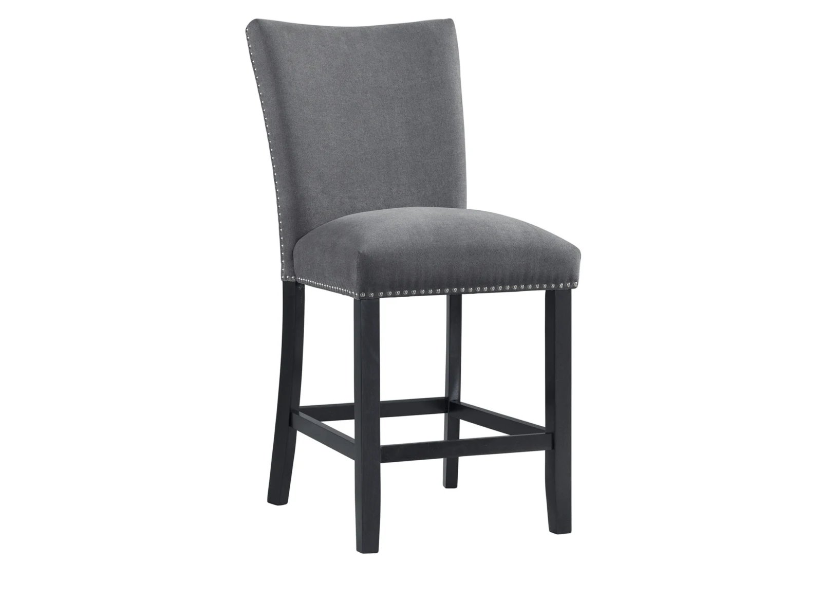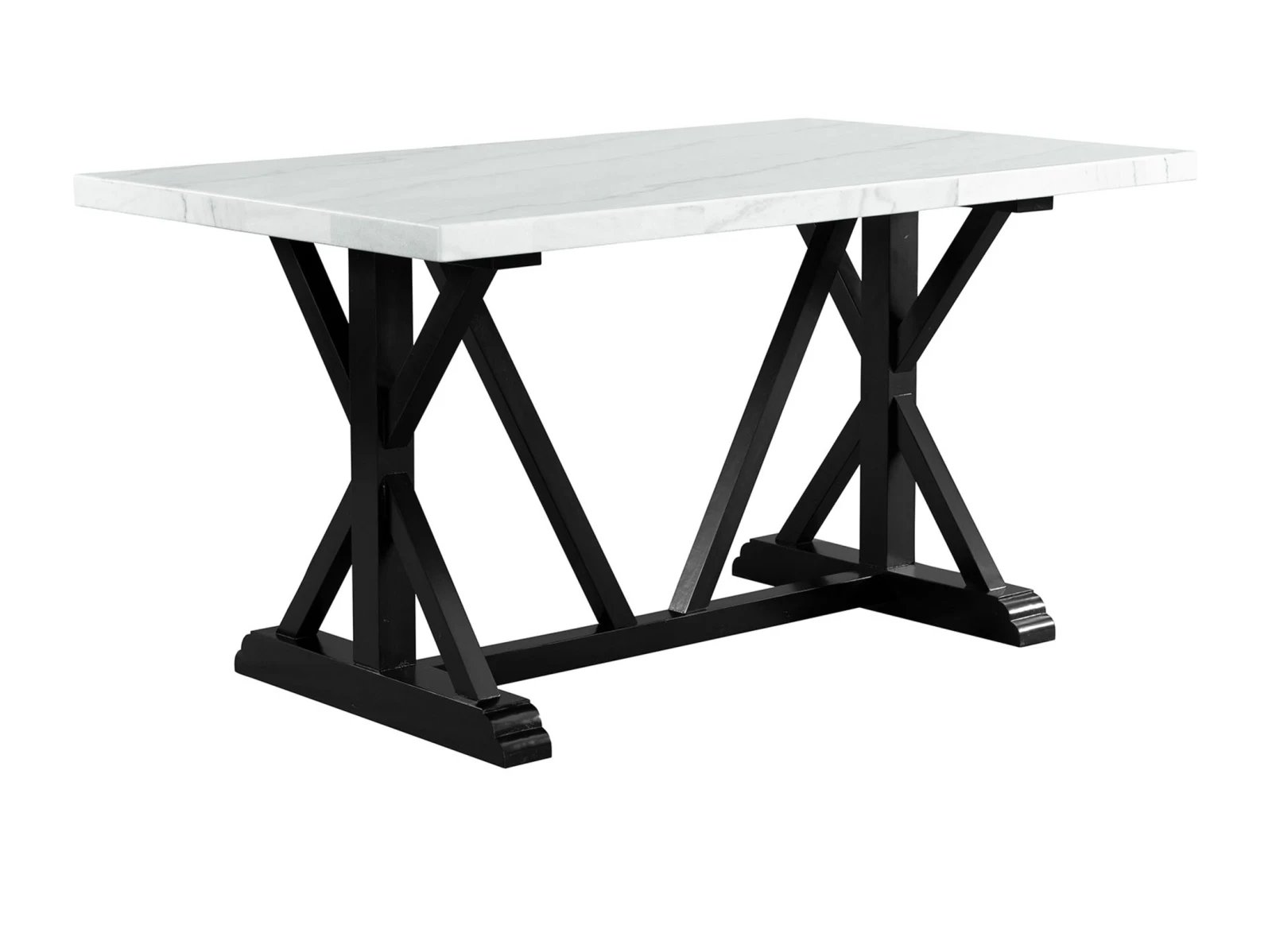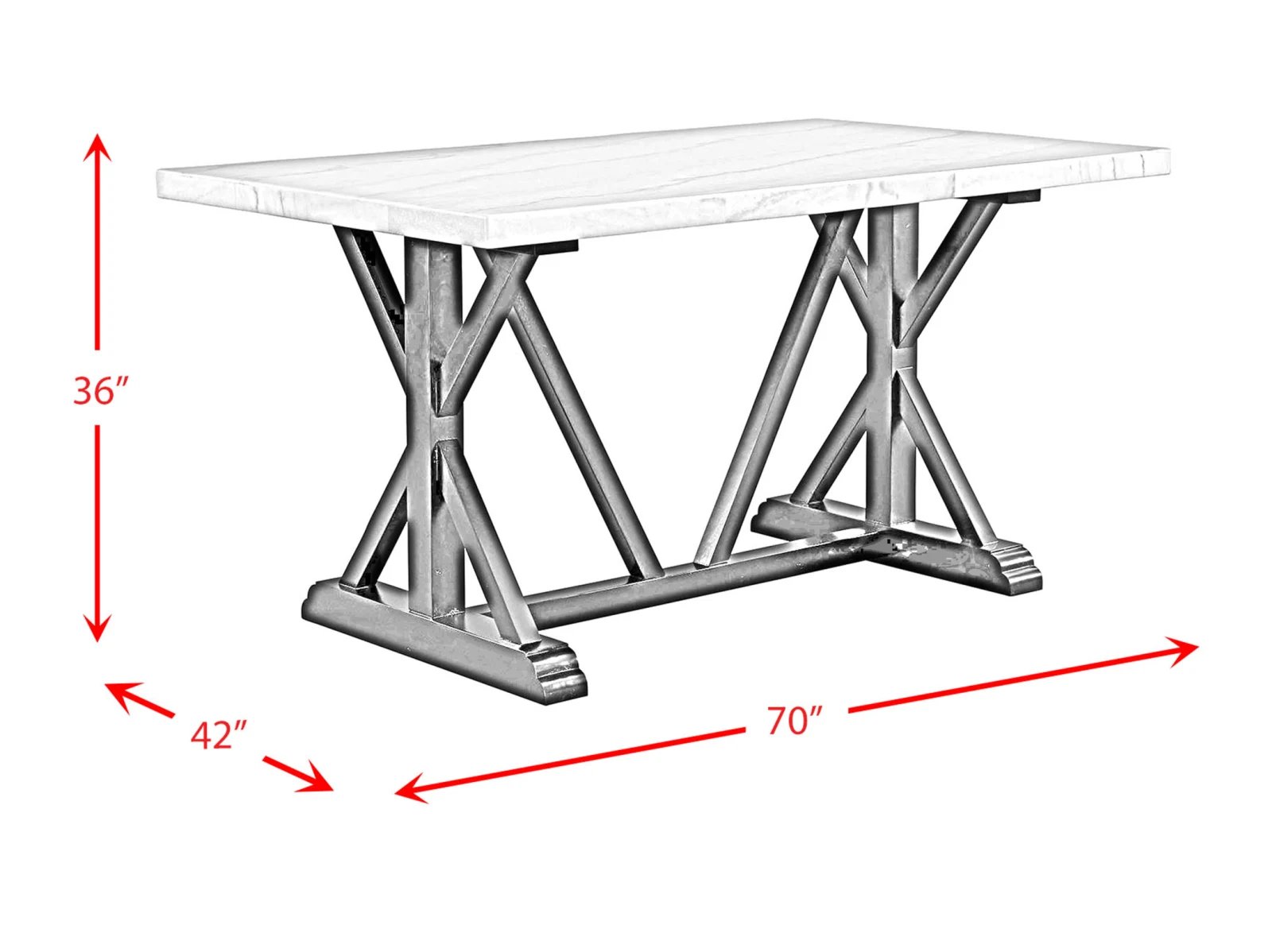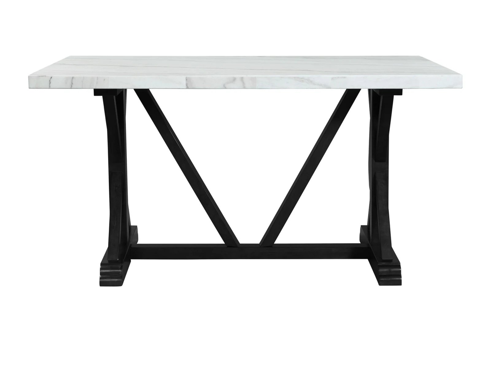 The Traverse 5 Pc. Counter Height Dining Set is going to look gorgeous in your home! This set includes a table and four barstools. This rectangular table features a white, natural marble table top, adding instant style to your dining room. The brown trestle base also has its own flair to offer, that beautifully complements the table top. The barstools, are upholstered in a transitional, charcoal fabric. Chrome nail head trim outlines the edges of the chairs, instantly adding extra flair to these already stylish chairs. The foam cushion seat and back will keep you plenty comfy through even the longest of dinners. Enjoy every meal at the table and add the Traverse Dining Set to your home today!