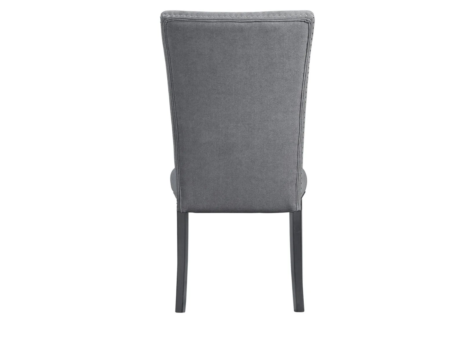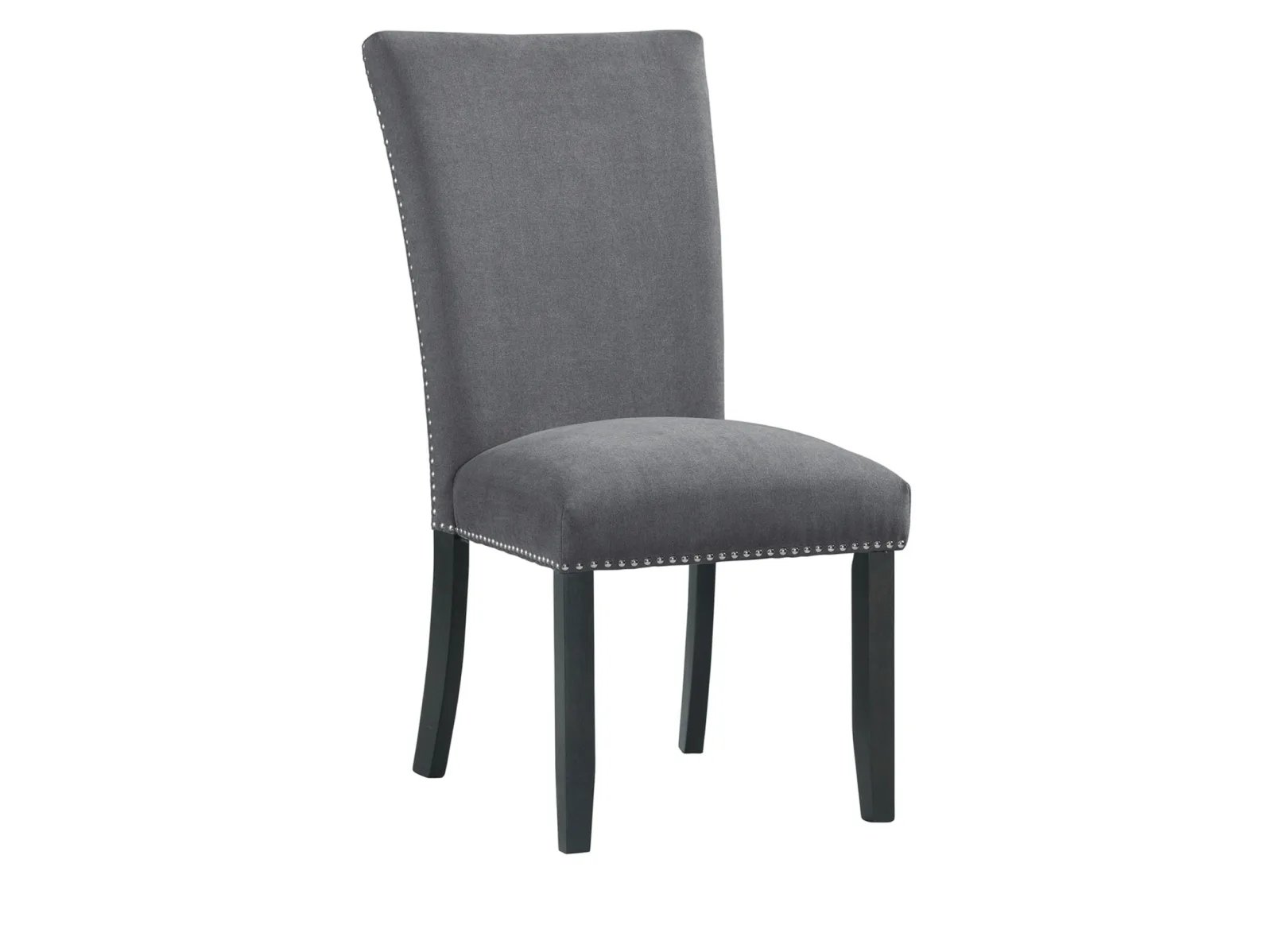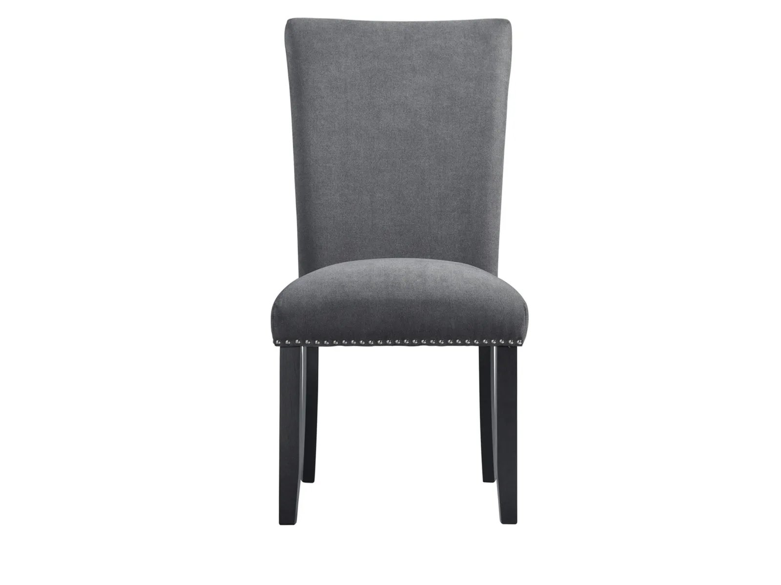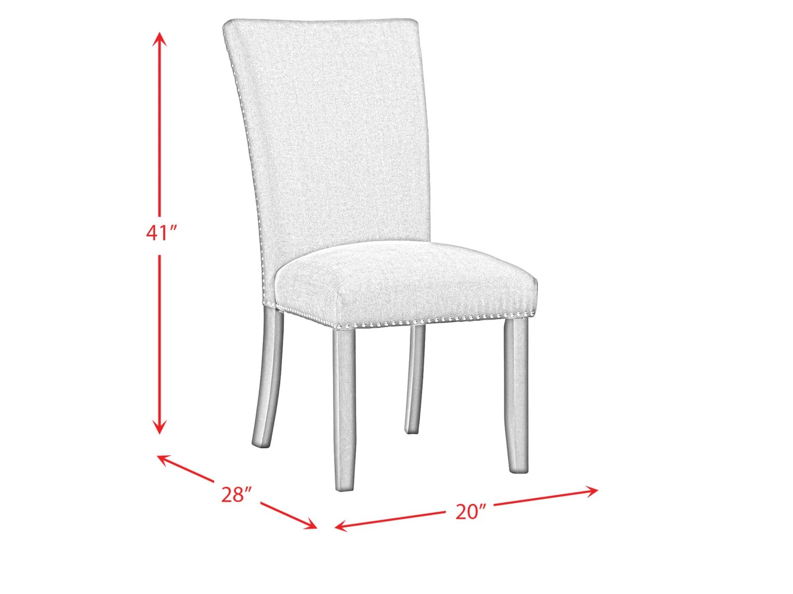 The Traverse 5 Pc. Dining Set is going to look gorgeous in your home! This set includes a table and four side chairs. This rectangular table features a white, natural marble table top, adding instant style to your dining room. The brown trestle base also has its own flair to offer, that beautifully complements the table top. The standard height side chairs, are upholstered in a transitional, charcoal fabric. Chrome nail head trim outlines the edges of the chairs, instantly adding extra flair to these already stylish chairs. The foam cushion seat and back will keep you plenty comfy through even the longest of dinners. Enjoy every meal at the table and add the Traverse Dining Set to your home today!