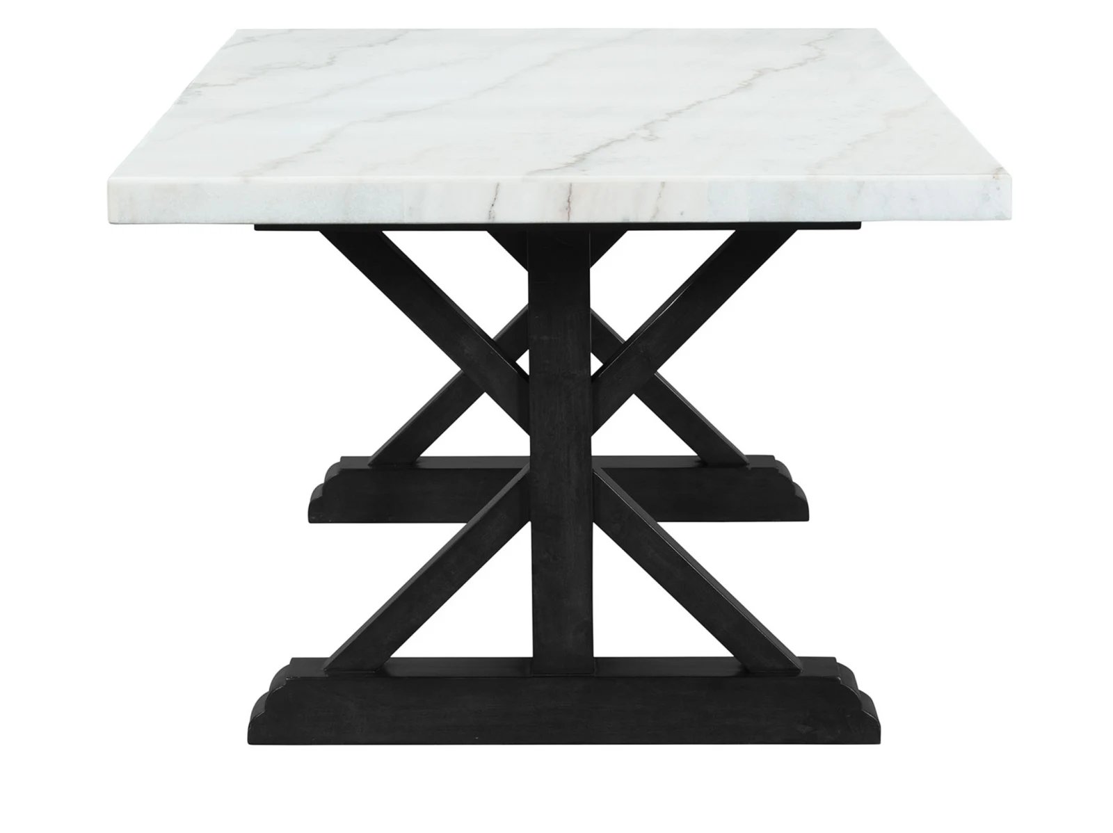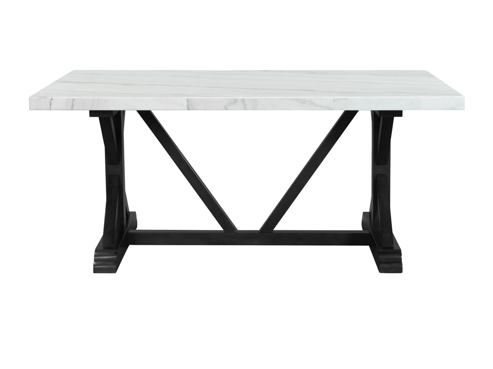 & Free ShippingThe Traverse Marble Dining Table is going to look gorgeous in your dining room! This rectangular table features a white, natural marble table top, adding instant style to your dining room. The brown trestle base also has its own flair to offer, that beautifully complements the table top. Thanks to its transitional colors and overall style, this dining table will easily pair with any existing décor you have. Enjoy every meal at the table and add the Traverse Dining Table to your home today!