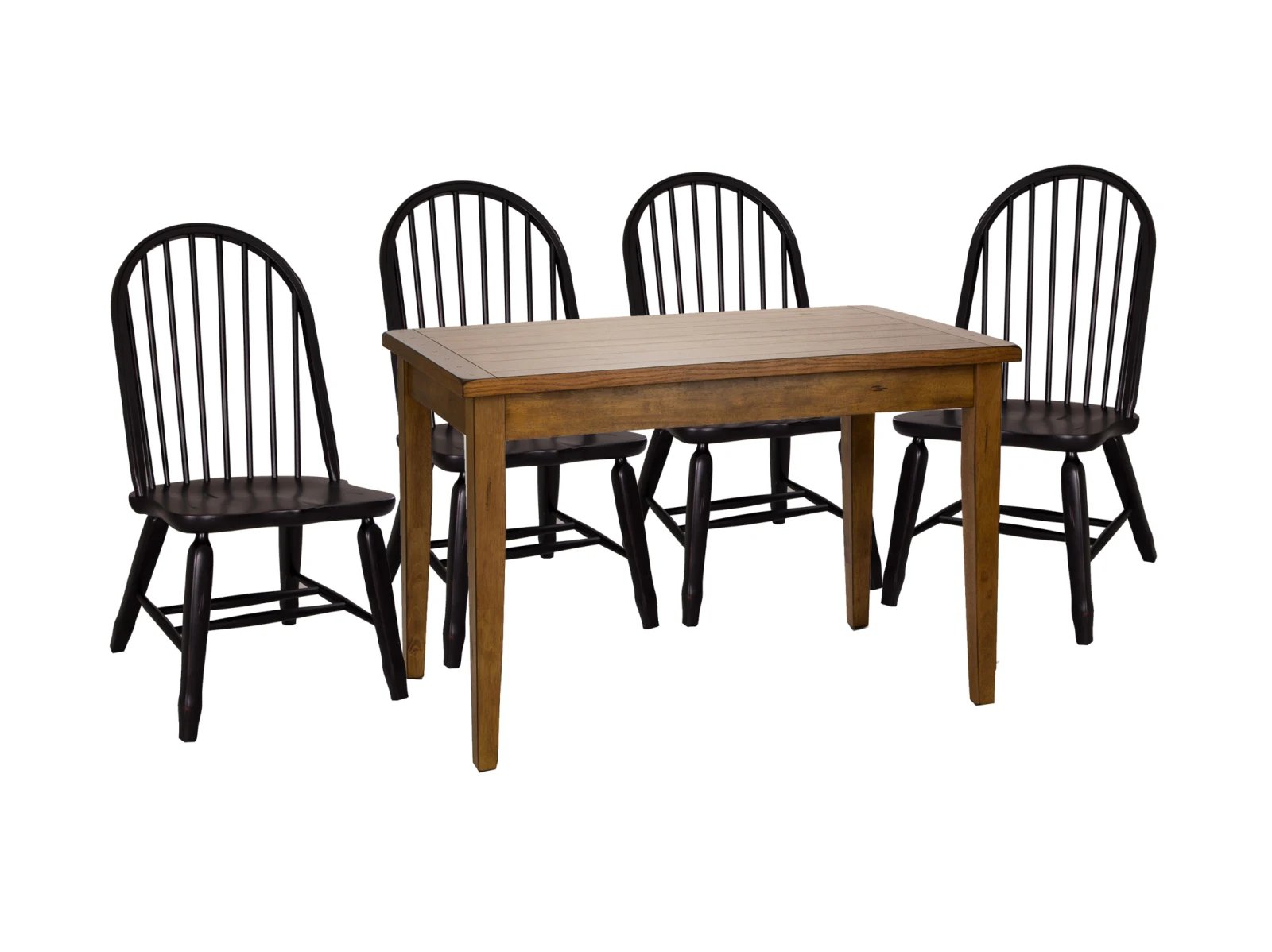 Gather around the Trussville rectangular table. Crafted of rubberwood solids and oak veneers, this piece features a rustic oak finish, a fixed planked top with wood peg accents, and is anchored by tapered legs. This table can comfortably seat up to six. Treasures offers simple shaker styled dining in a subtle finish which evokes the feel of a treasured antique.