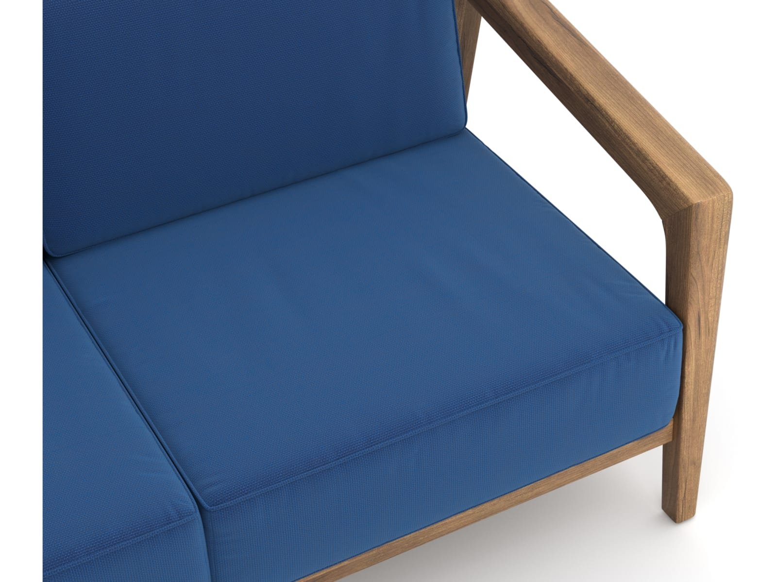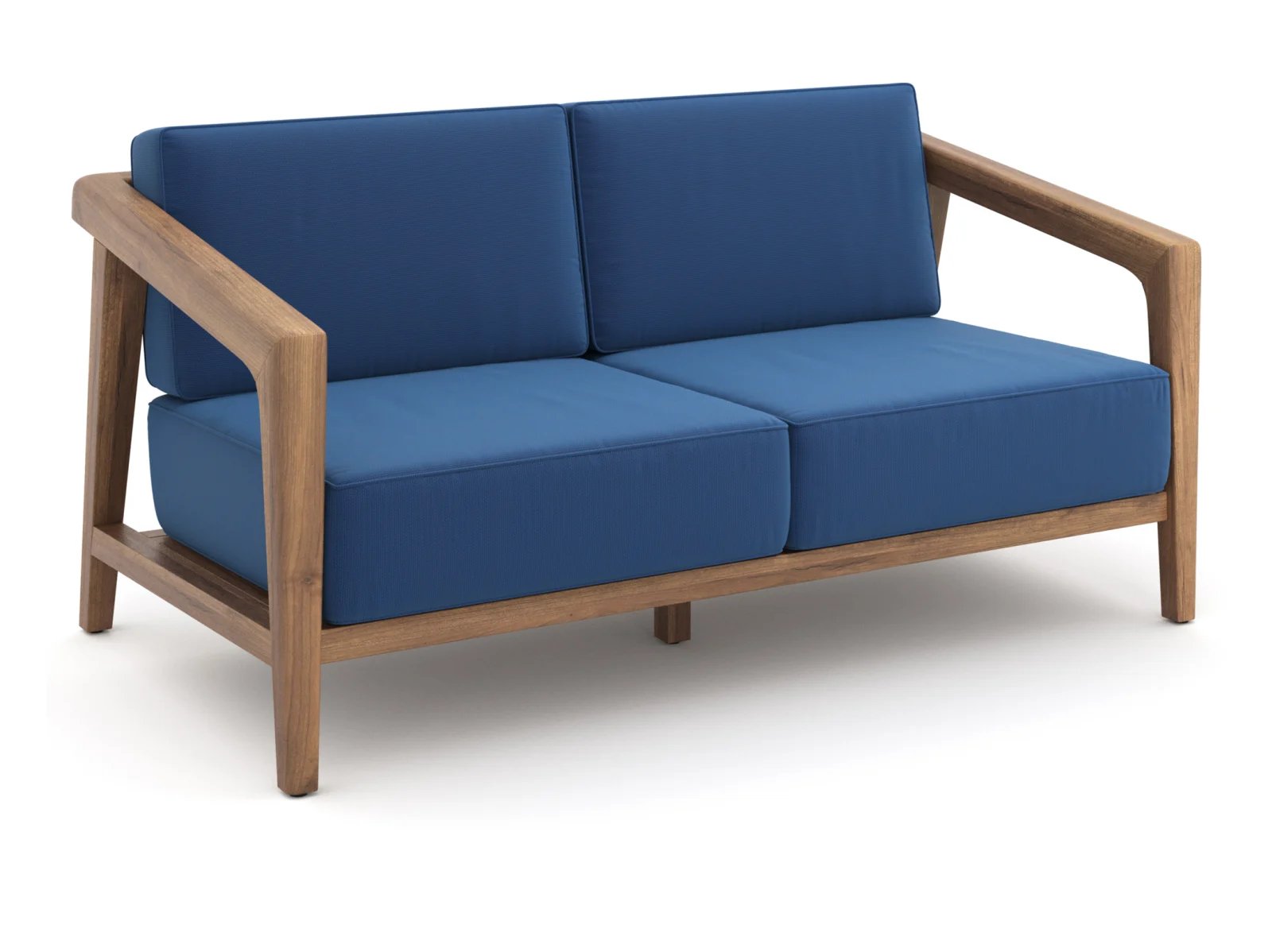 Introducing the Tryphena Patio Loveseat: a fusion of durability, comfort, and contemporary style, designed to elevate your outdoor living space. Crafted with care from FSC Certified, Eco-Friendly Eucalyptus solid wood, this loveseat is not only a statement of sustainability but also a testament to enduring quality. The color fast, weather-resistant fabric, made of solution dyed 100% Polyester, ensures vibrant hues that resist fading, mold, and moisture, keeping your loveseat looking fresh and inviting through all weather conditions. Sink into blissful comfort with the high-density, 12cm foam seat and back cushions, providing resilient support for hours of relaxation. Embrace modern sophistication with the loveseat’s angular shapes and light wood finishes, complemented by rich, dark blue fabric, setting the perfect ambiance for your outdoor sanctuary. Assembly is a breeze, taking approximately 20 minutes with clear instructions provided for your convenience. Elevate your outdoor lounging experience with the Tryphena Patio Loveseat, where durability meets contemporary elegance for unparalleled comfort and style.
