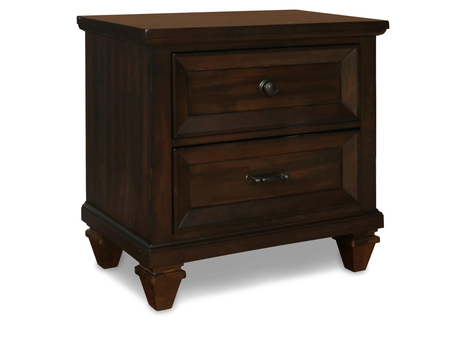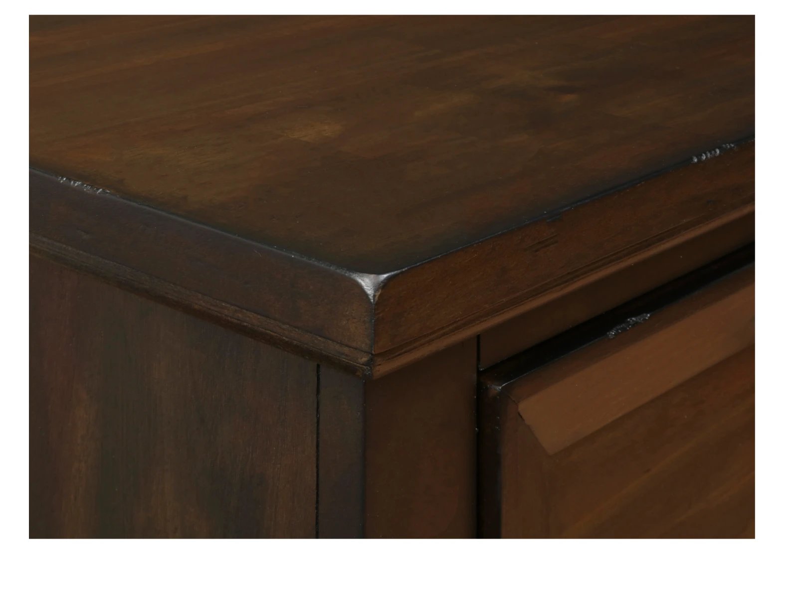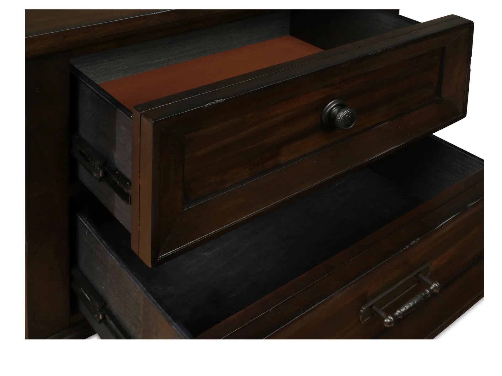 & Free ShippingThe Tustin 2-Drawer Nightstand in walnut is a perfect blend of timeless craftsmanship and functional elegance, making it an ideal addition to any bedroom. Crafted from solid Acacia wood and enhanced with Acacia veneers, this nightstand features a rich, hand-distressed walnut finish that exudes a vintage charm. Its design artfully combines traditional elegance, rustic charm, and colonial craftsmanship, creating a warm and inviting ambiance while commanding attention with its sturdy construction. The spacious drawers, crafted with masterful dovetail joinery and lined with luxurious velvet in the top drawer, offer smooth, snag-free storage, gliding effortlessly on precision-engineered, full-extension drawer glides. A discreet USB charging connection on the back adds a modern convenience, ensuring your devices are always powered and within easy reach. Perfectly balancing style and durability, this nightstand serves as a captivating focal point in any classic, cozy, or historically inspired space.