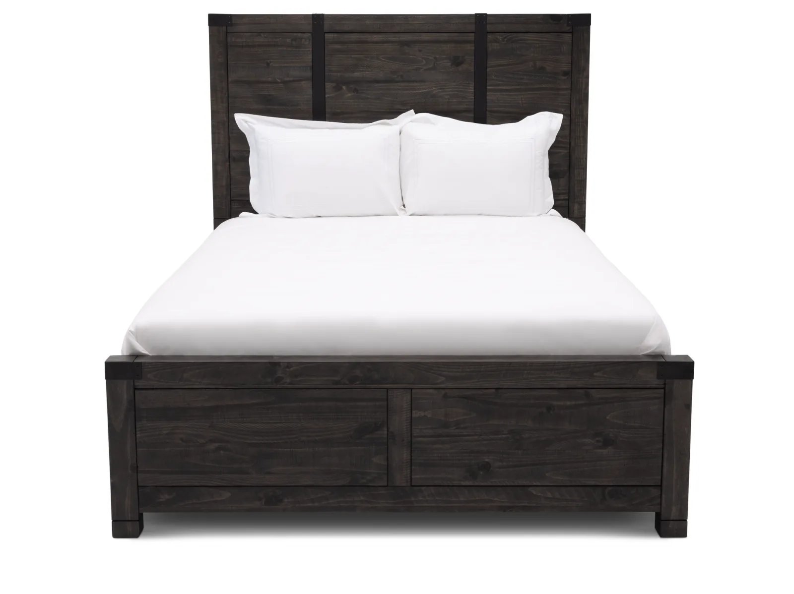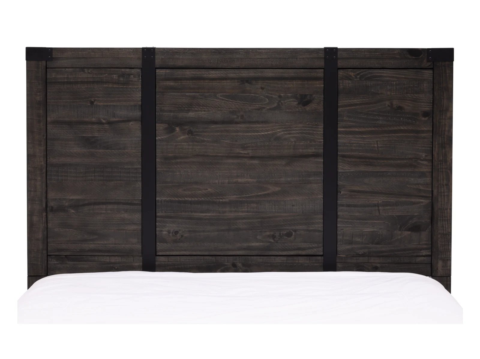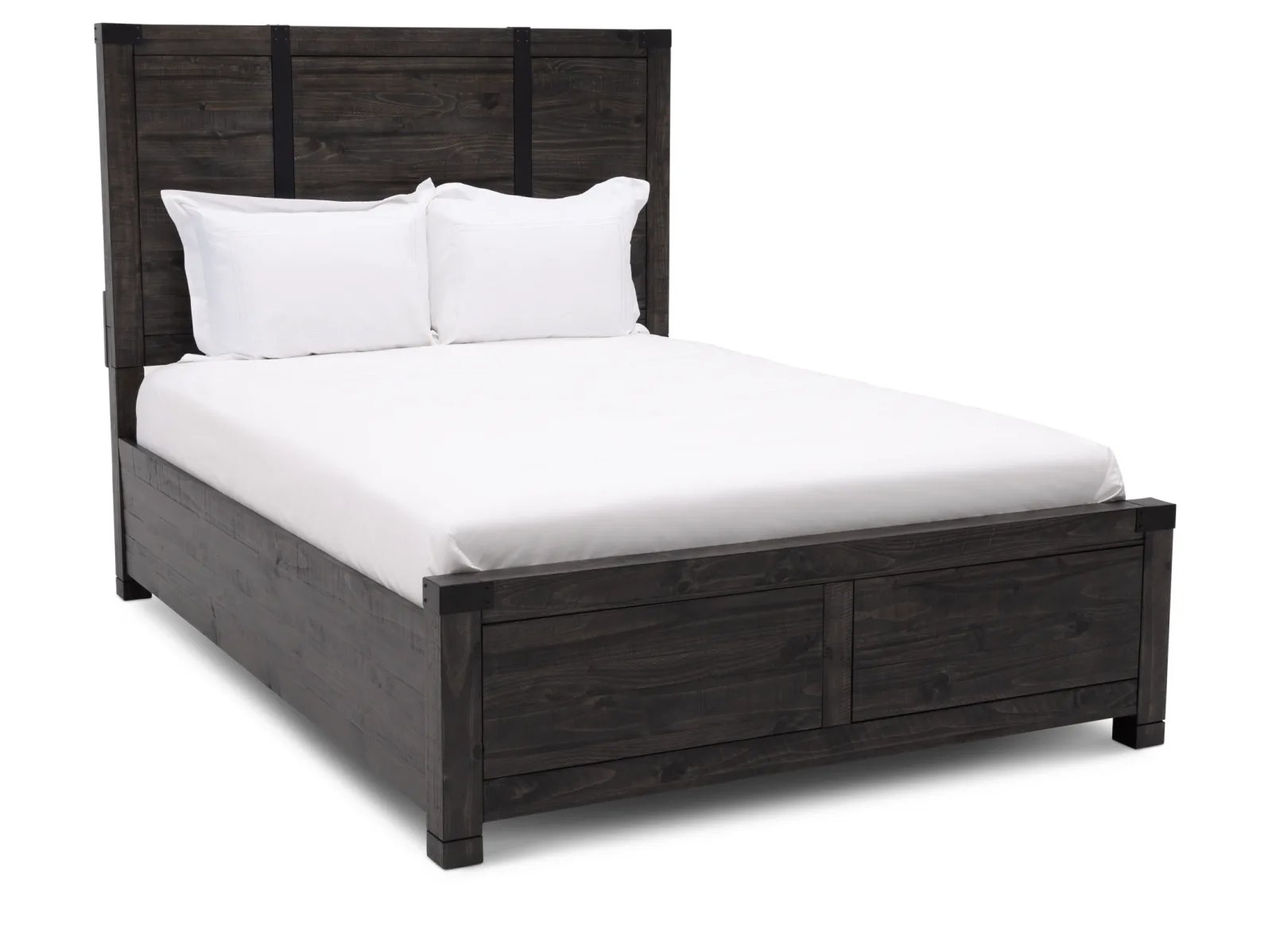 Made for rugged mountain living, the Utah Panel Bed earns its namesake with its rustic yet transitional styling. Crafted of pine solids and veneers a welcoming weathered, charcoal black finish, the Utah boasts metal accents in an aged iron finish to create hospitable allure. Rustic enough for a loft or retreat, yet sophisticated enough for the uptown industrialist, the Utah is an ideal choice for your bedroom. This bed is available in queen. king and california king sizes.