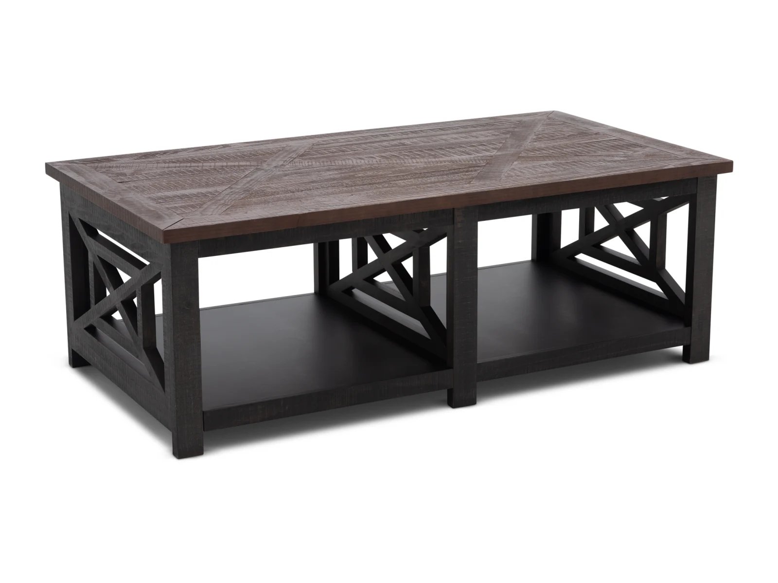 & Free ShippingWith enhanced durability and timeless allure, the Valencia II Coffee Table breathes new life into the original Valencia Collection. Constructed from pine solids and veneers, this rectangular coffee table offers practical storage without forfeiting its rustic farmhouse style – making it an alluring addition to traditionally-minded or contemporary living spaces. This coffee table is available in two color color palettes to suit any home, and it features a roomy bottom shelf that’s perfect for storing living room essentials. Add some homespun flare to your everyday lounging space with the Valencia II Coffee Table.