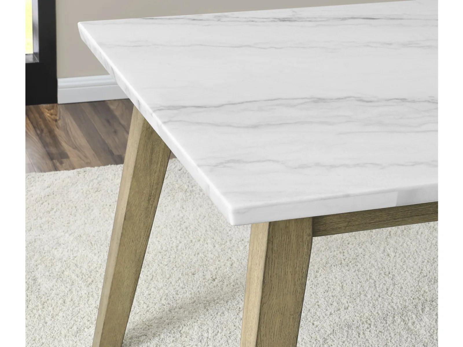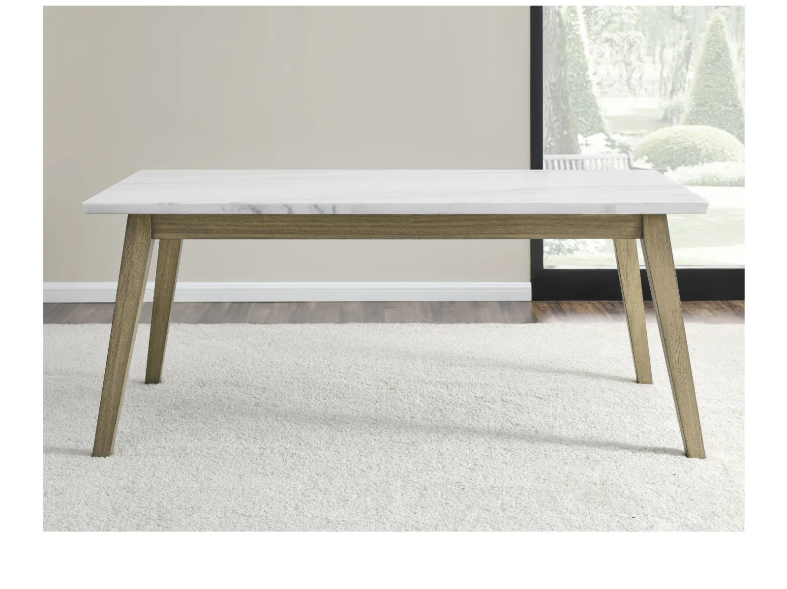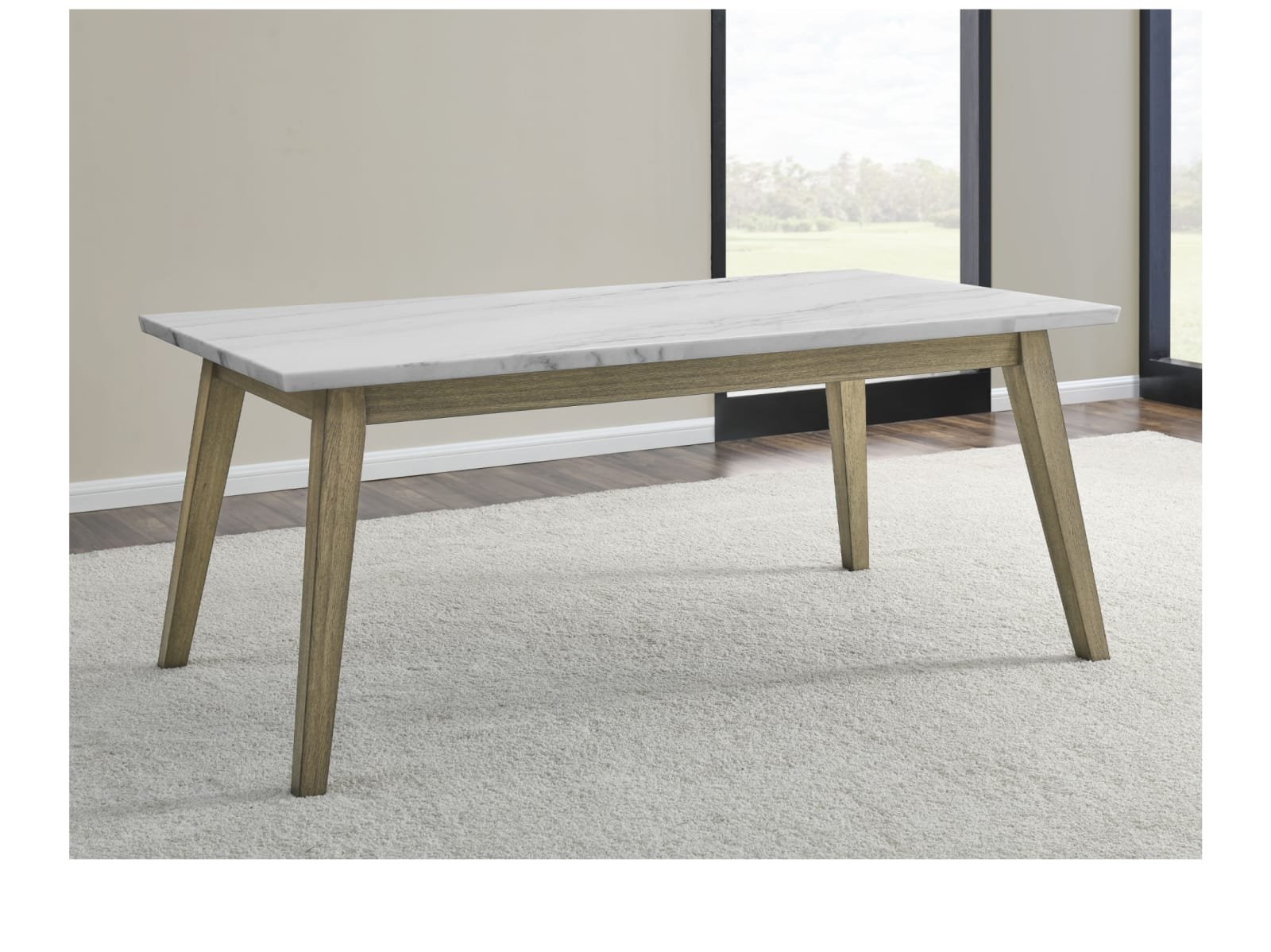 Discover the minimalism, functionality and beauty of mid-century modern design with the Valentine 72-inch marble top dining table. Crafted with utmost care and precision, the Valentine Dining Table presents a stunning marble top with a knife-edge finish that adds an extra layer of refinement to its design. The tabletop sits elegantly on burnished blonde solid hardwood legs that have been meticulously carved into canted legs in a versatile design that seats up to six people. The warm tones of the acacia legs and the coolness of the marble top create an understated and sophisticated look that’s bound to impress.