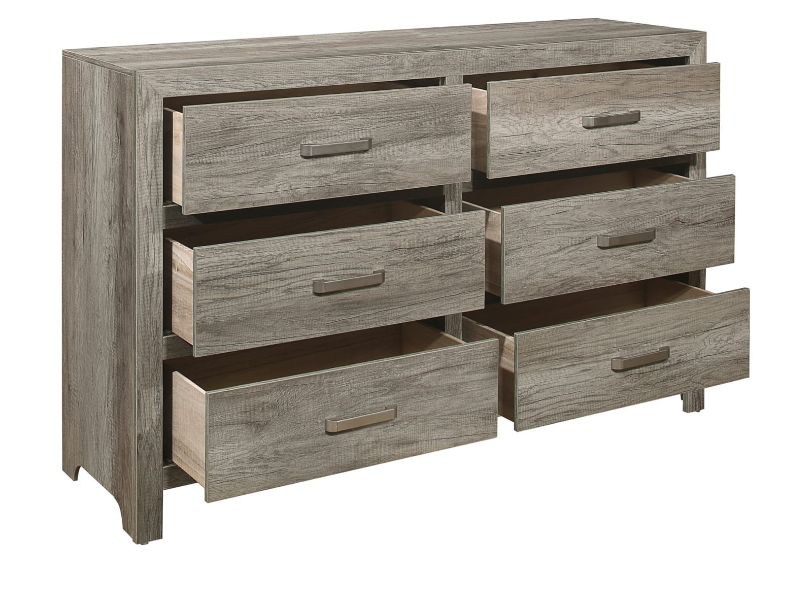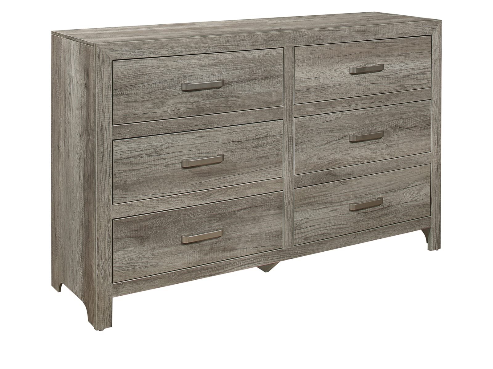 & Free ShippingThe modern lines of the Valpico Collection are blended with transitional aesthetic to create a unique offering for your bedroom. Utilizing printed 3D paper veneer creates the look of authentic wood planks with the weathered pine finish further lending to the rusticated style. Black finished nickel bar hardware fronts each drawer providing contrasting complement to the nightstand, dresser and mirror.