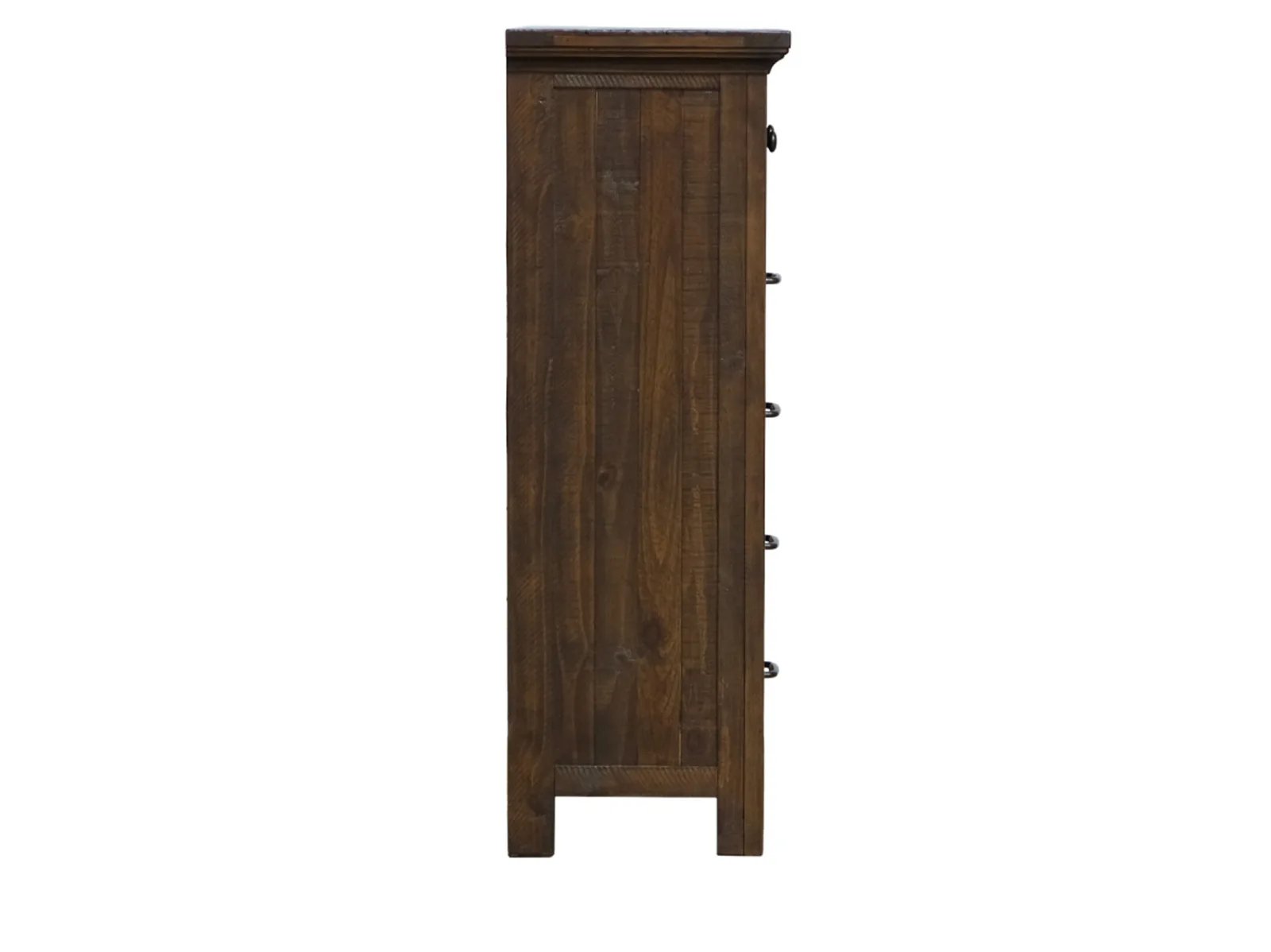 & Free ShippingThis chest combines rustic style with traditional design elements for a classic bedroom look. Stepped under-top moldings, raised panels with beveled insets, and roughhewn planked tops and sides add depth of detail to its solid pine construction. Seven different distressing techniques join black hardware to create a weathered finish. Let this chest bring the look of a well-loved heirloom that you can enjoy for years to come.