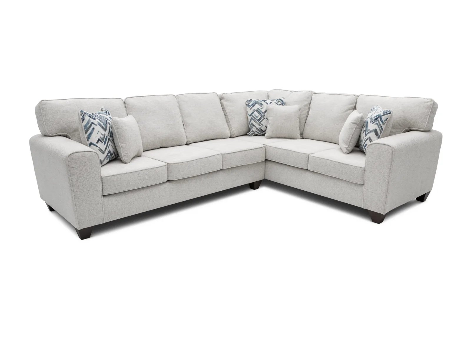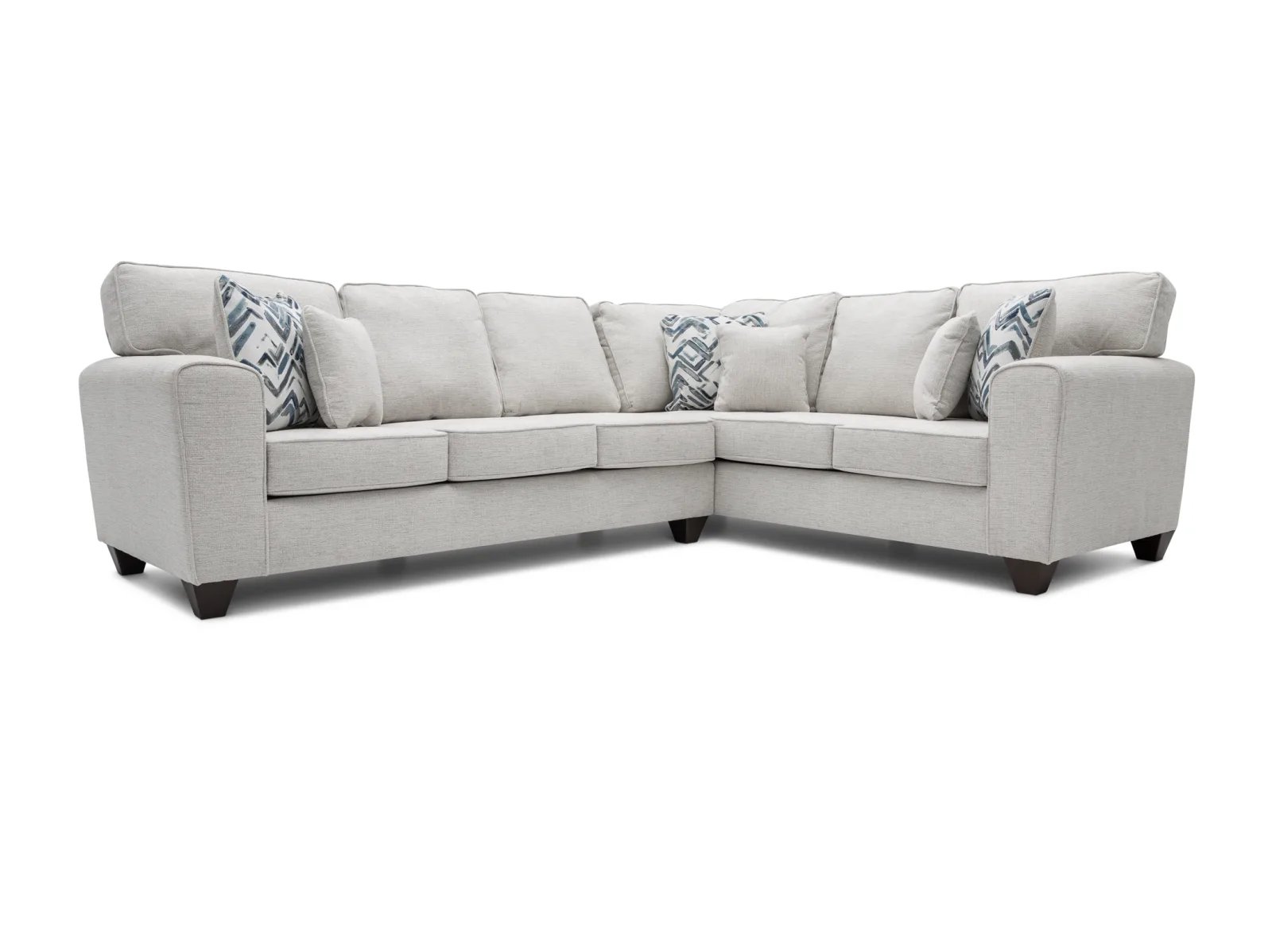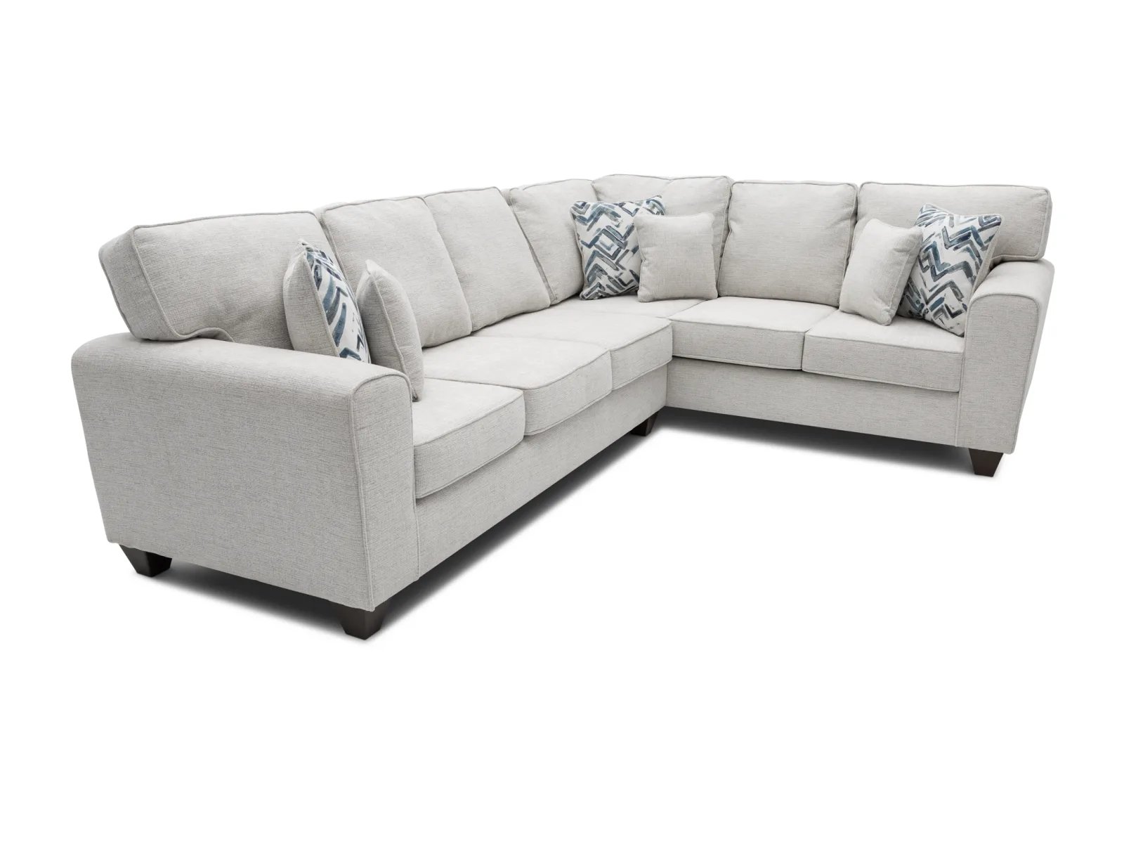 If you’re looking for a sectional that blends easy-going contemporary comfort and timeless elegance, then you’re going to love the Verona 2 Pc. Sectional. Resting on a solid pine frame, this enticing sectional offers a roomy seating area that’s perfect for a variety of homes and apartments, and it’s topped with plush reversible seat cushions which feature welted edges to evoke a classic sense of sophistication. The Verona’s tall track arms and breezy white upholstery perfect its sensible, transitional silhouette, and it sits atop tapered square feet in a versatile brown finish. Now available in both left arm-facing and right arm-facing configurations!