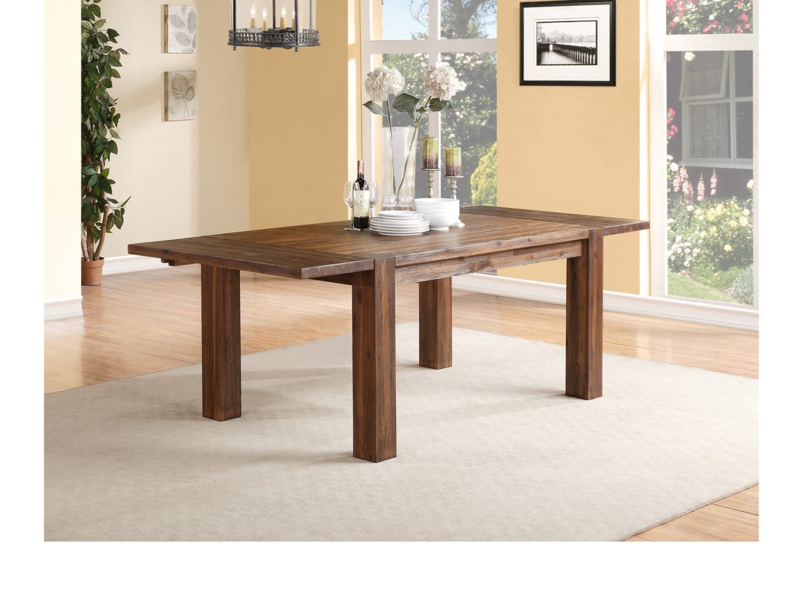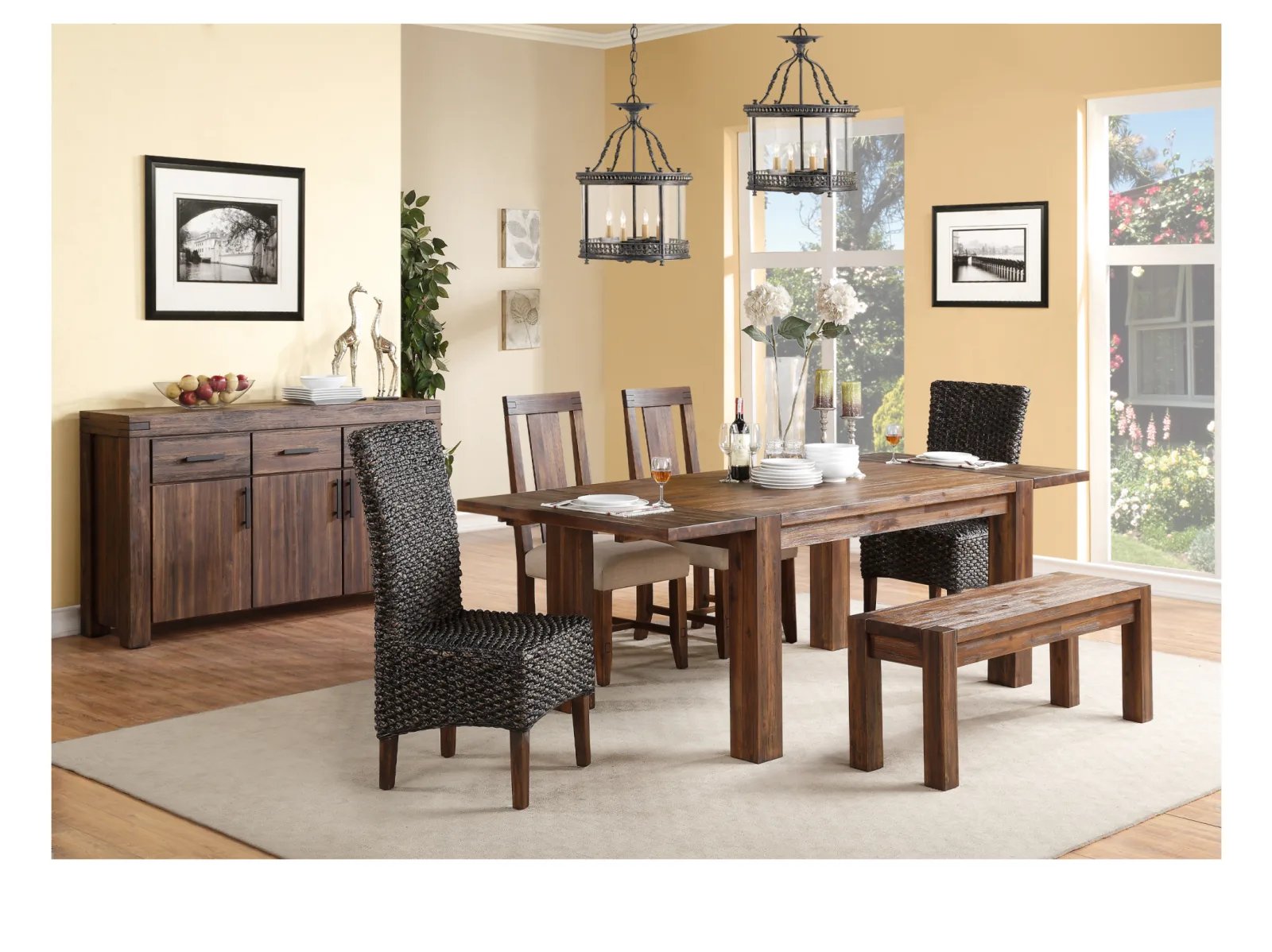 & Free ShippingInspired by the bold, industrial character of an early 20th century work table, the Vinson dining collection brings warmth, individuality and character to your space. Constructed entirely from solid Acacia, a hardwood known for stunning grain patterns and rich contrasting colors, each piece is wire brushed, hand-glazed and hand-finished, creating wood surfaces that radiate texture and depth of color. Matching chairs are finely hand woven from Water Hyacinth, a sustainable and renewable fiber. The table expands from 63 to 95 inches, comfortably seating up to 8 guests for intimate or larger gatherings. With features such as mortise and tenon corners, English dovetail drawer joinery and sinuous spring chair seats, the Vinson collection mingles aesthetics with rugged durability, making it an easy centerpiece for anyone designing a new dining room. For the minimalist, bold lines call only for complementary colors and dinnerware of your choosing.