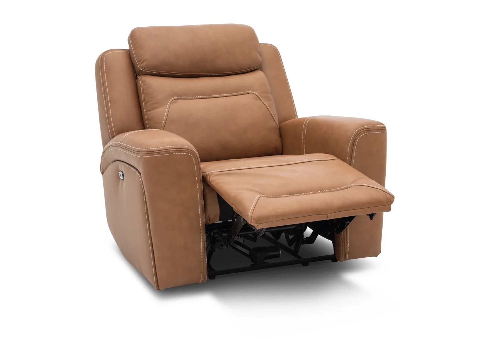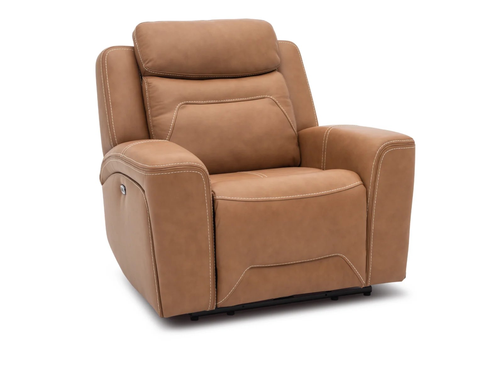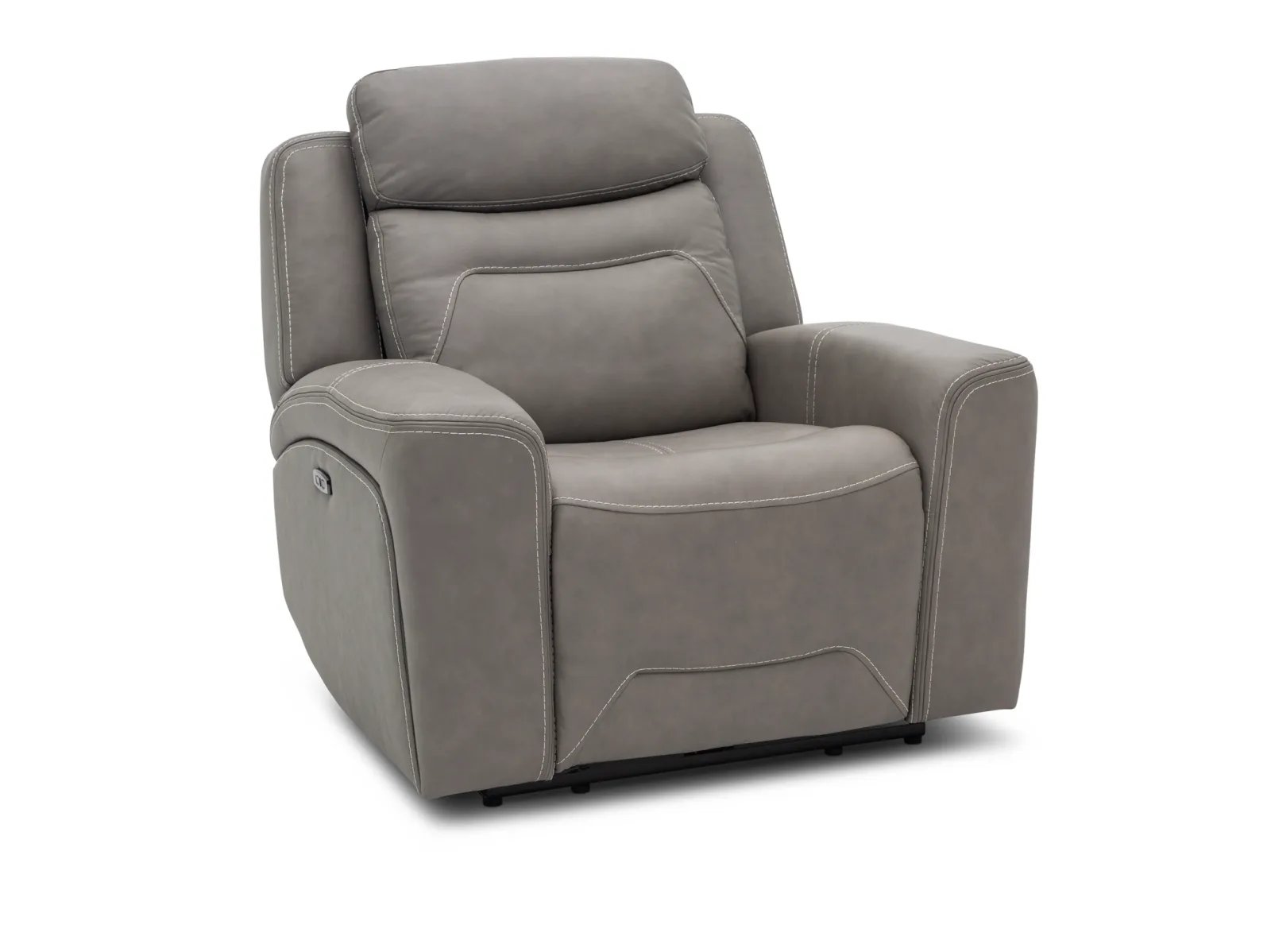 Incredible comfort and sophisticated leather style come together beautifully in the Voyager Leather Power Recliner. Resting on a sturdy hardwood-engineered frame, this dapper recliner is outfitted with a Zero Gravity power reclining mechanism, power headrest, and footrest extension, plus it’s available in two attractive colors: Butternut and Light Gray. To complete the look with a textured finish, the Voyager’s roomy, contoured seat streamlined arc tracks arms are upholstered in genuine leather with matching PVC sides, and it’s adorned with stylish insert piping and double-stitched accents.