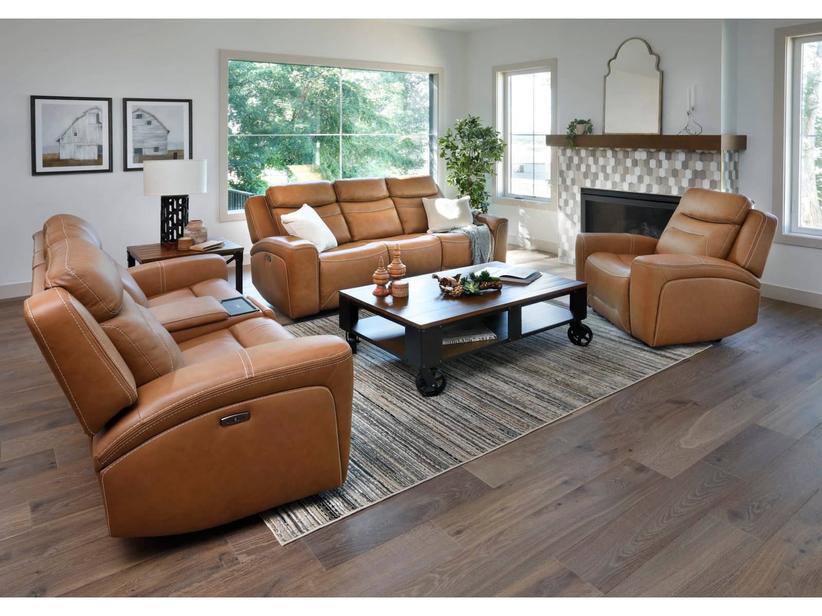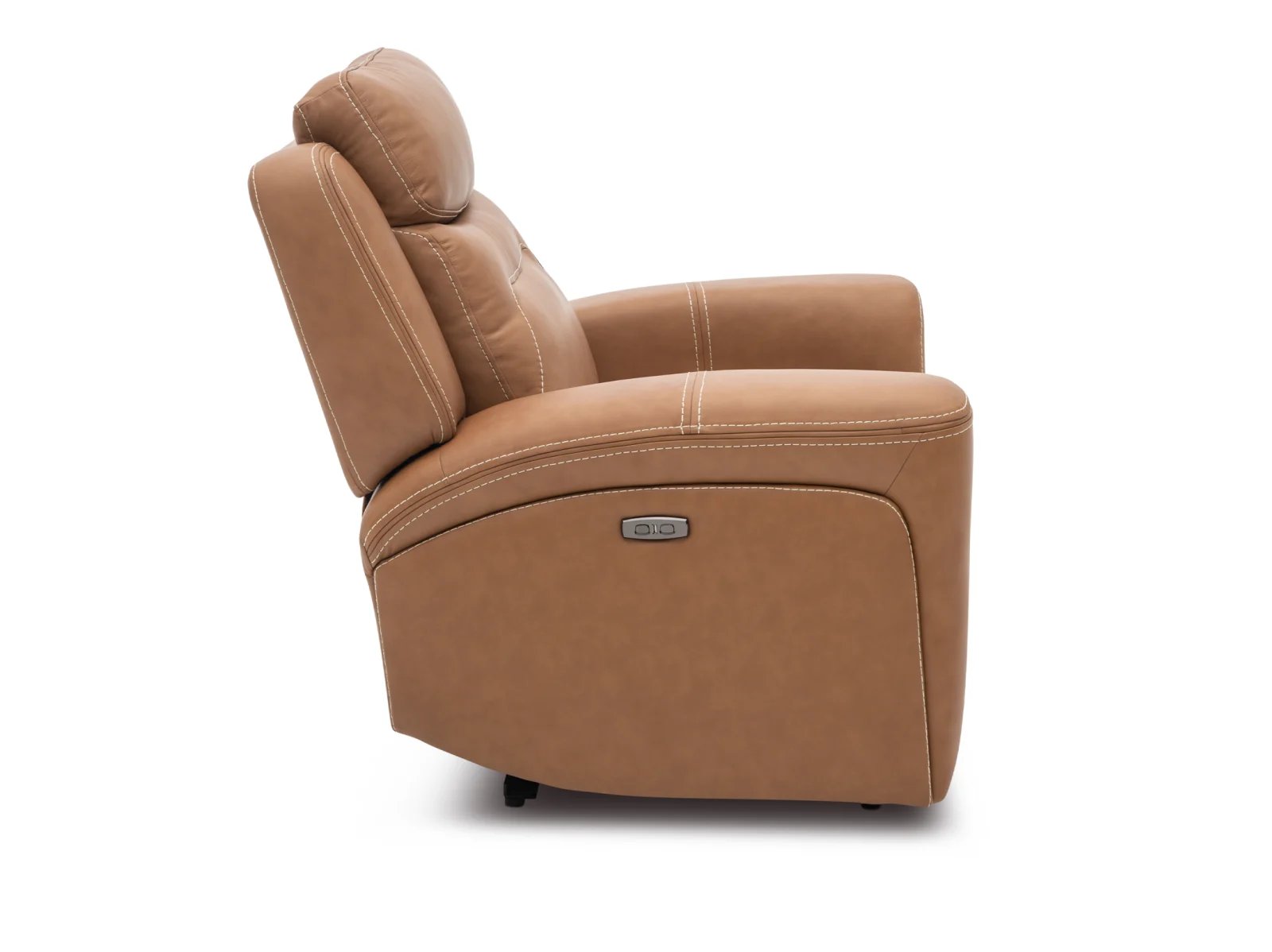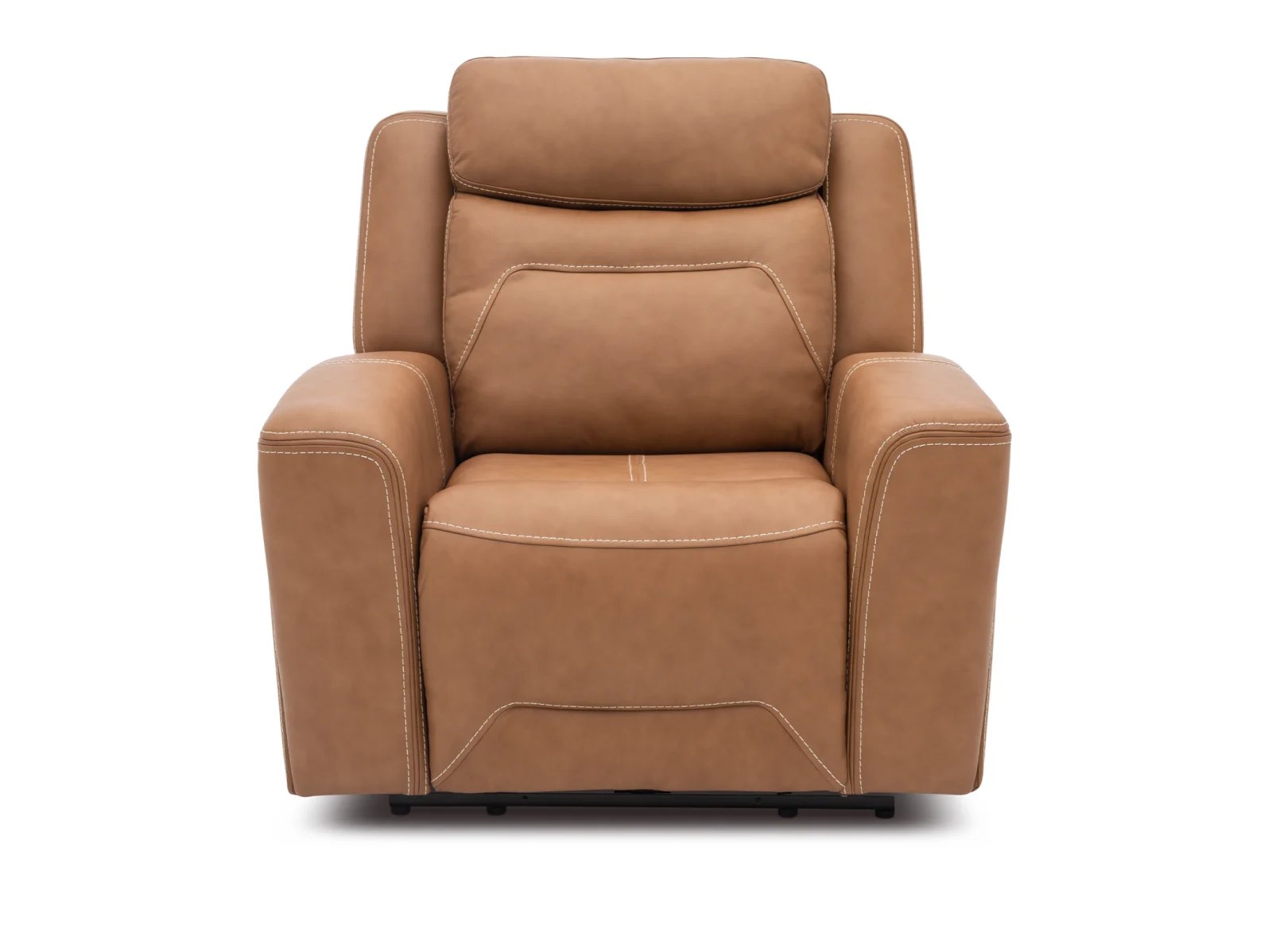 Incredible comfort and sophisticated leather style come together beautifully in the Voyager Leather Power Recliner. Resting on a sturdy hardwood-engineered frame, this dapper recliner is outfitted with a Zero Gravity power reclining mechanism, power headrest, and footrest extension, plus it’s available in two attractive colors: Butternut and Light Gray. To complete the look with a textured finish, the Voyager’s roomy, contoured seat streamlined arc tracks arms are upholstered in genuine leather with matching PVC sides, and it’s adorned with stylish insert piping and double-stitched accents.