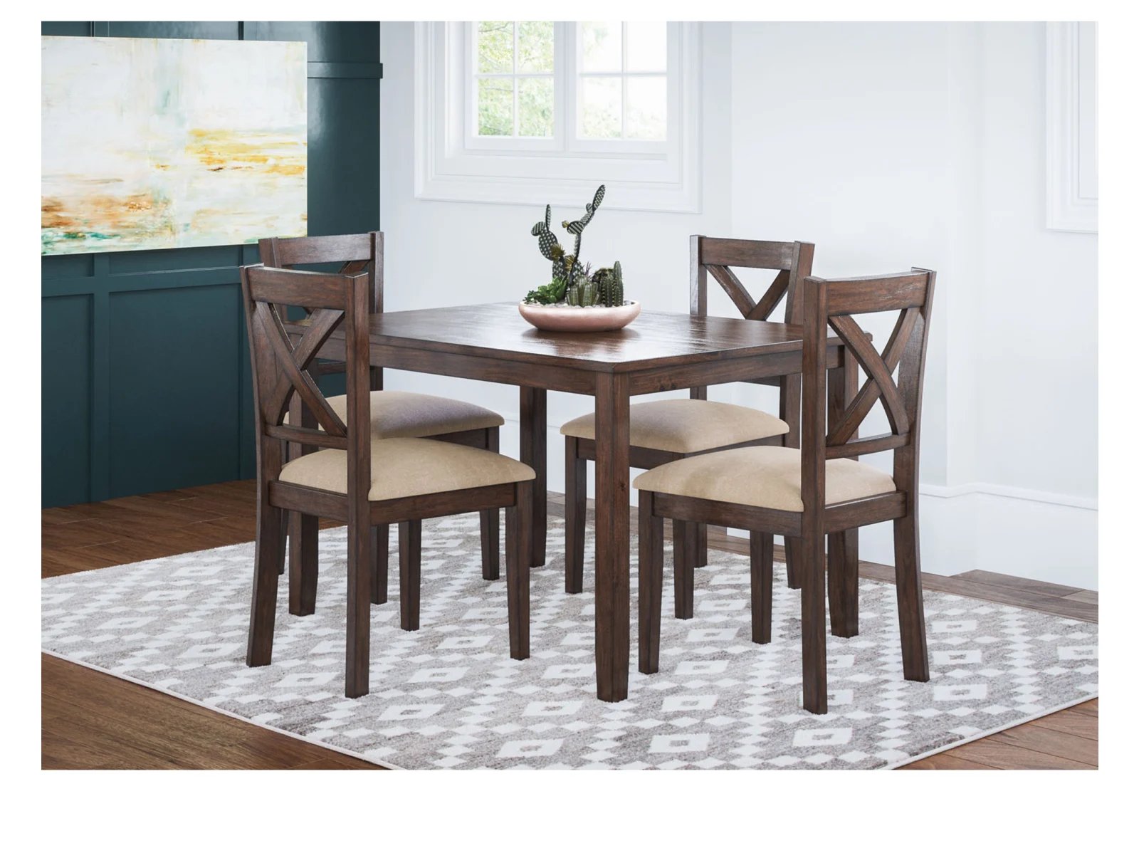 & Free ShippingGood things come in small packages. A walnut finish sets this incredible value apart as a true find. Sturdy, solid construction on both the table and chairs, as well as upholstery on the seats guarantee that this group will be a staple in your home for years to come. This set includes table and four chairs.