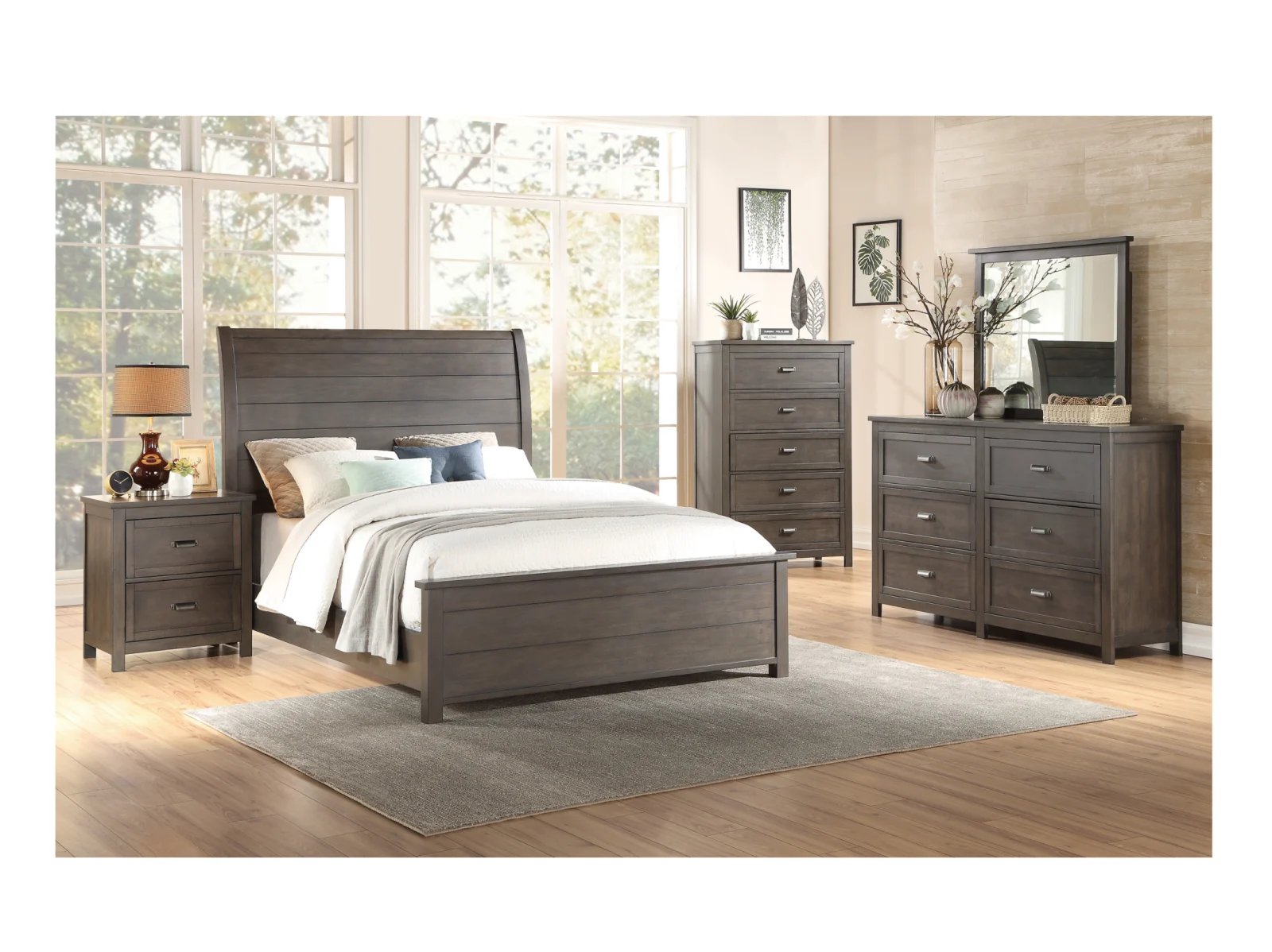 The transitional styling of the Waldorf Collection creates a versatile look for your bedroom. The Sleigh headboard has a subtle curve to its profile which serves as defining contrast to the clean lines of the collection's case pieces. The nightstand, dresser and chest each feature dark bronze finished cup hardware, providing complementing accent to the dark cherry finish that accentuates the birch veneer.